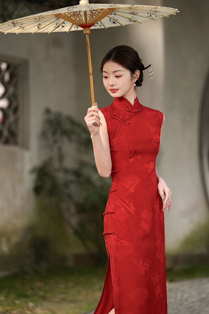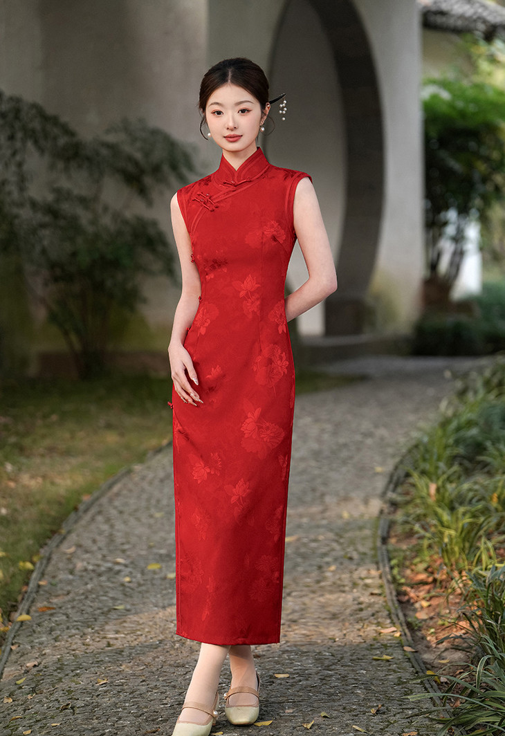 日常无袖气质双包边,订婚显白改良旗袍裙XL1252