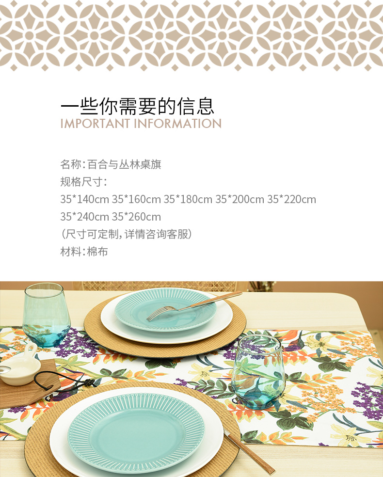 百合与丛林桌旗餐桌茶几北欧简约桌旗