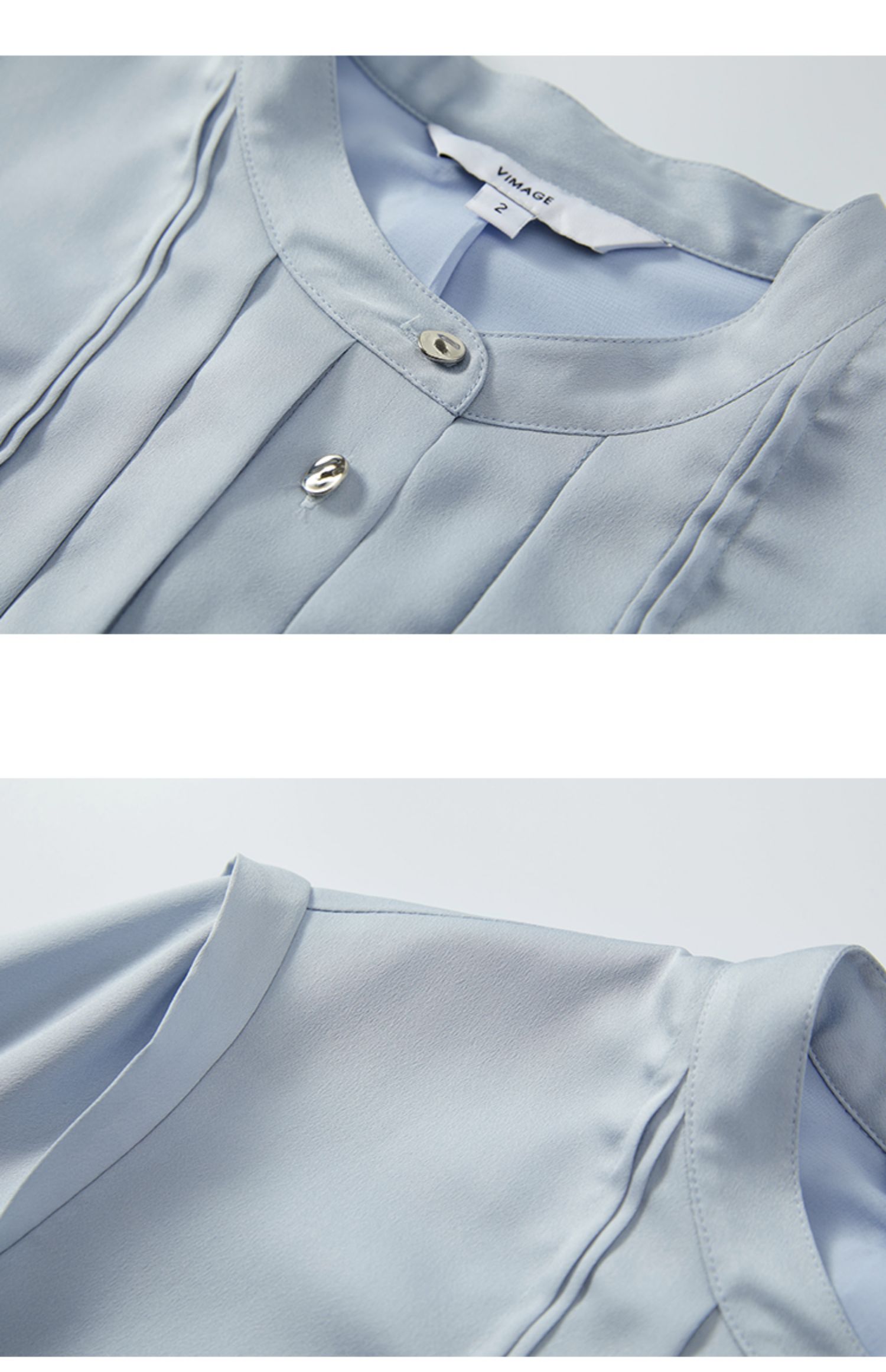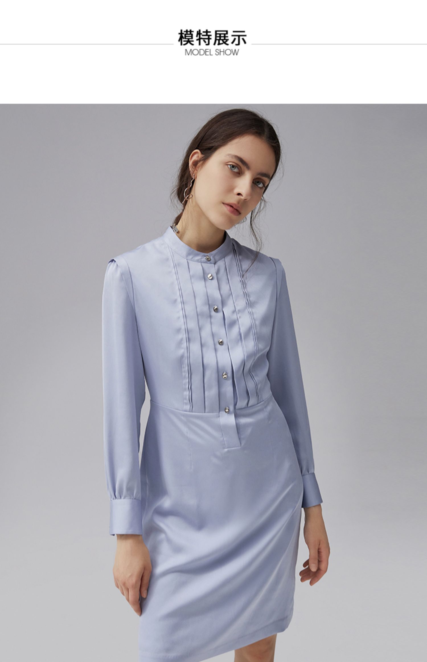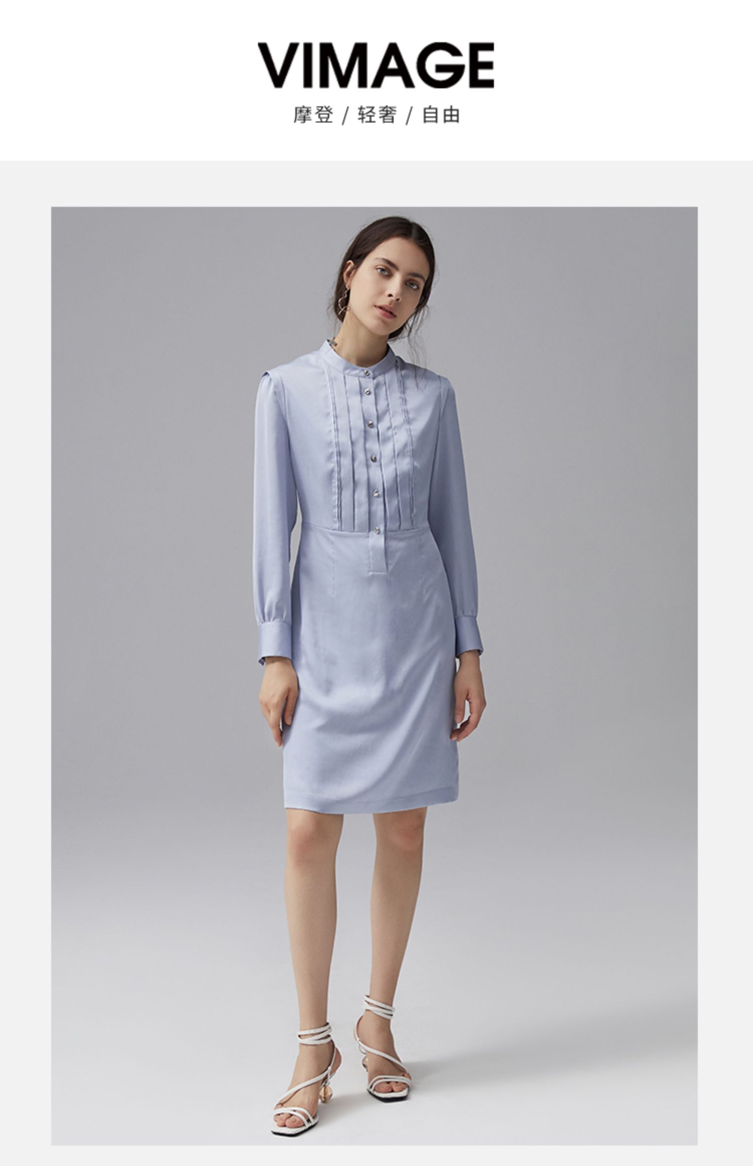 VIMAGE纬漫纪秋季新品通勤简约长袖立领H裙连衣裙VC2107224
