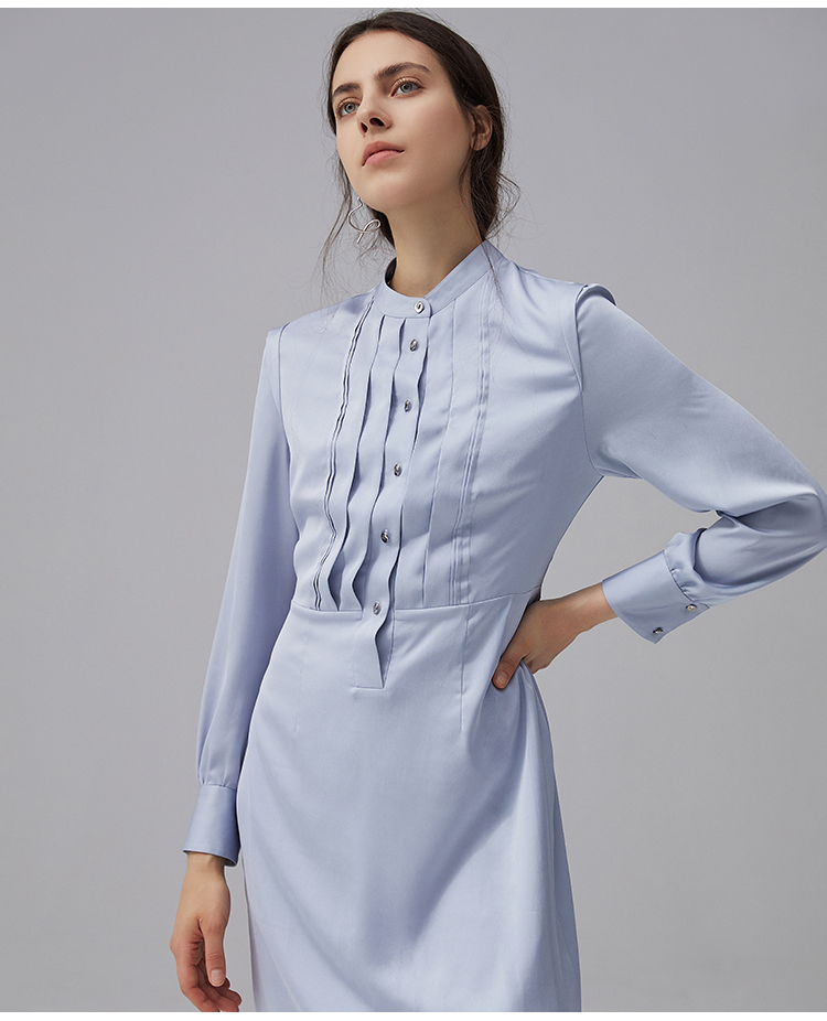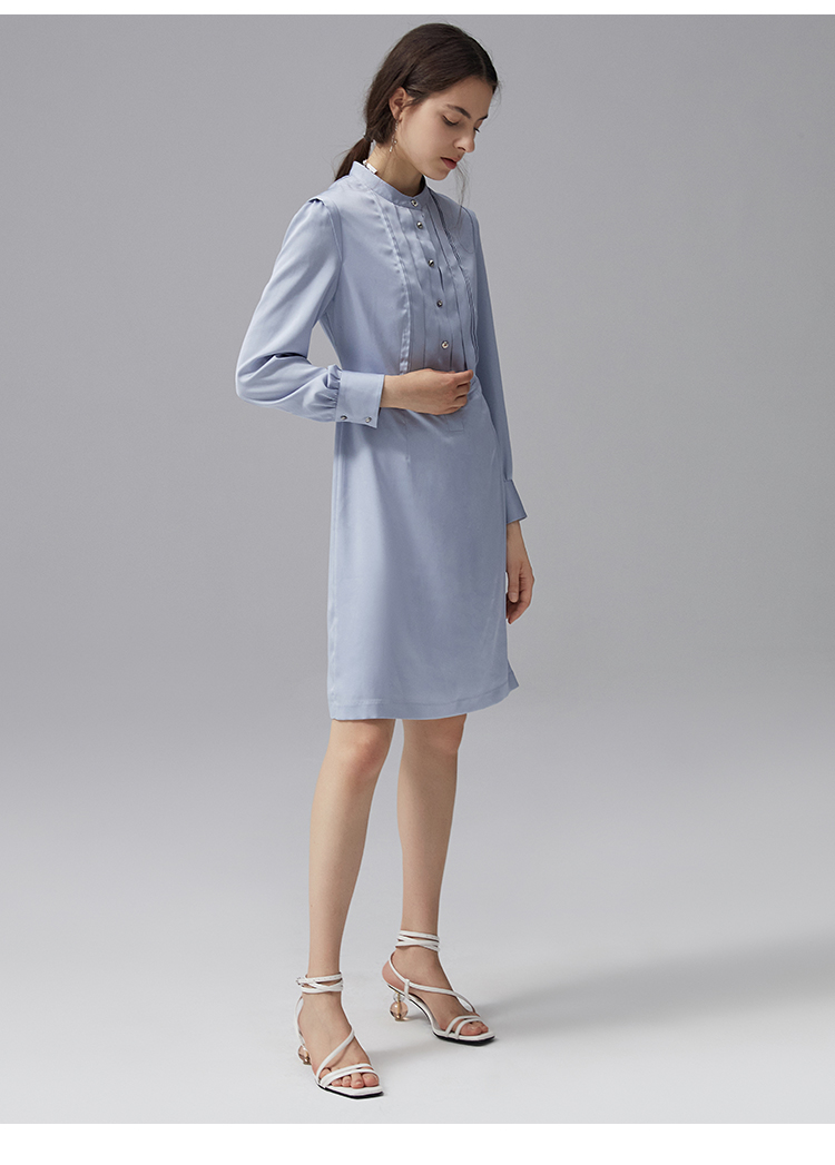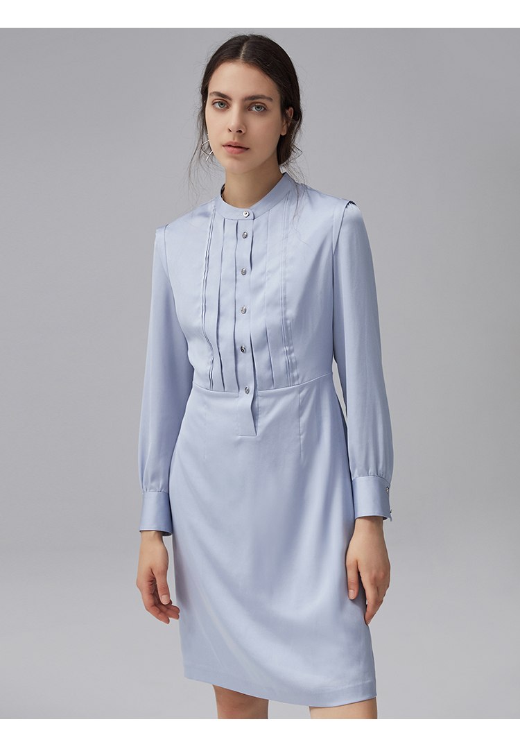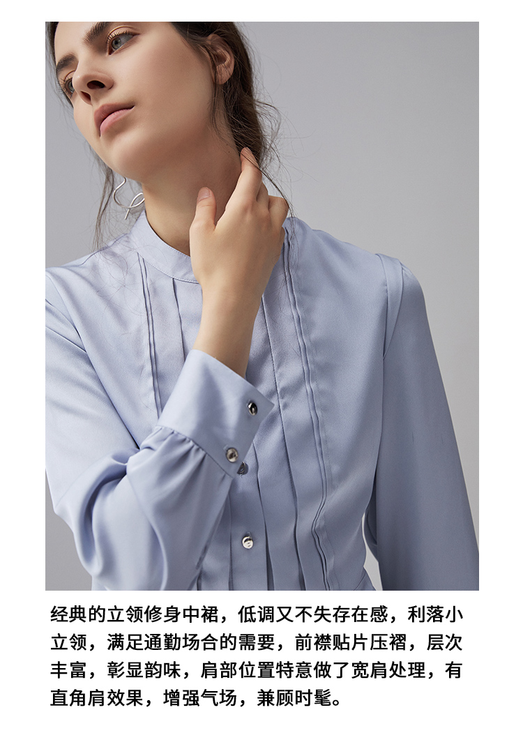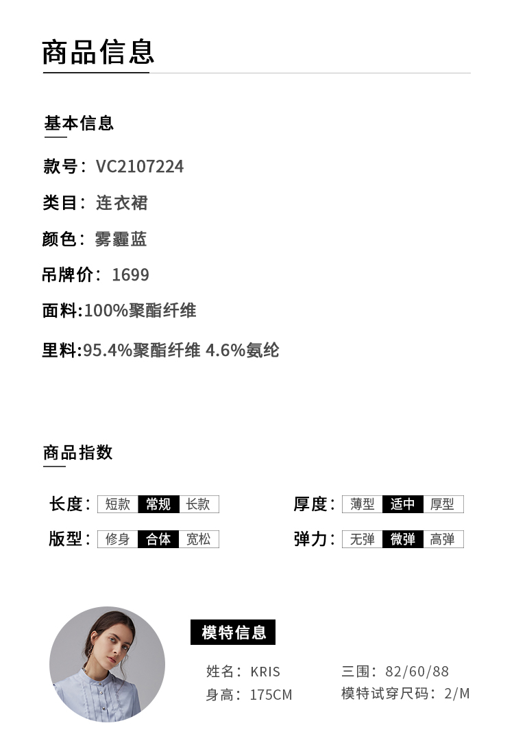 VIMAGE纬漫纪秋季新品通勤简约长袖立领H裙连衣裙VC2107224