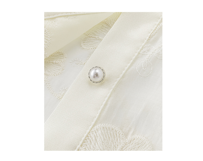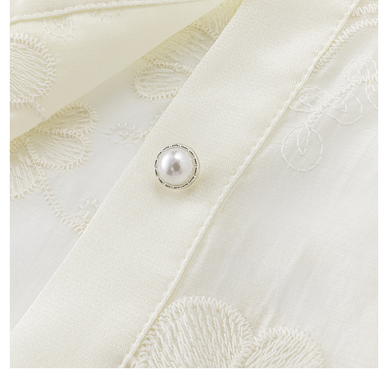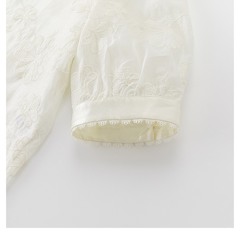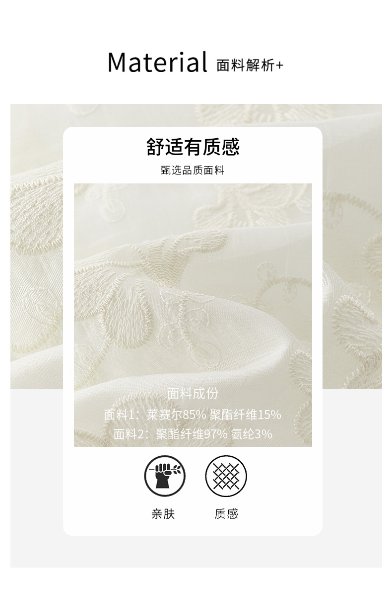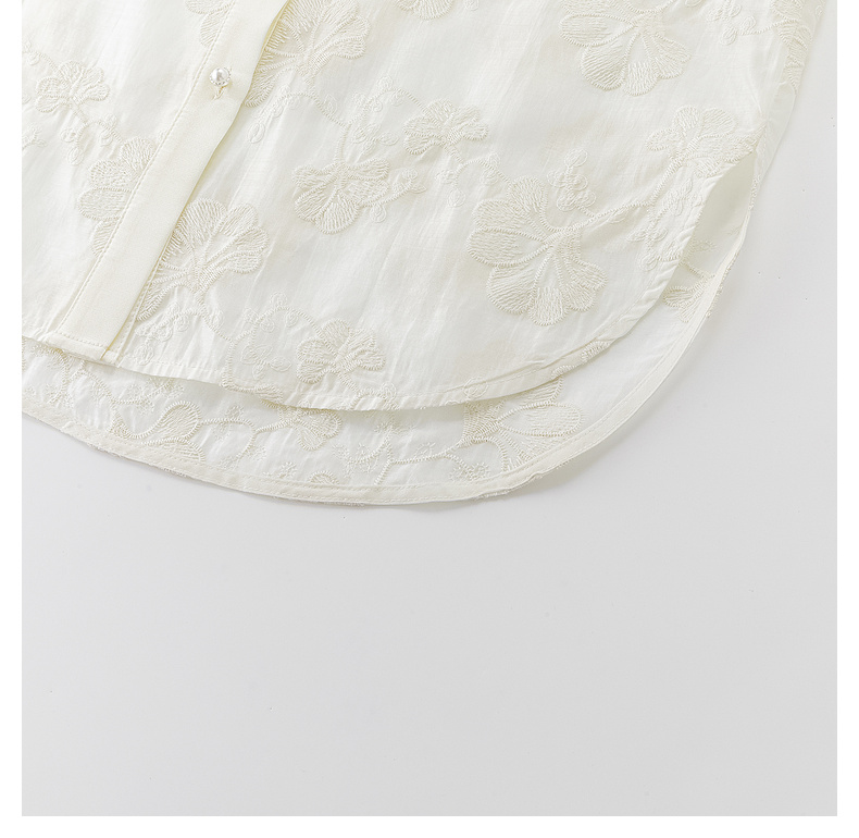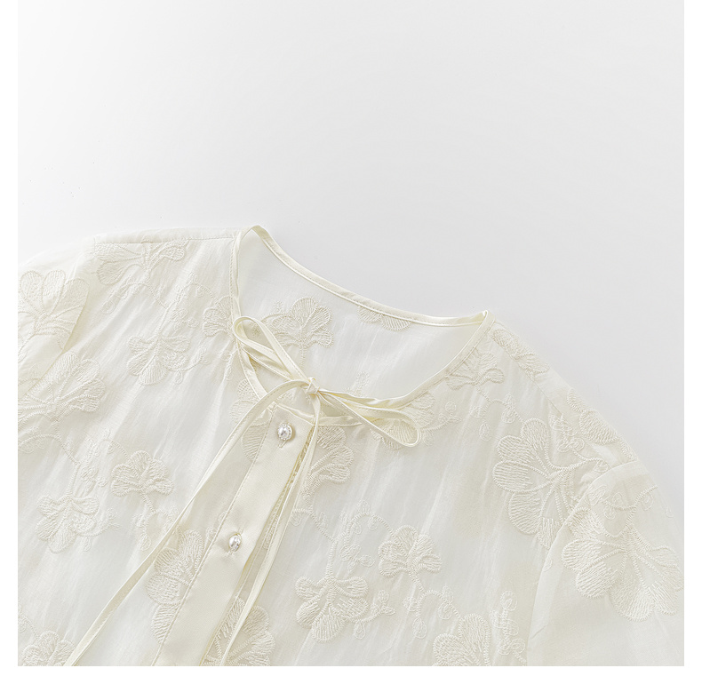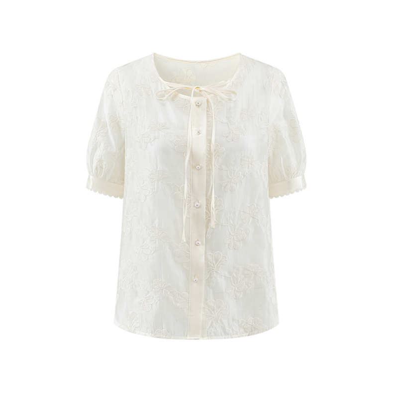 会员福利【天丝+重工刺绣】拉夏贝尔/La Chapelle圆领系带刺绣花朵短袖衬衫2025夏季新款上衣