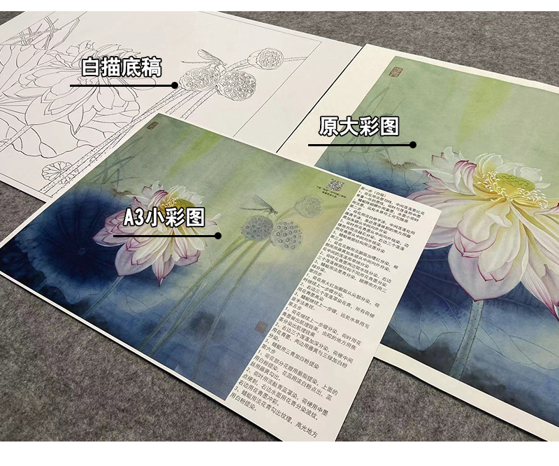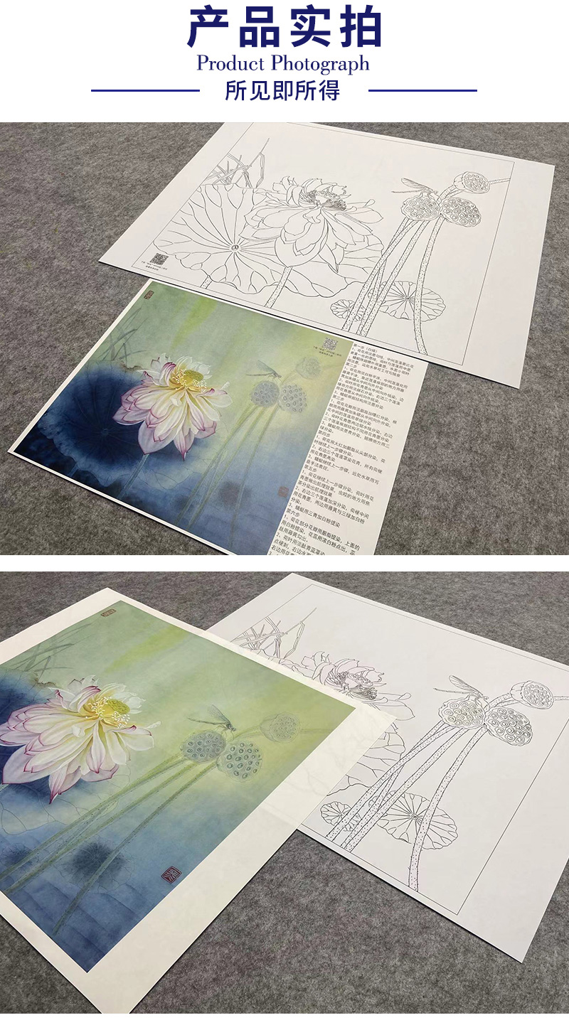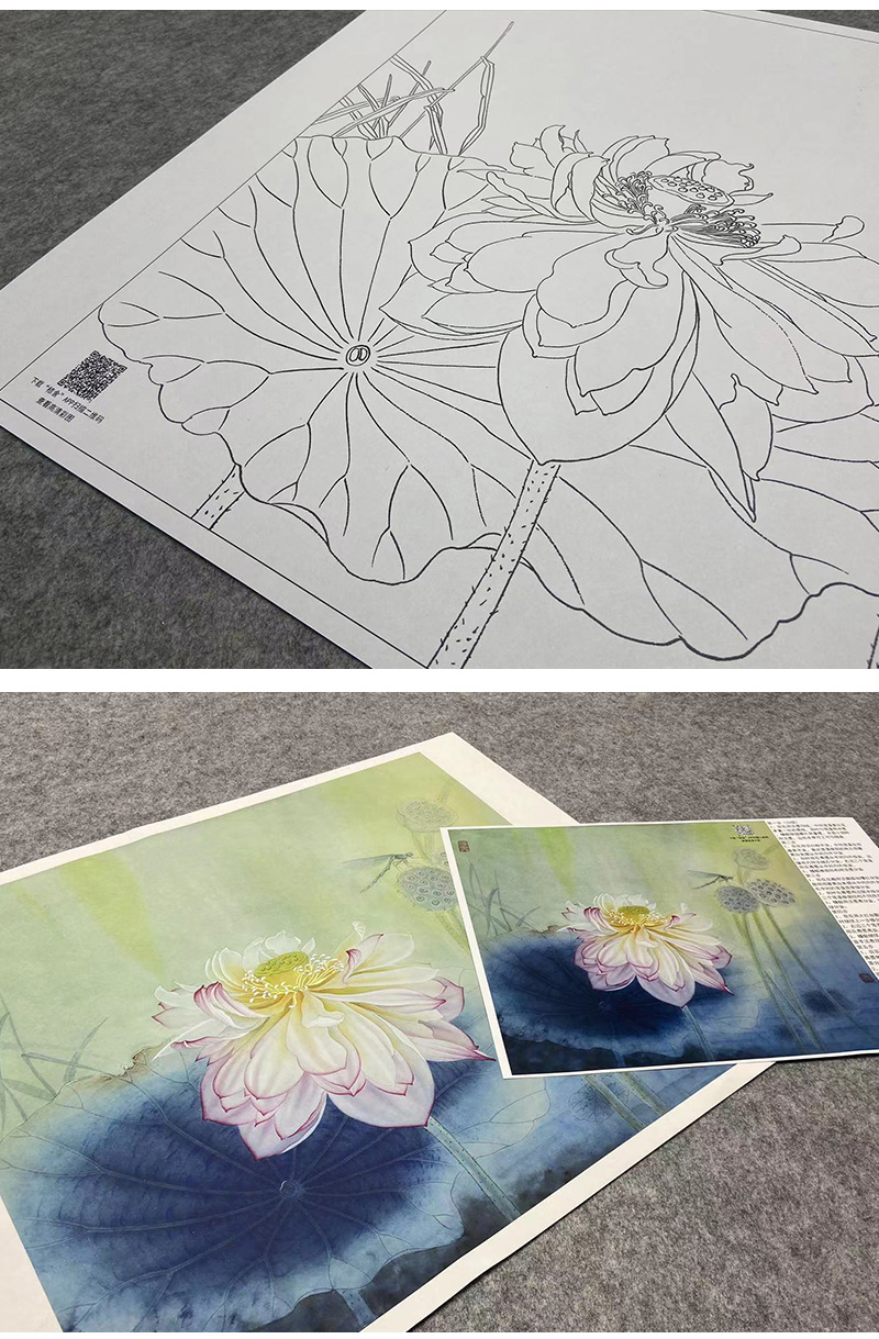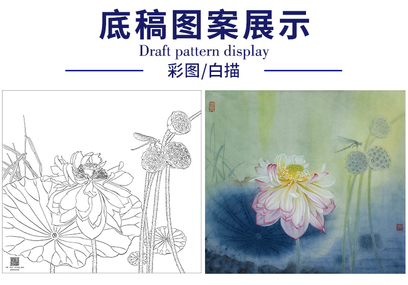 【大彩图】杨冬冬工笔画白描底稿小品《夜月幽梦》荷花临摹勾线花鸟线稿HD19