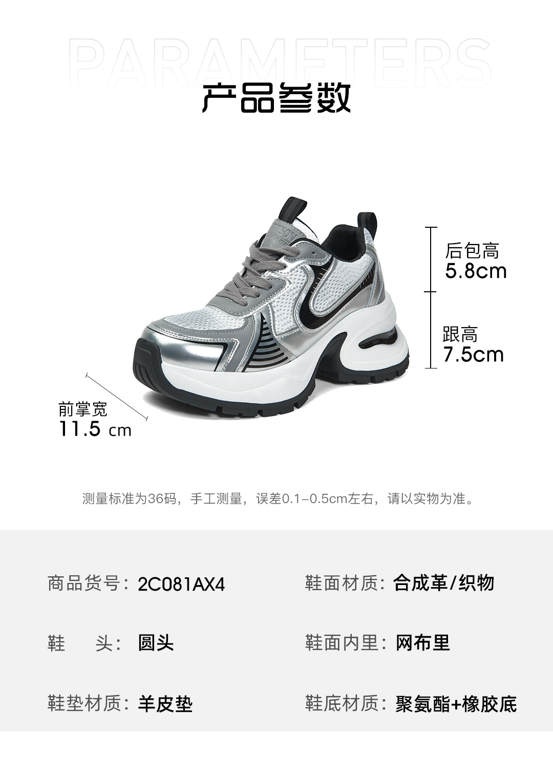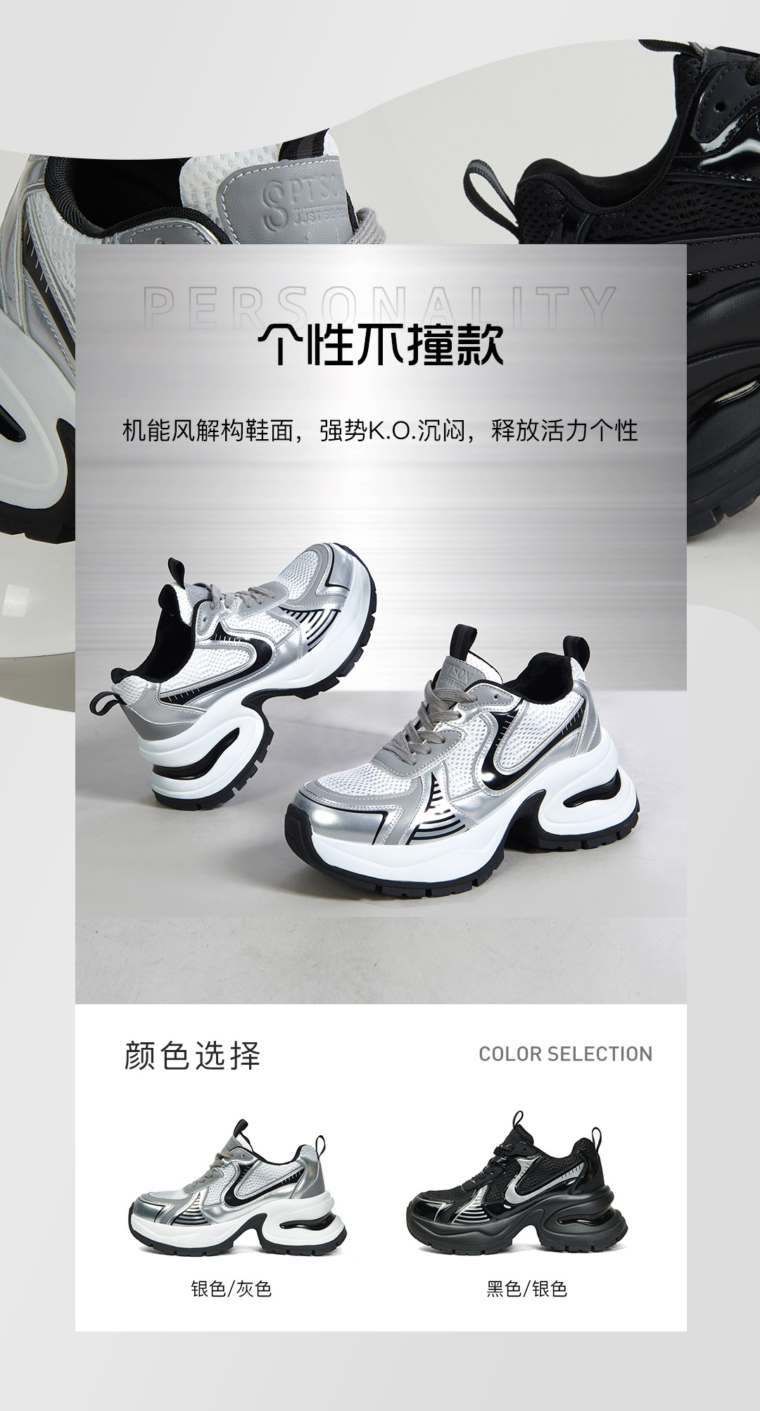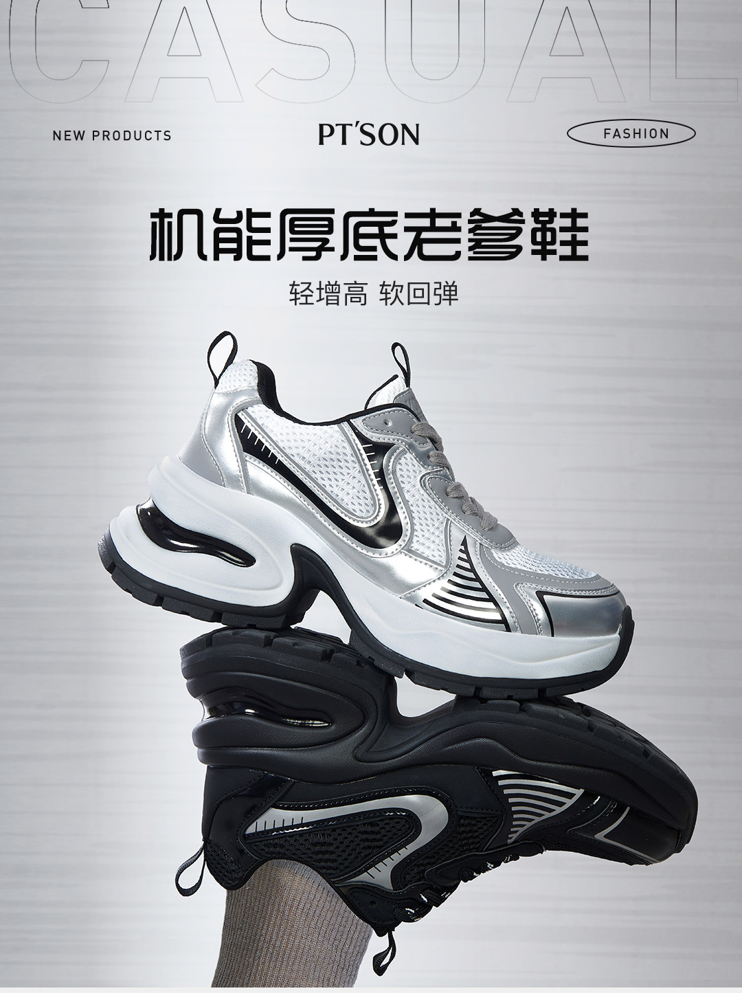 百田森PHG2C081拼色老爹鞋春新厚底增高显瘦透气休闲运动鞋女
