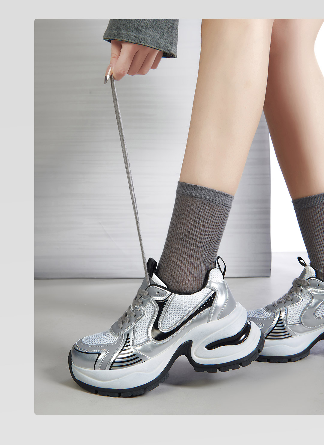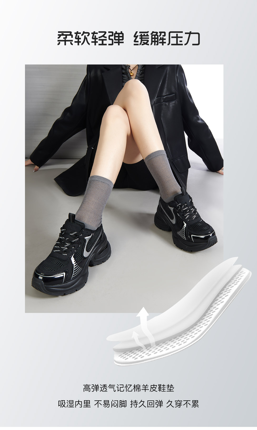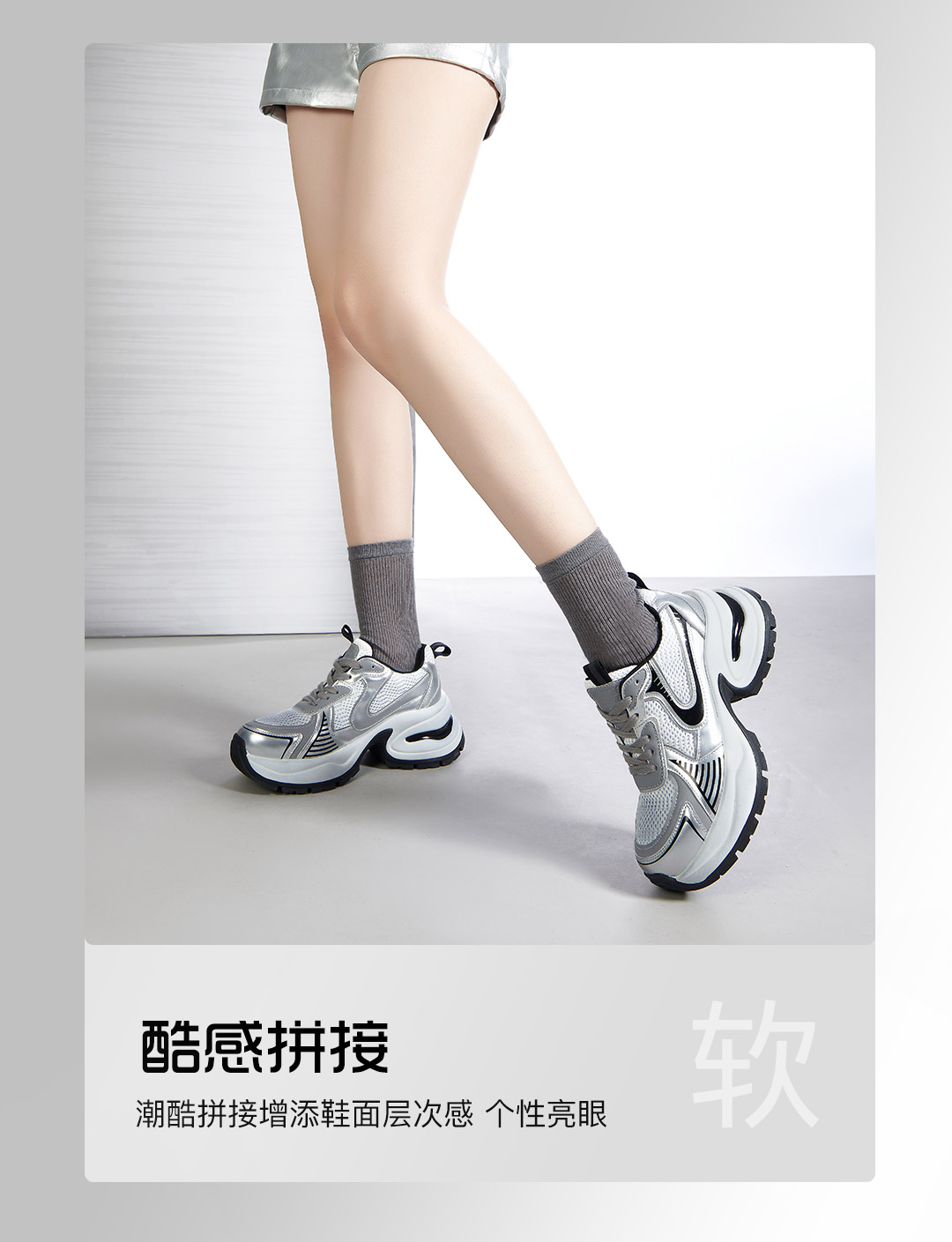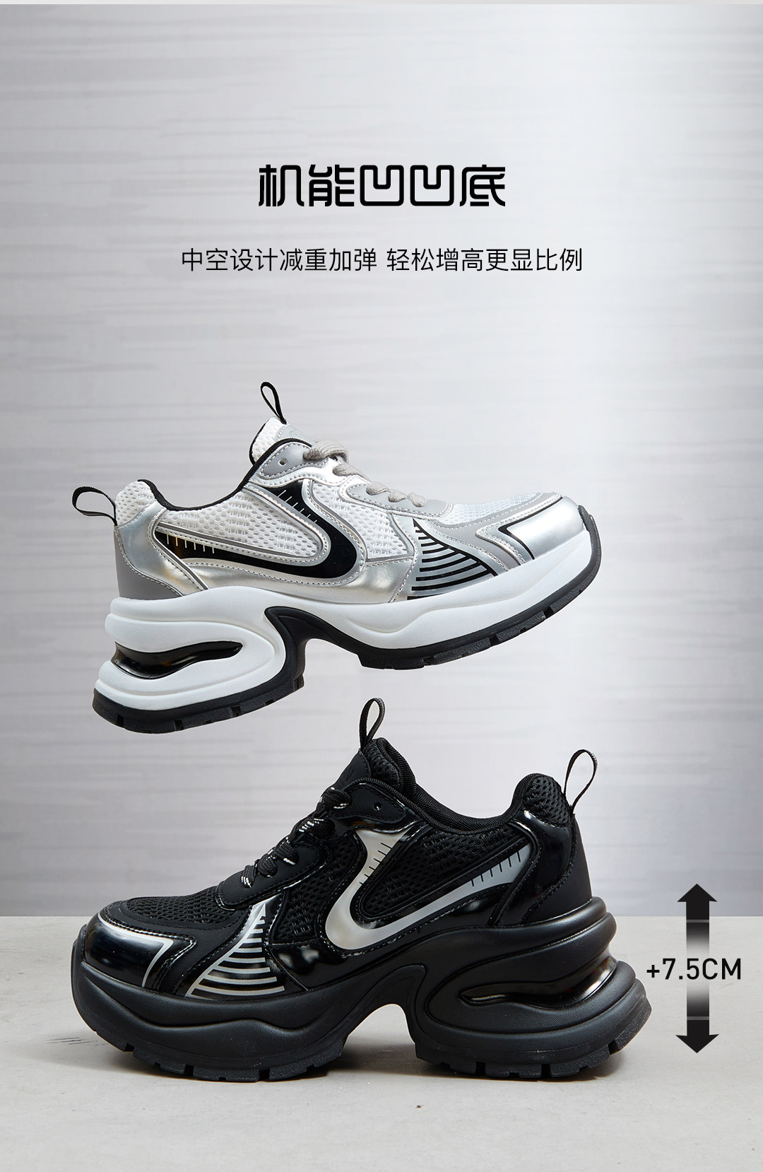 百田森PHG2C081拼色老爹鞋春新厚底增高显瘦透气休闲运动鞋女