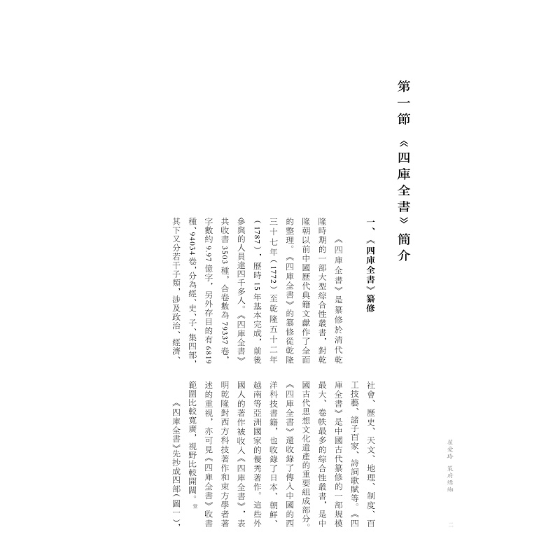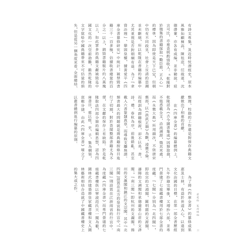 本书稿以“《四库全书》书籍设计系统”为题进行研究,对举凡书籍封面、内文、包装、副产品、藏书楼等作了综合的考察,对其中的形式作了细致的考证和比较。又从设计管理的角度将《四库全书》的策划、成书、收藏、使用等放在乾隆的文化战略中进行考察,角度新颖,立论有据。同时,该著作还将《四库全书》的书籍设计放在十八世纪世界设计史的视野中进行比较观察,对其主要成就和特征有了更深入的挖掘。