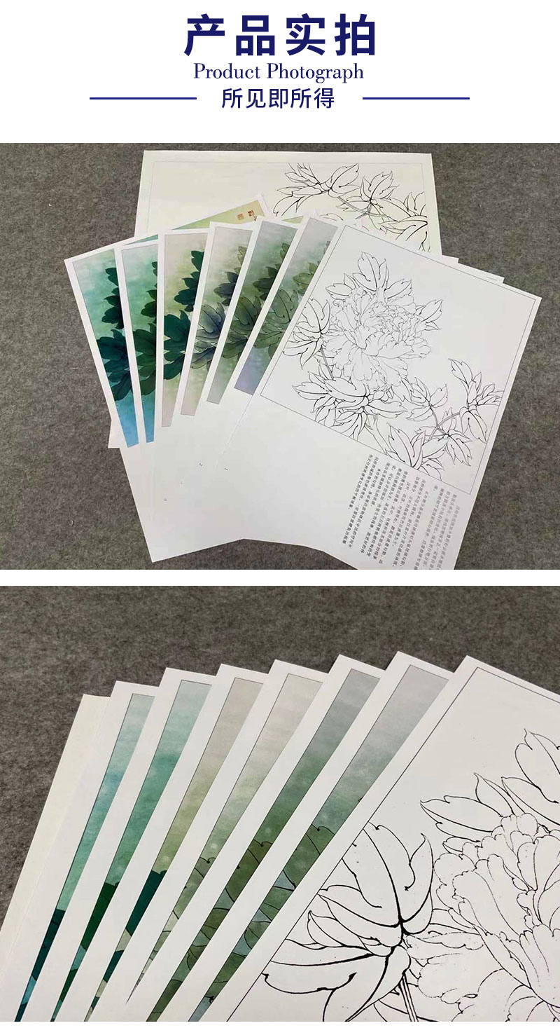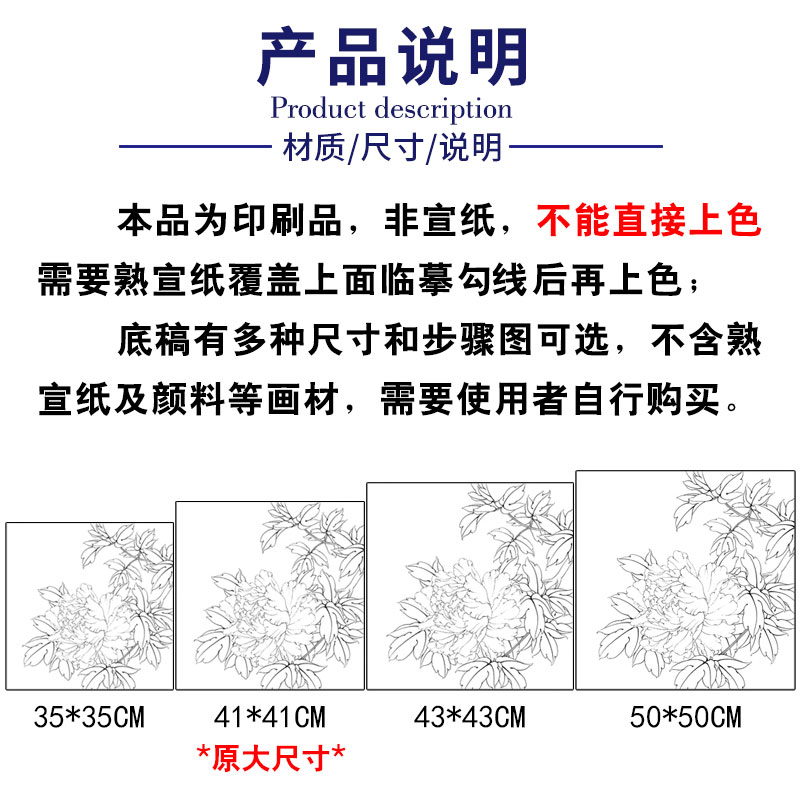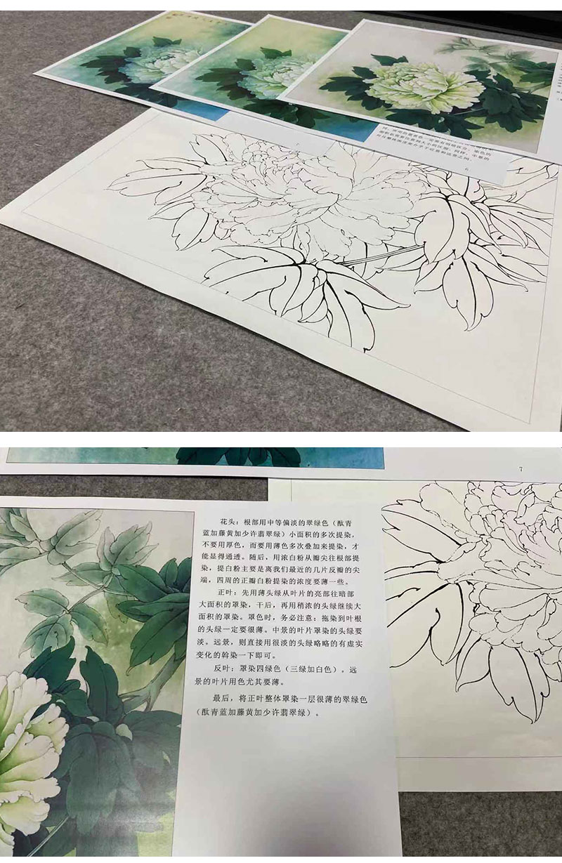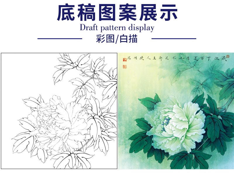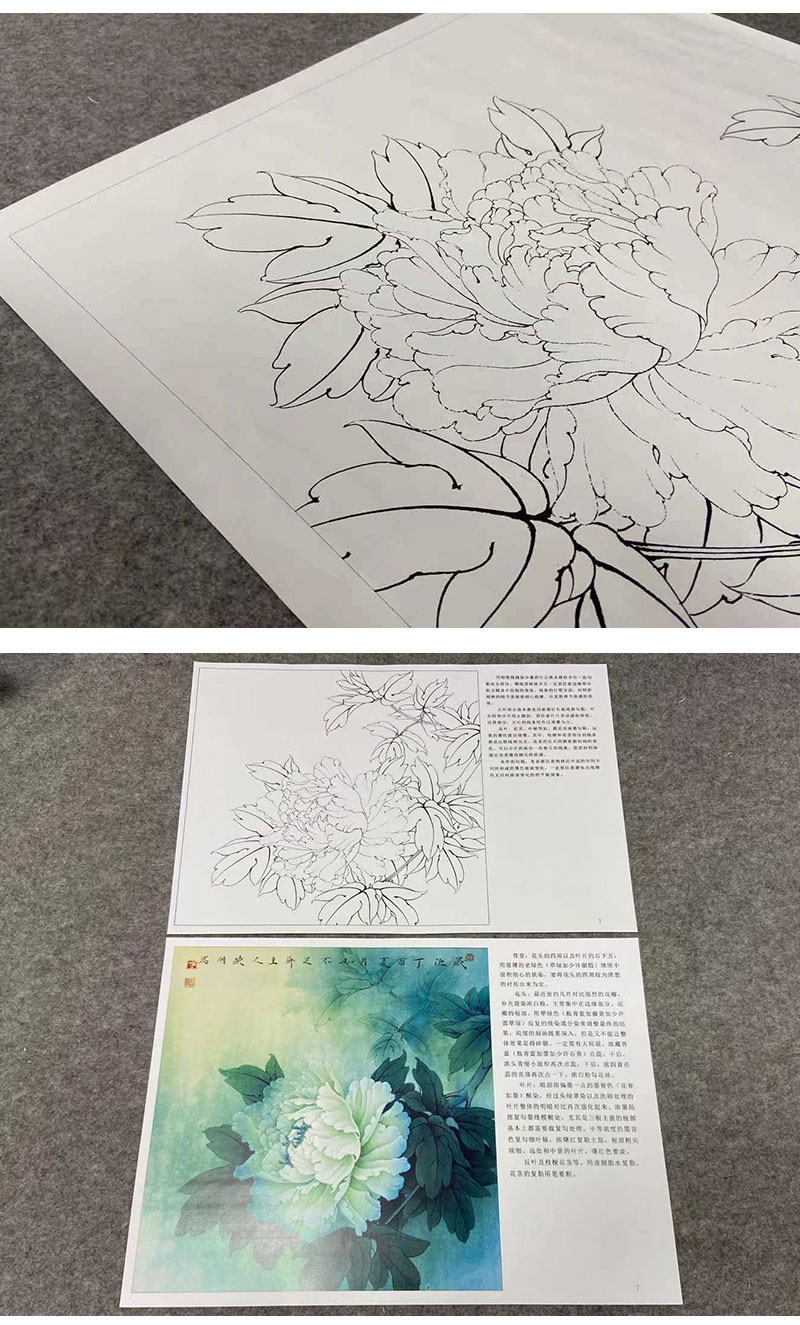 【有步骤、大彩图】李晓明工笔画白描底稿斗方小品《玉立春风》牡丹初学者临摹花鸟线稿KD21