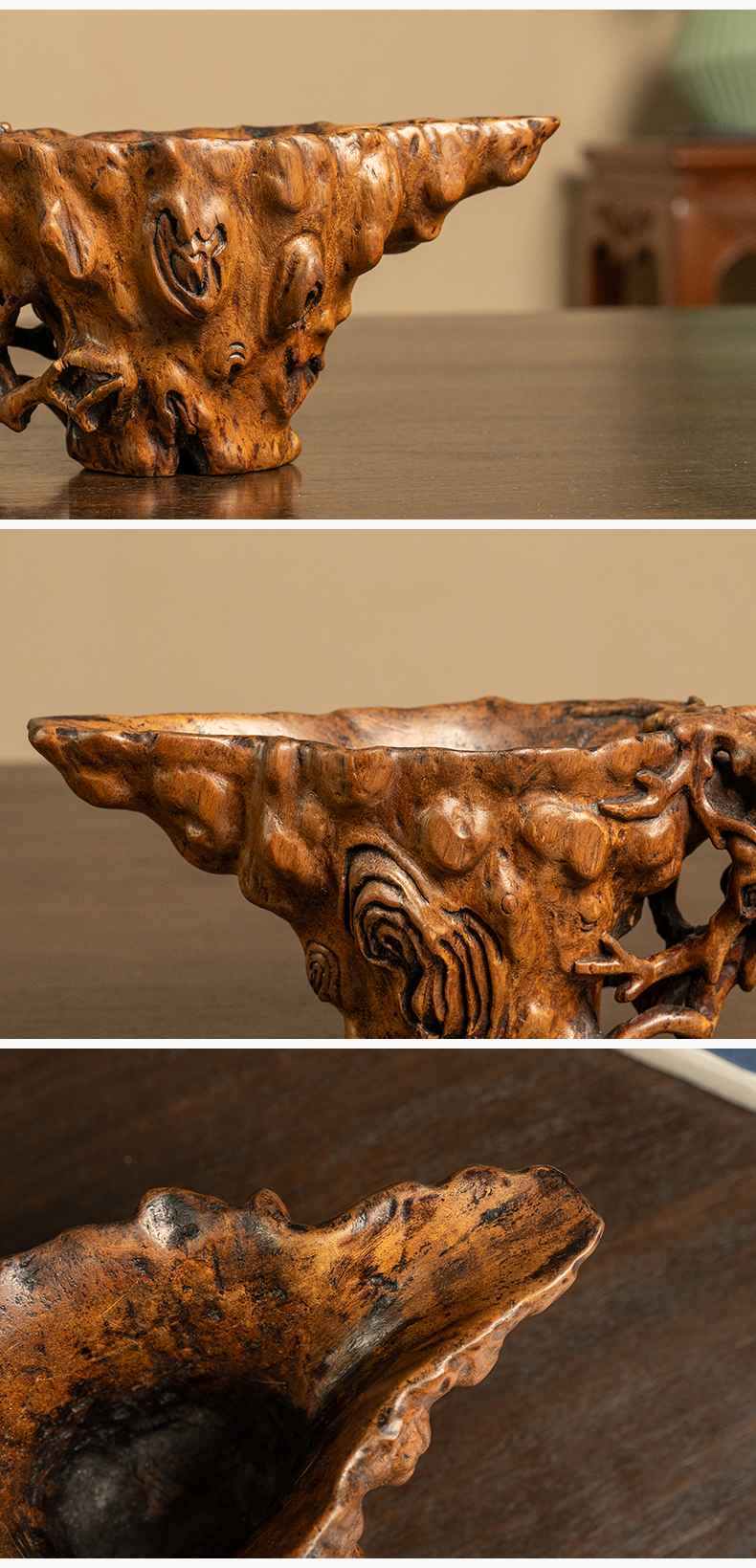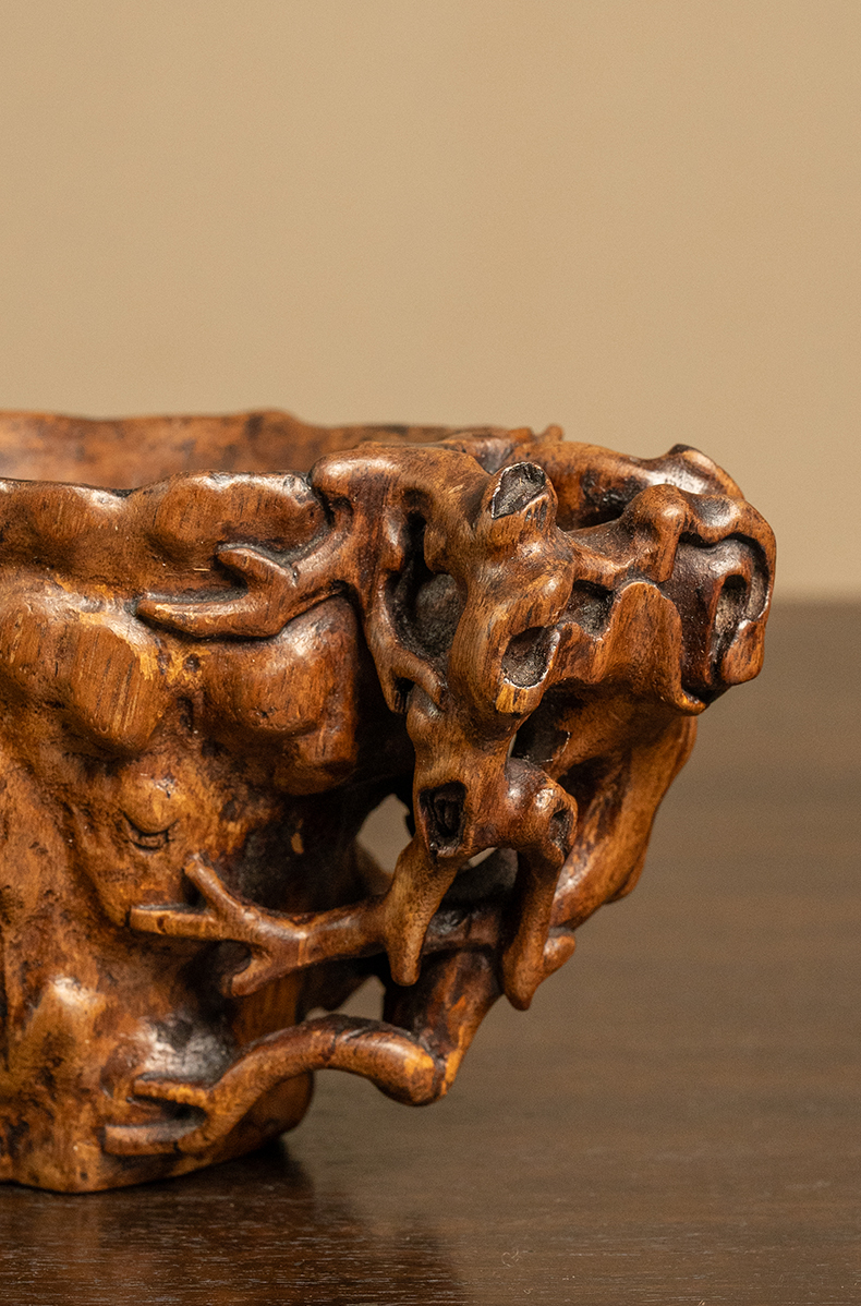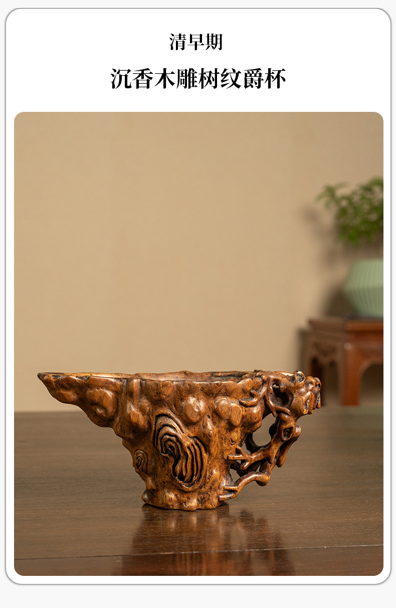 清早期 沉香木雕树纹爵杯