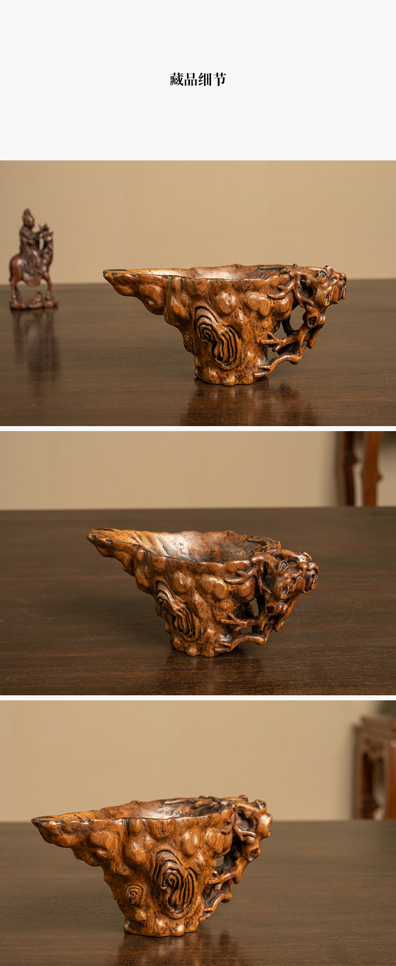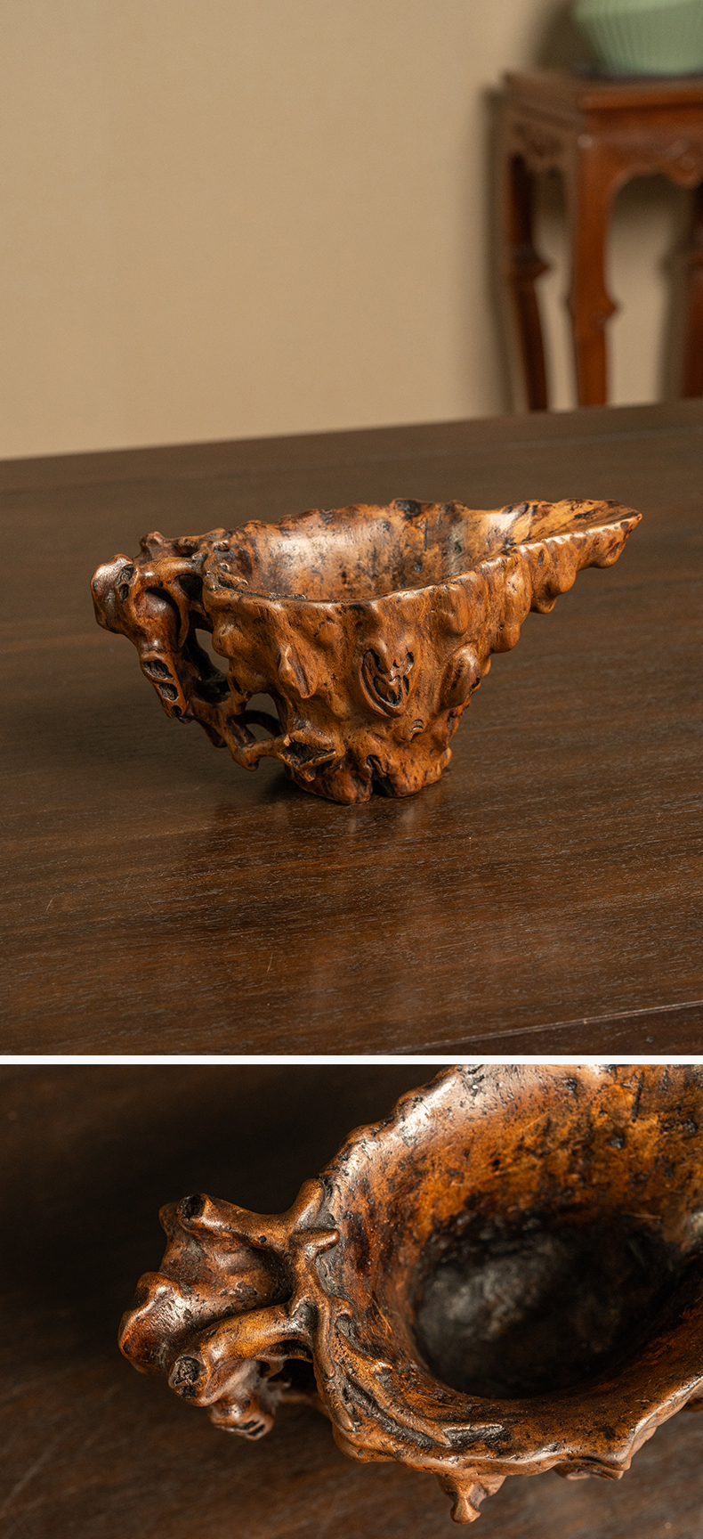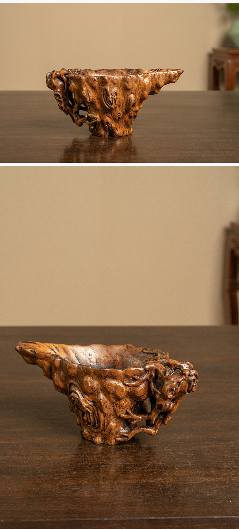清早期 沉香木雕树纹爵杯