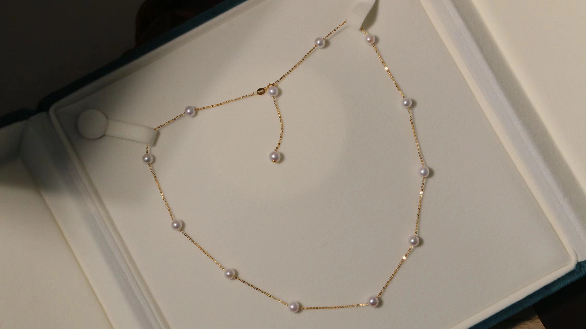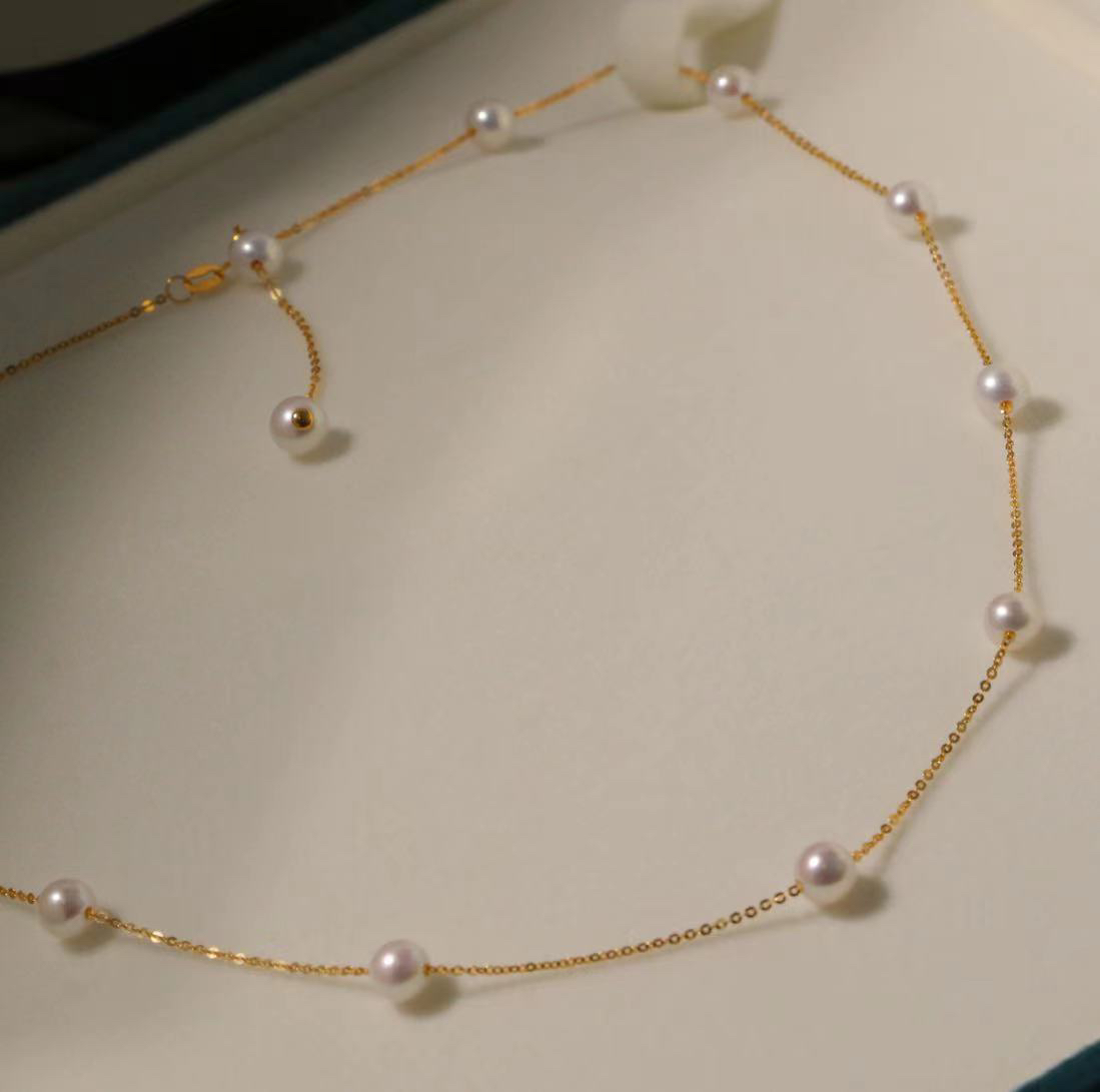 甄珠贝 满天星项链/手链 精品淡水5-6mm ji亮珍珠 一款多戴 18k金闪闪O字链 项链45cm/88cm两档可选