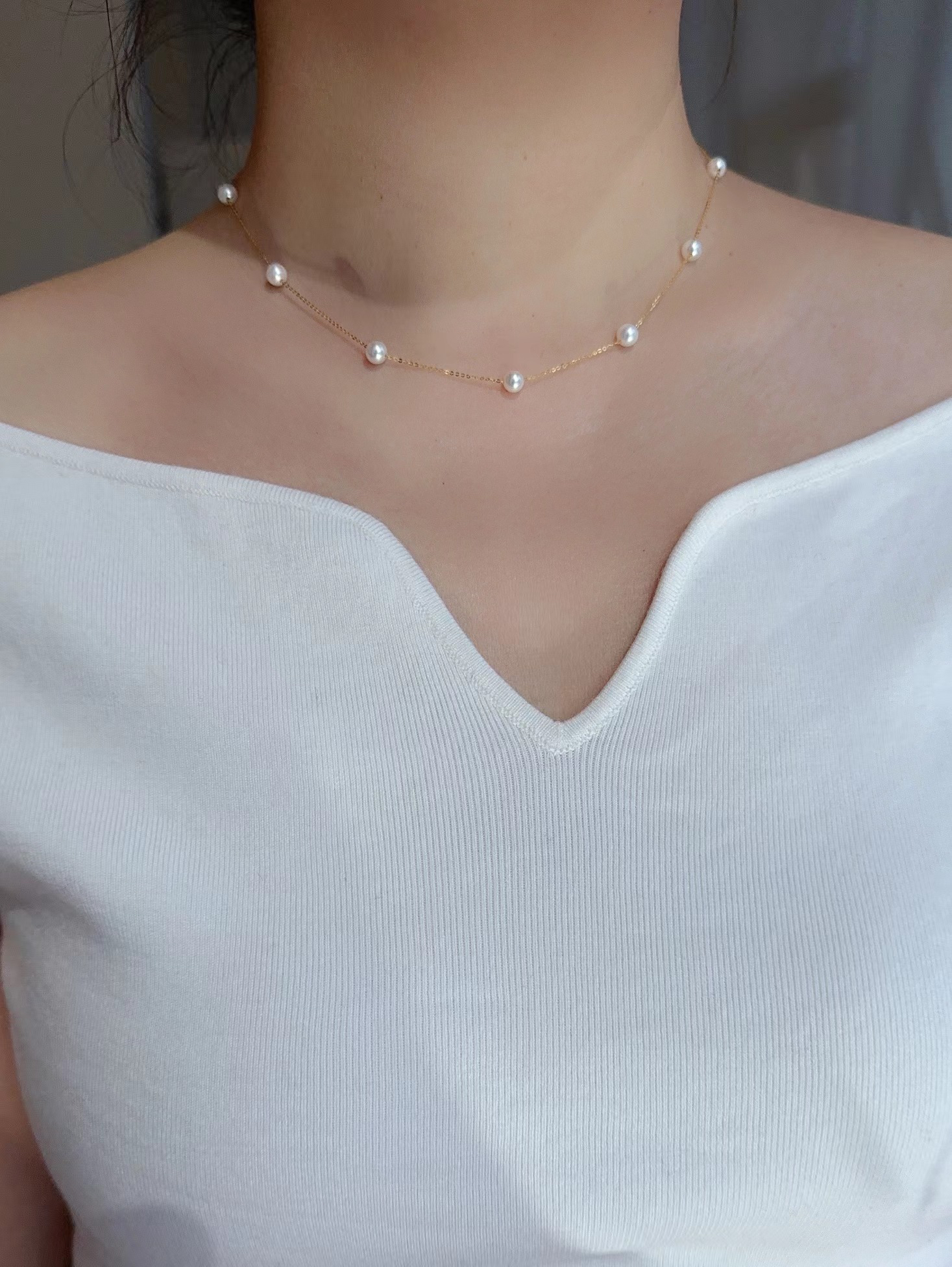 刷到这个照片很美,所以想着给大家安排了一个章子怡同款,爆亮淡水天花板小珍珠,5-6mm,超闪o字链。