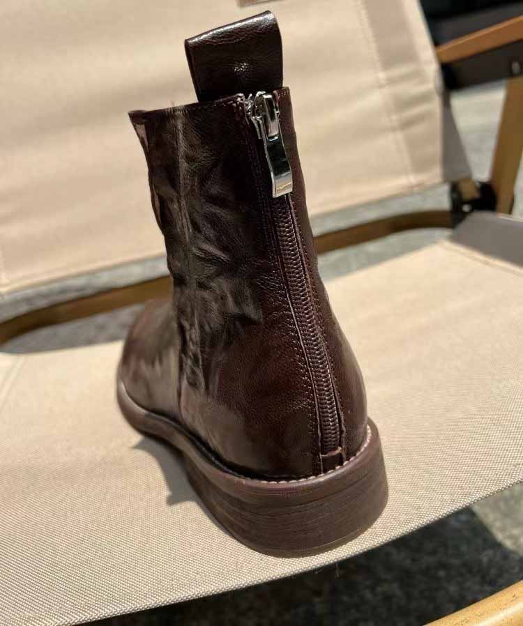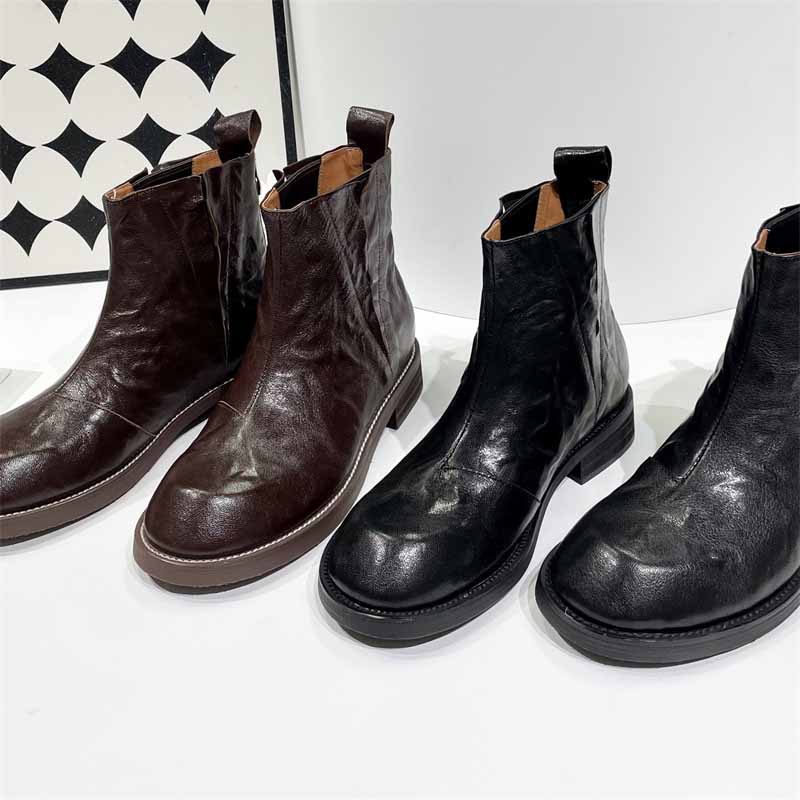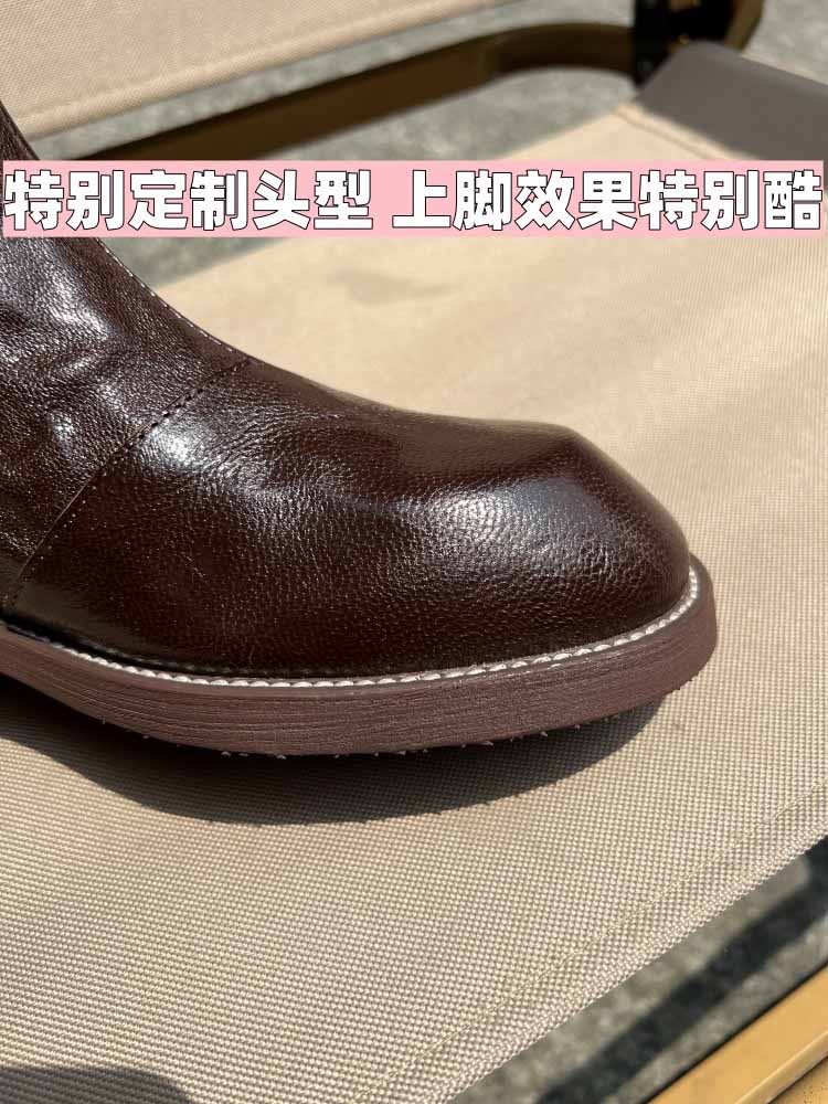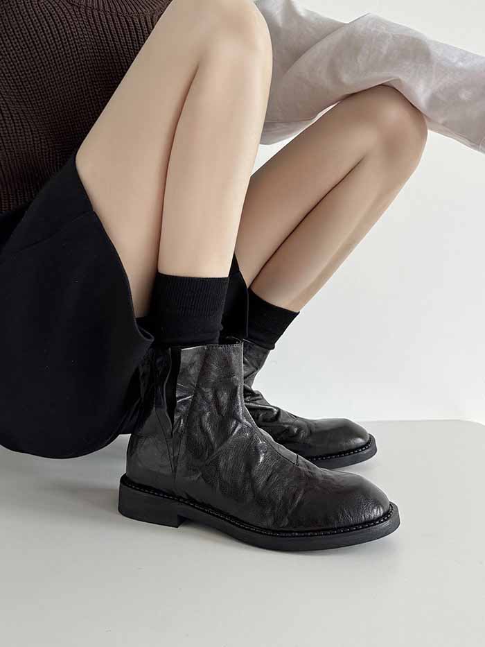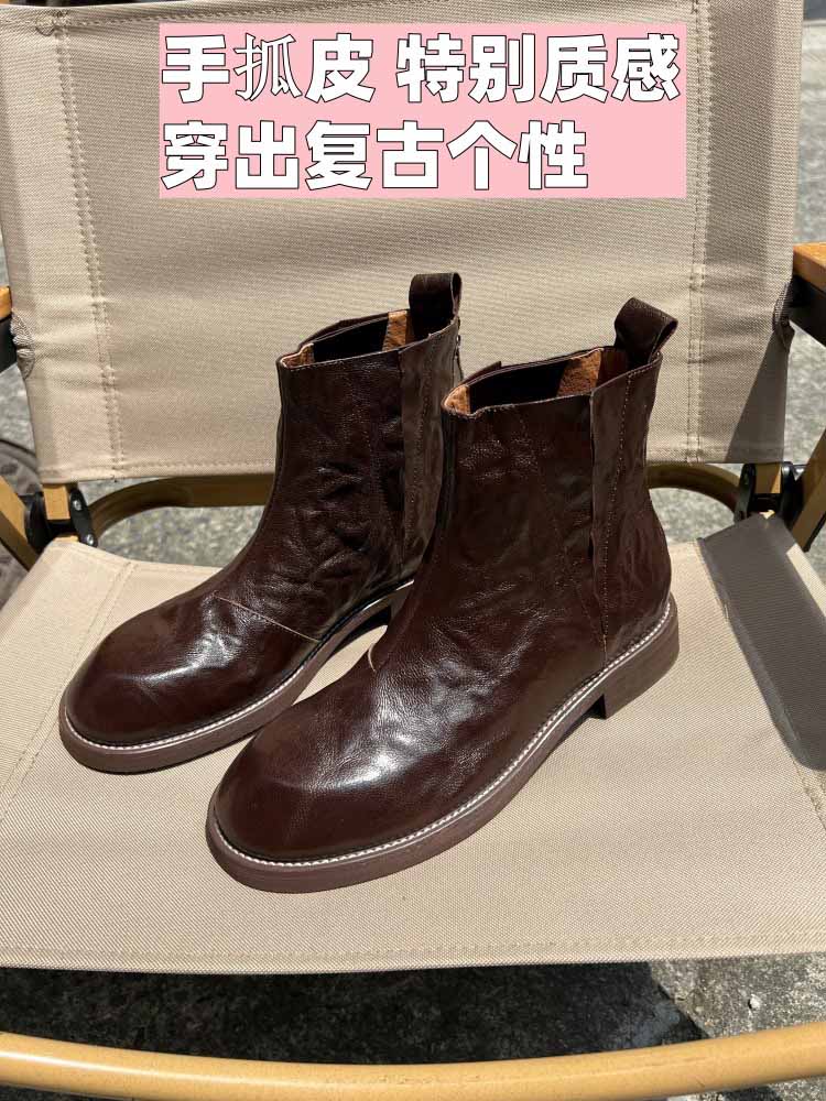 「手抓纹羊皮真皮切尔西短靴马丁靴」越皱越有感觉,小众贵气感鞋型!