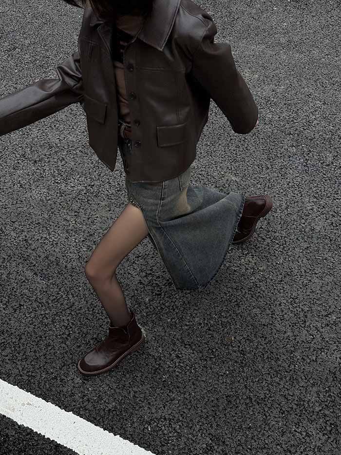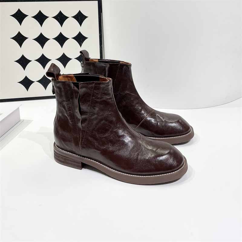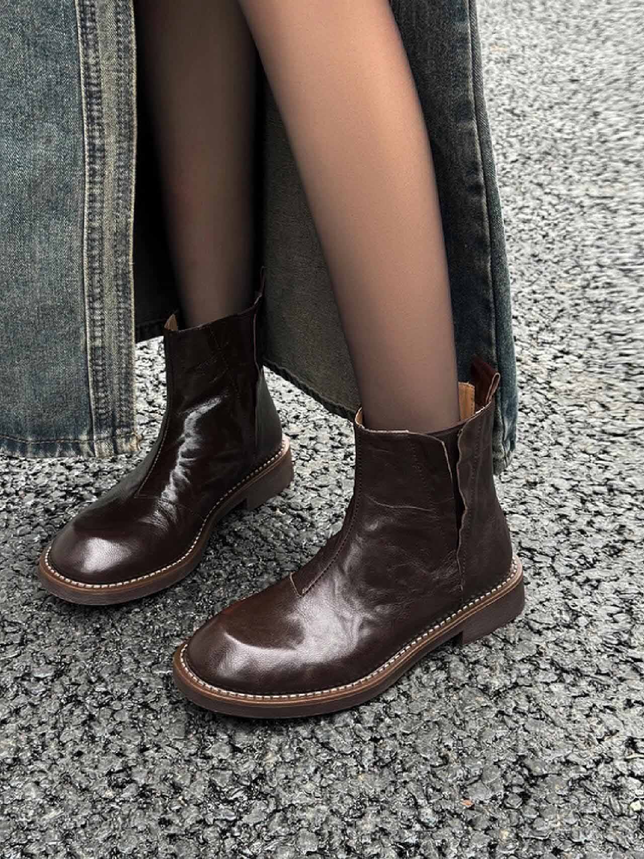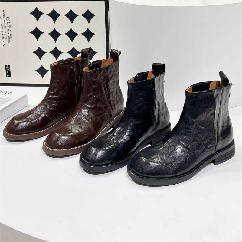 「手抓纹羊皮真皮切尔西短靴马丁靴」越皱越有感觉,小众贵气感鞋型!