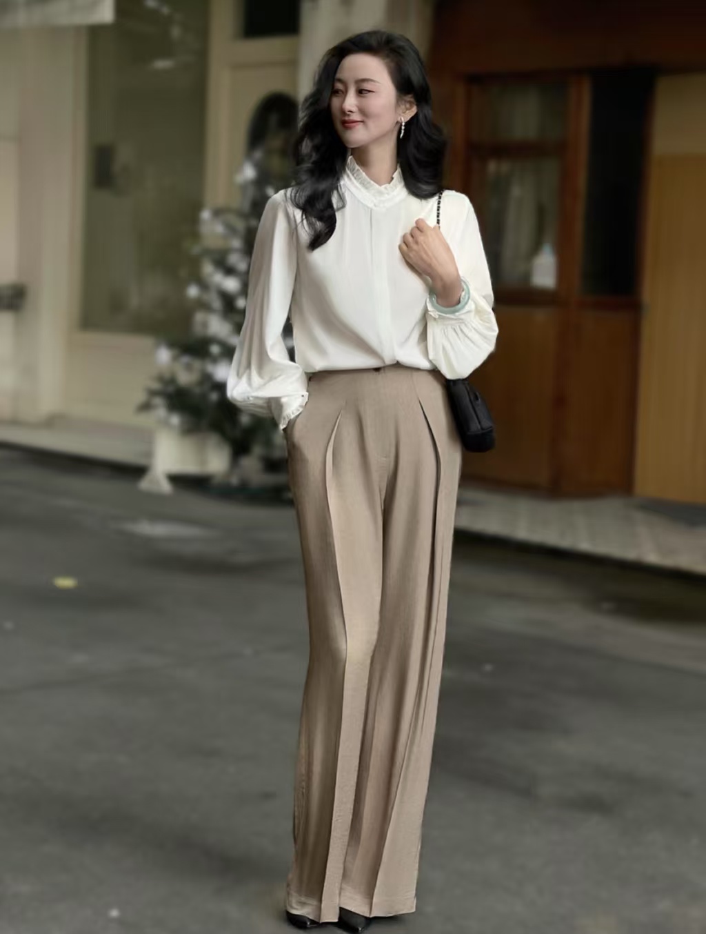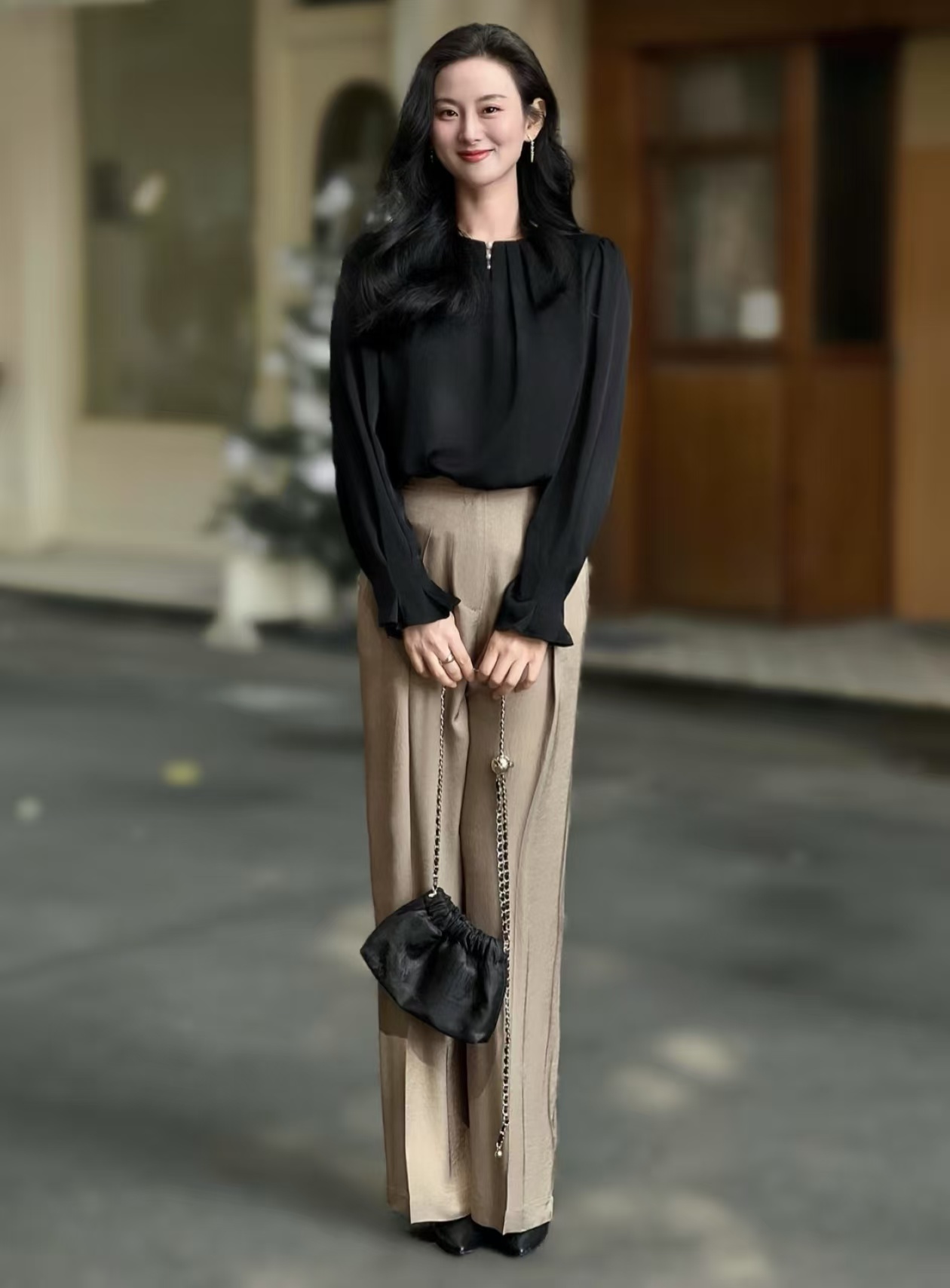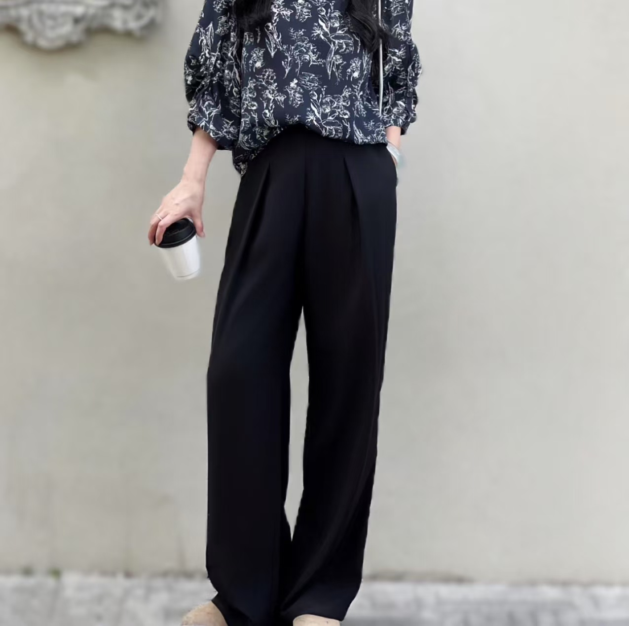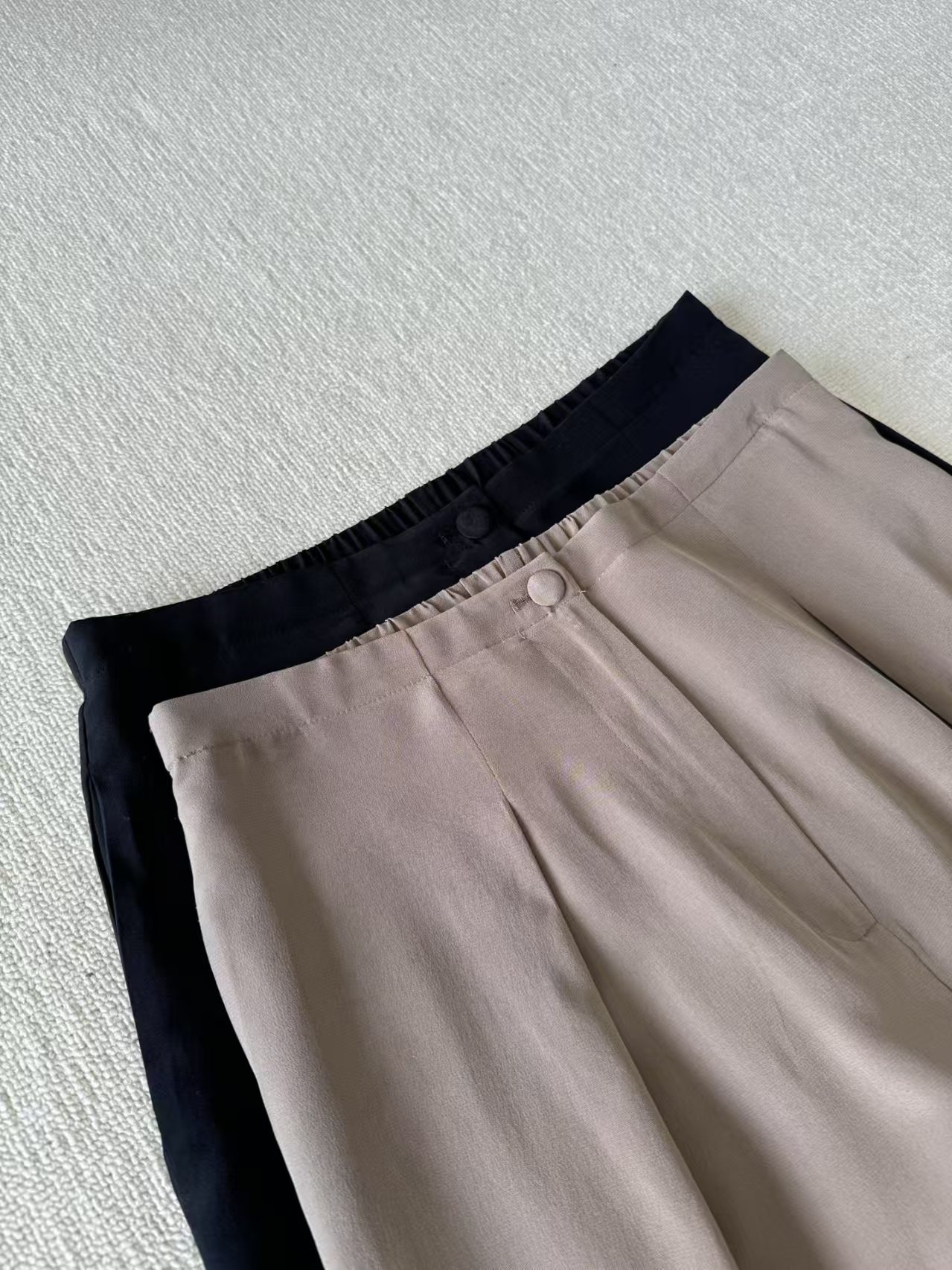 大王*真丝直筒阔腿裤,春夏必入的一款真丝裤,透气又舒适,进口22姆米双绉面料,很高级,很清凉舒适,后腰有弹力松紧设计,不挑人。
