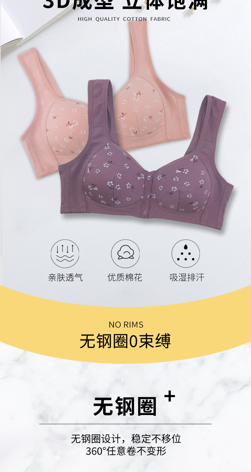 YY-268定型杯前扣大码无钢圈宽肩带背心式新款印花文胸