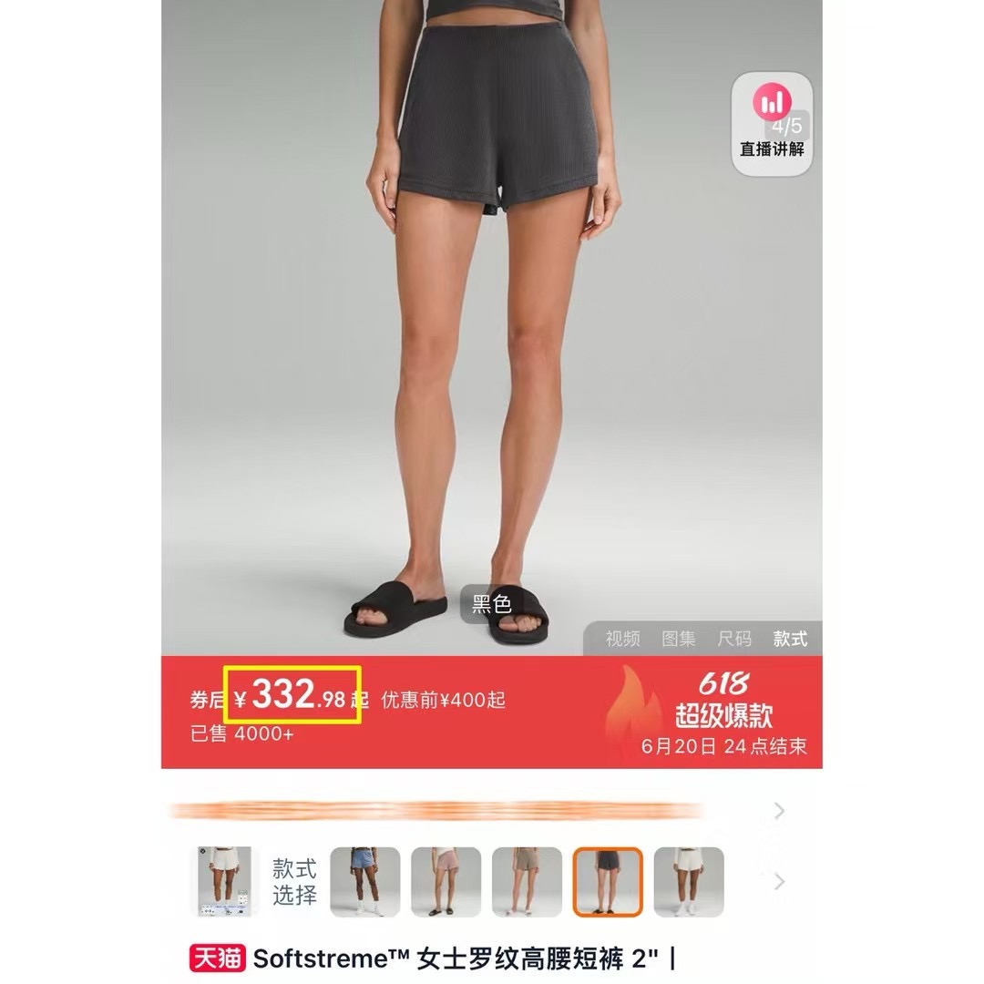 108 货号088633108 bk 【l*ululemon露露乐蒙 2025新款 Softstreme女士螺纹短裤】