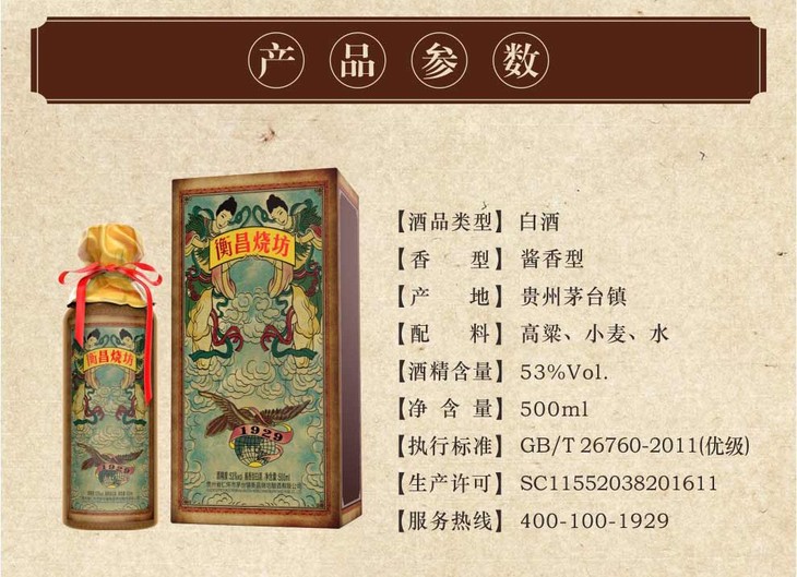 【推荐】衡昌烧坊1929 53度 贵州酱香型白酒 500ml 6瓶装