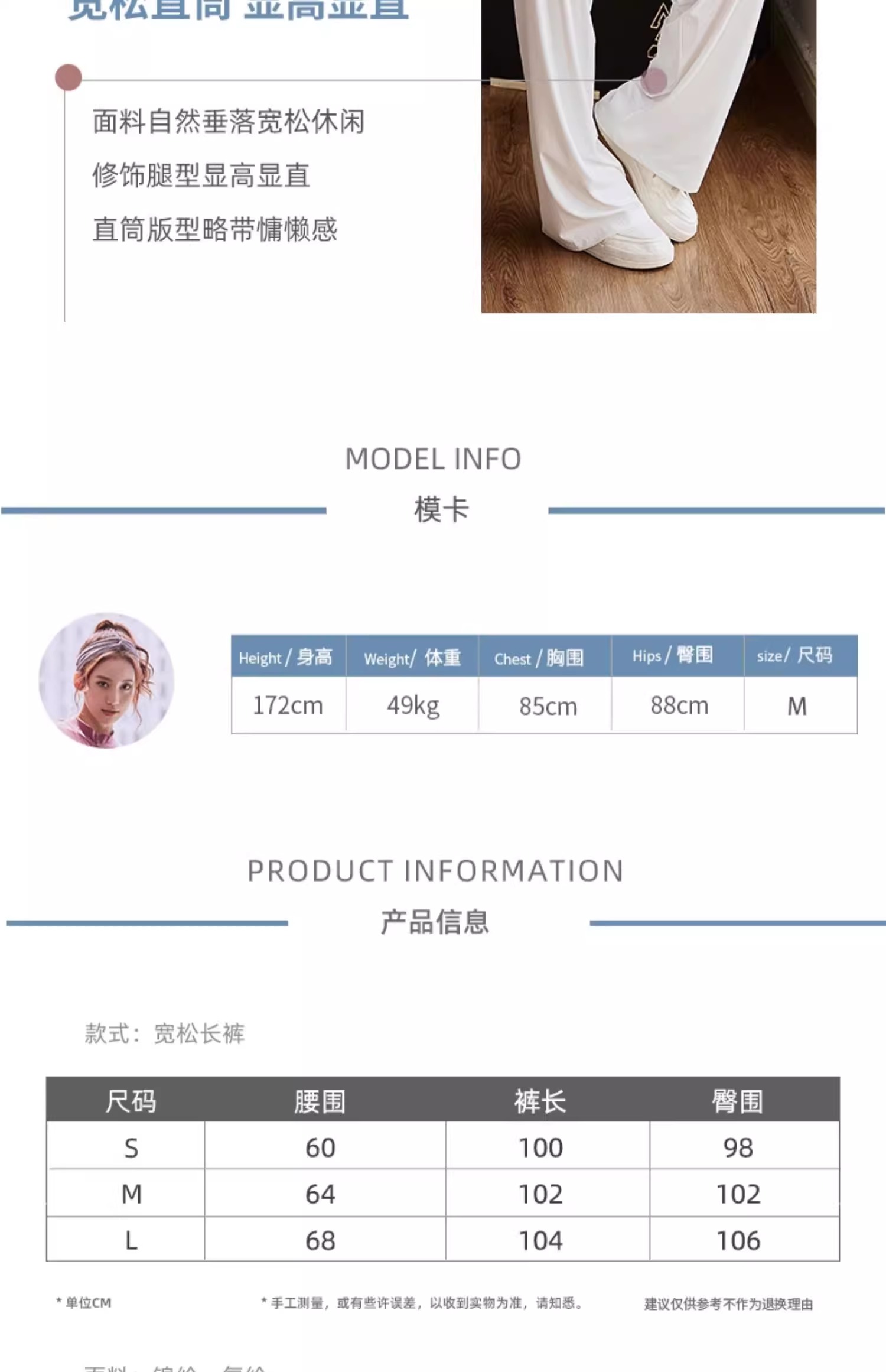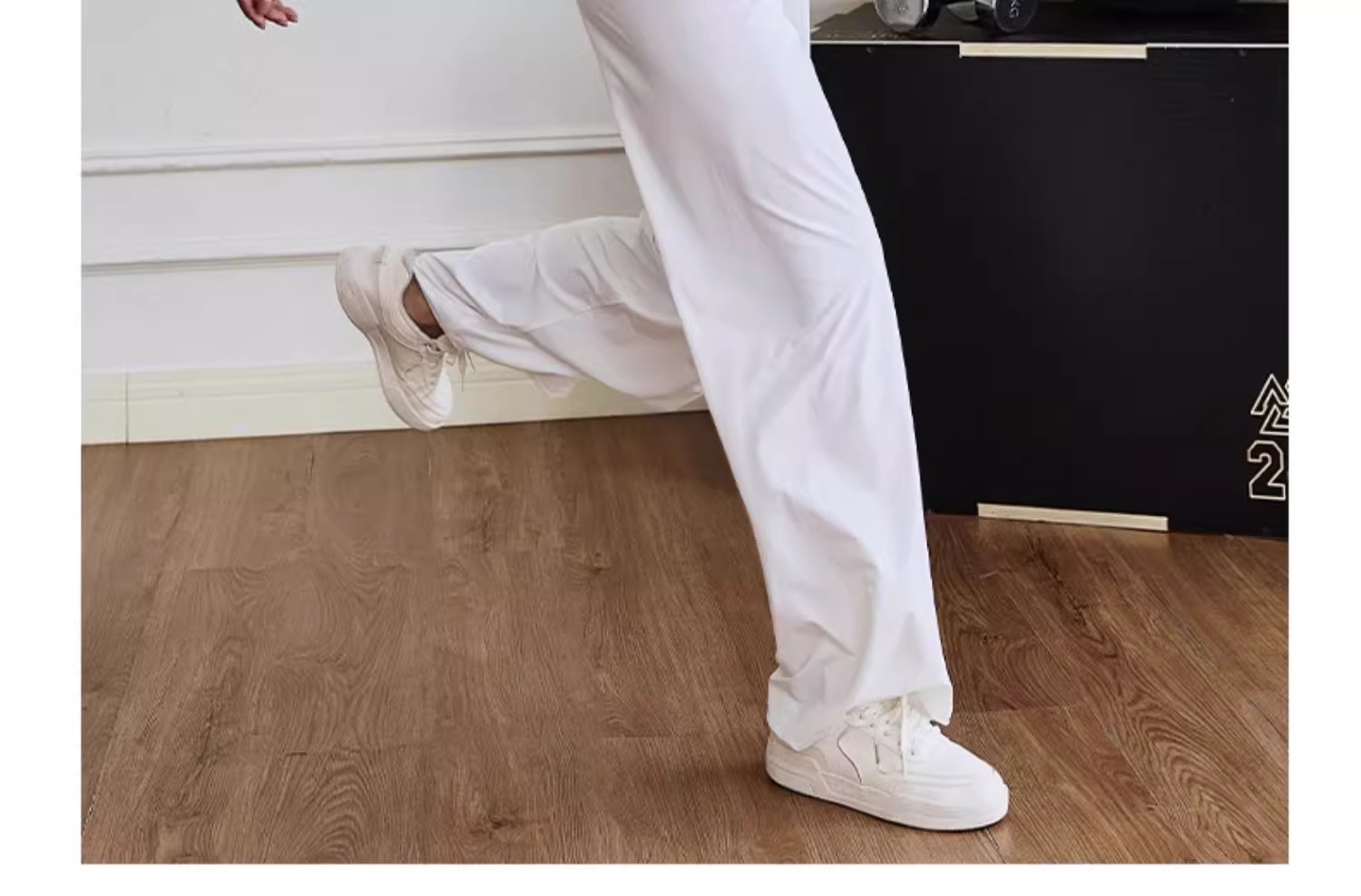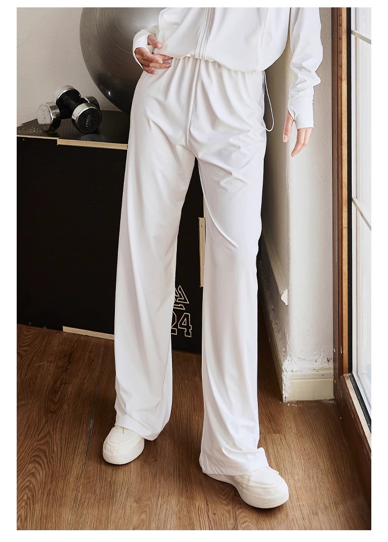 跃牌【周游世界系列】休闲裤女运动长裤白色直 筒高腰裤 PT2368