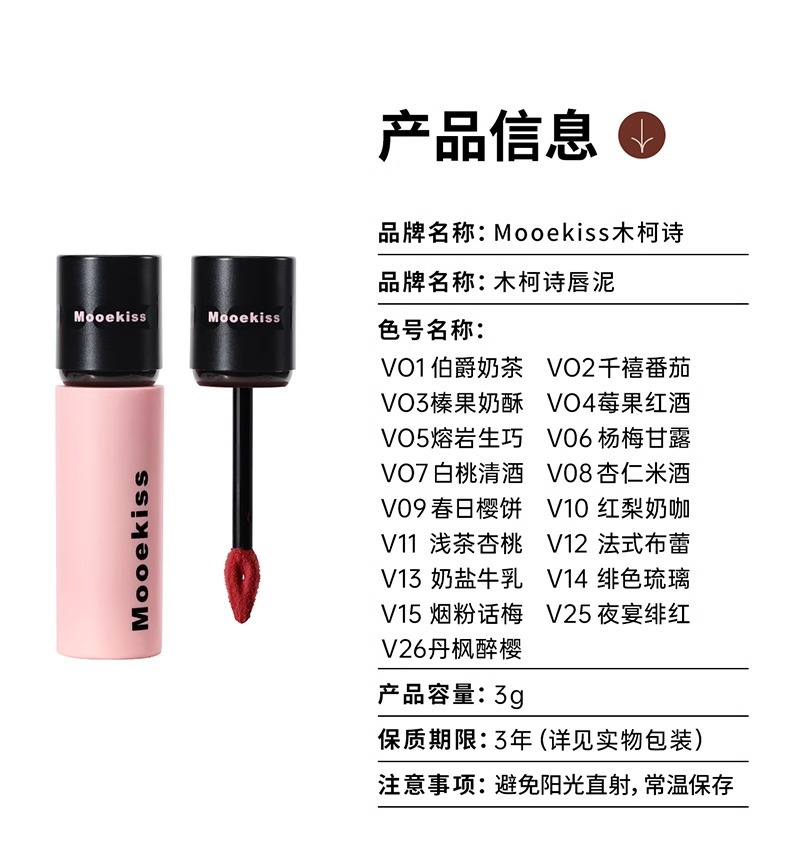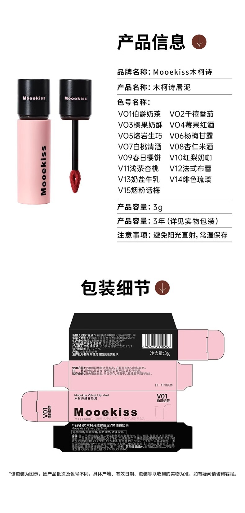 新色~Mooekiss/木柯诗唇泥显白口红女秋冬小众品牌平价唇釉雾面哑光唇霜唇雾唇彩唇蜜