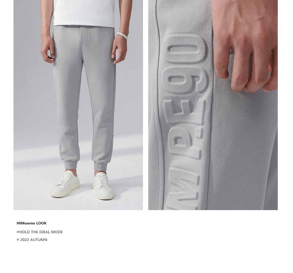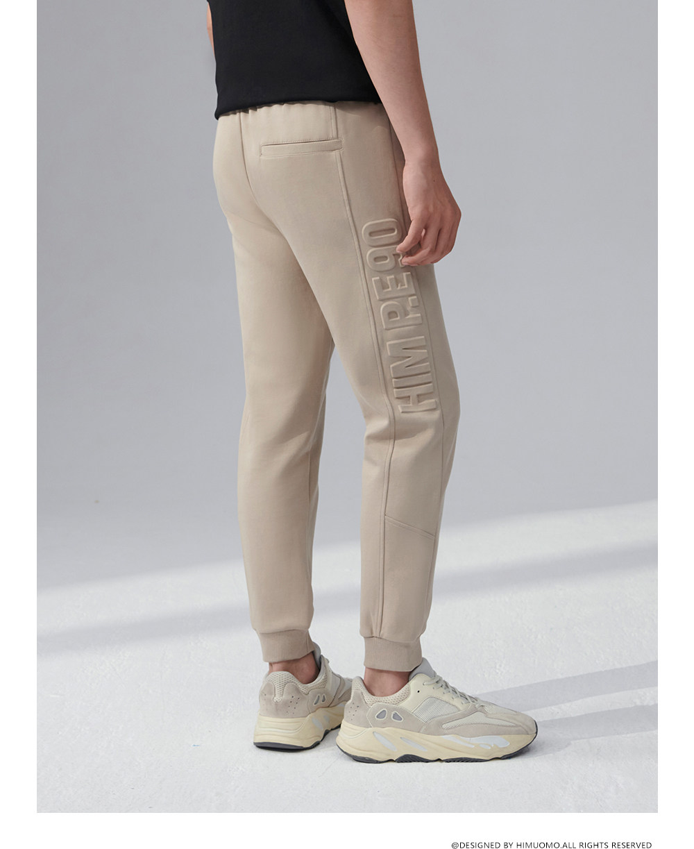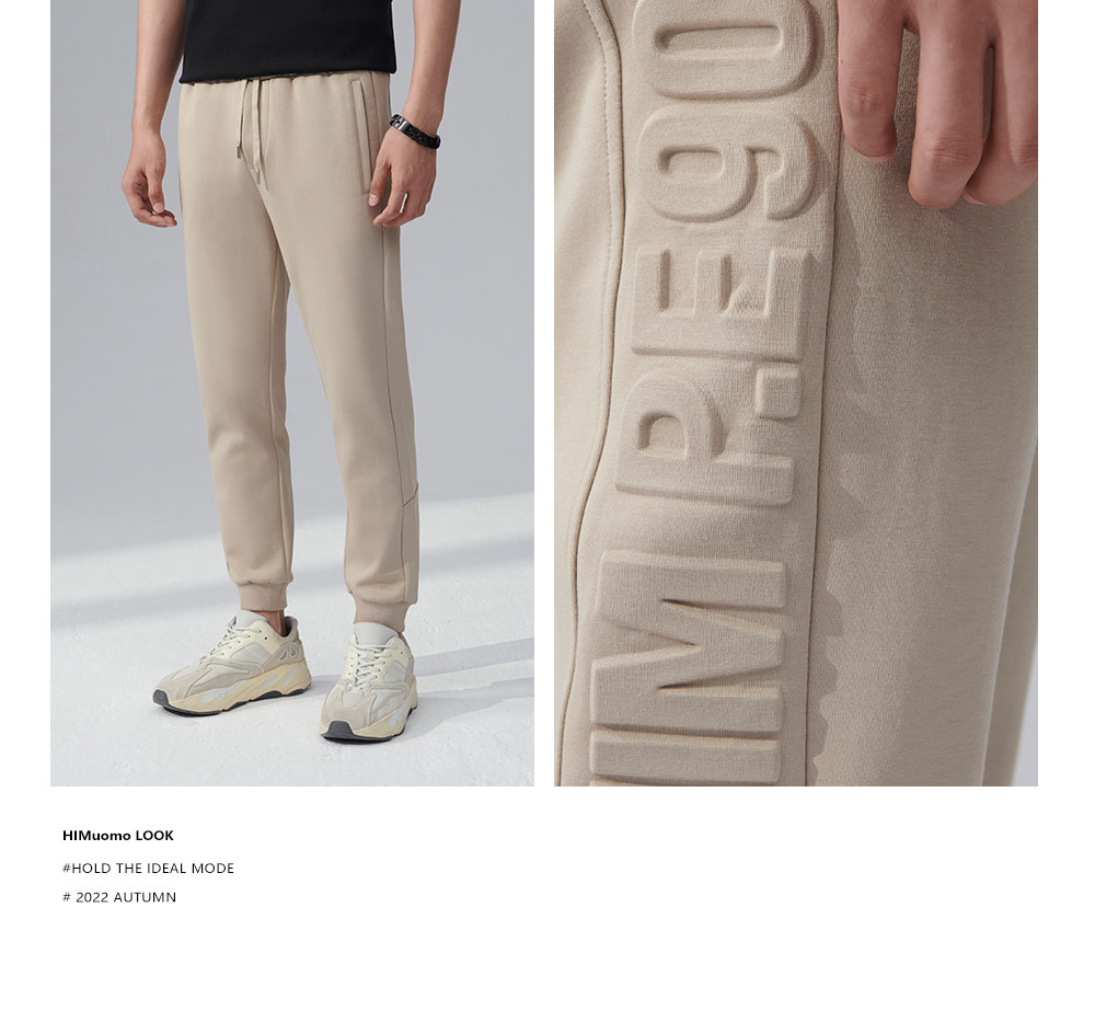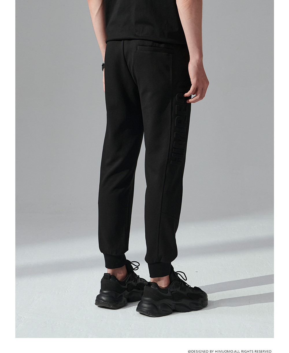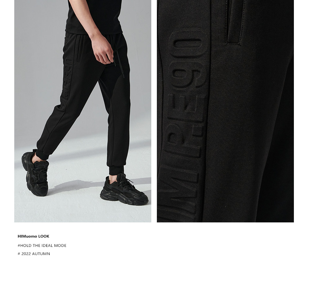 HIM漢崇 舒适透气束脚裤男字母空心压印抽绳松紧腰运动裤2026春季