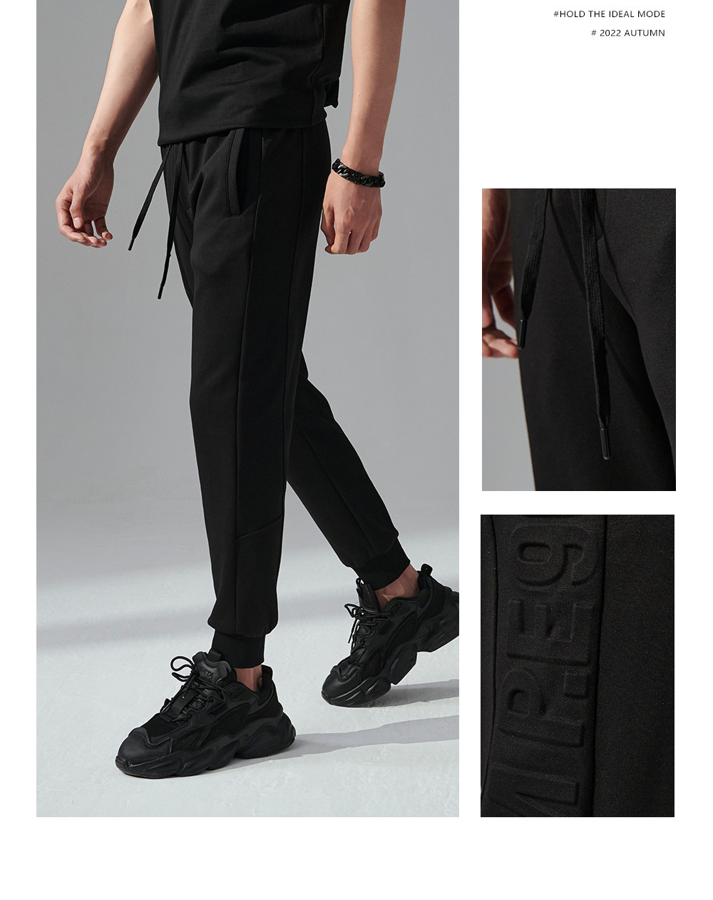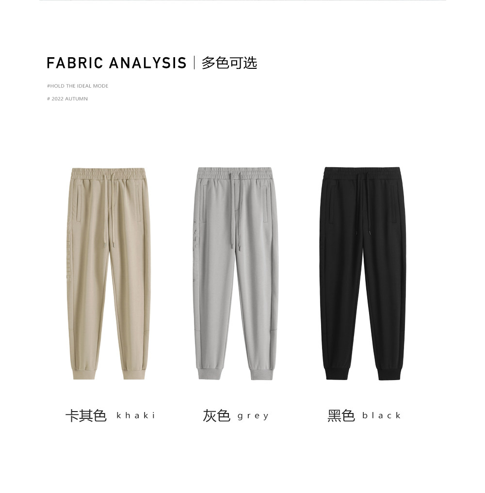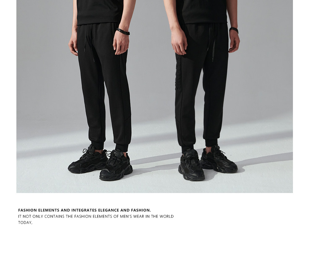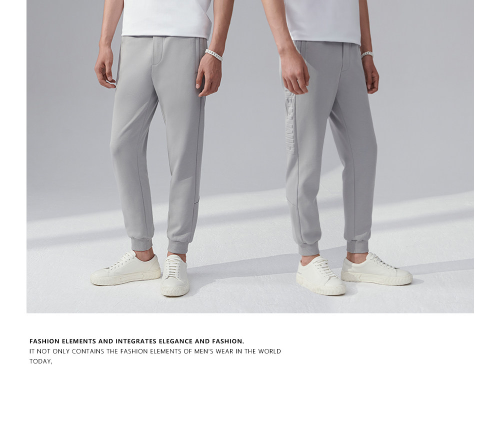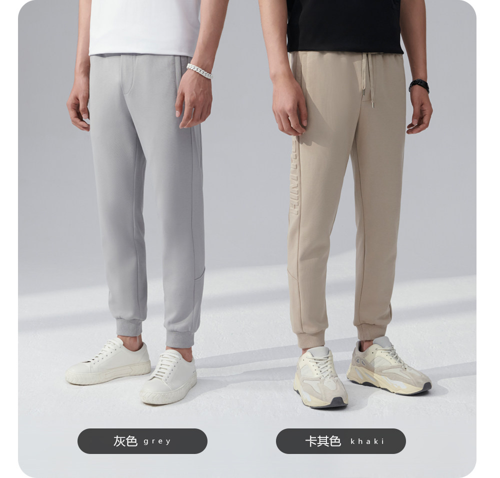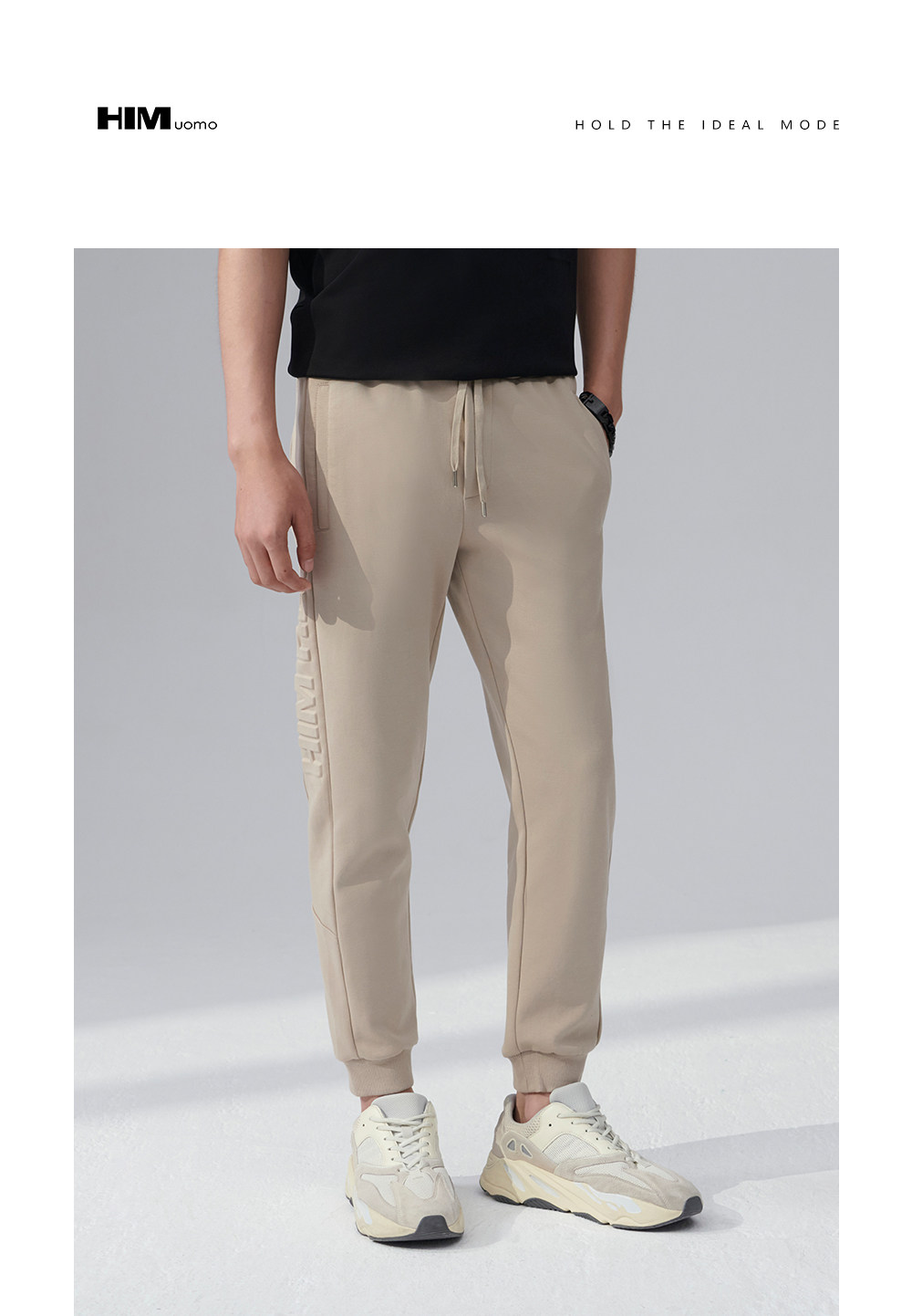 HIM漢崇 舒适透气束脚裤男字母空心压印抽绳松紧腰运动裤2026春季