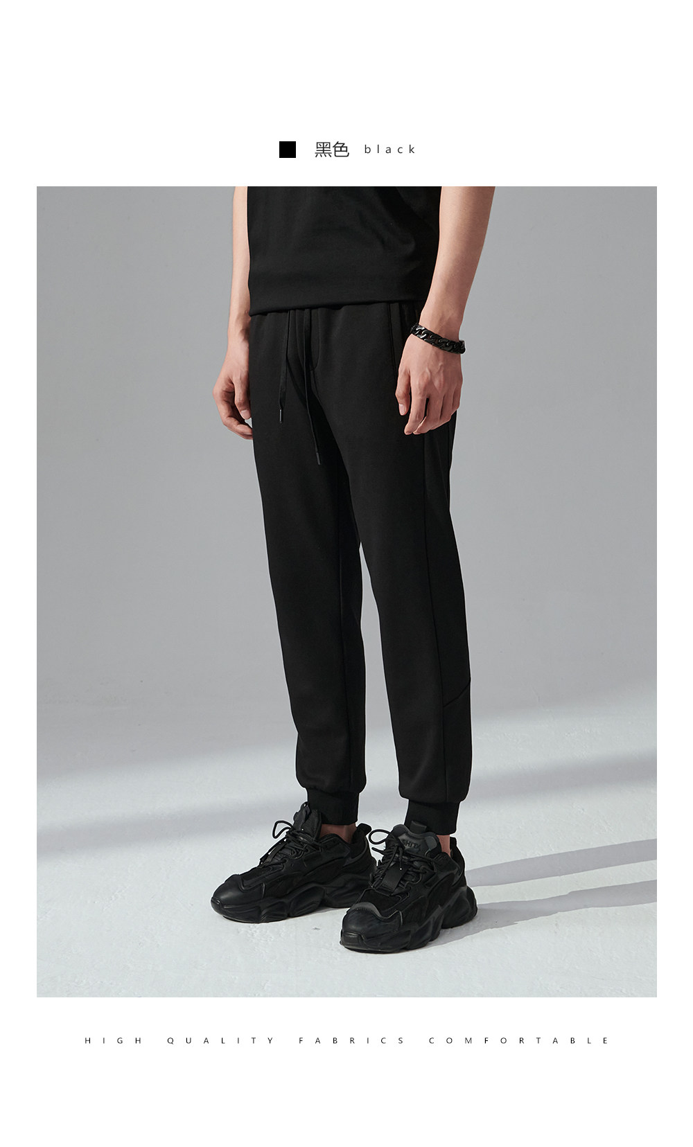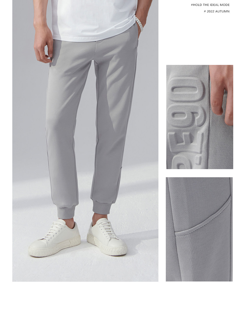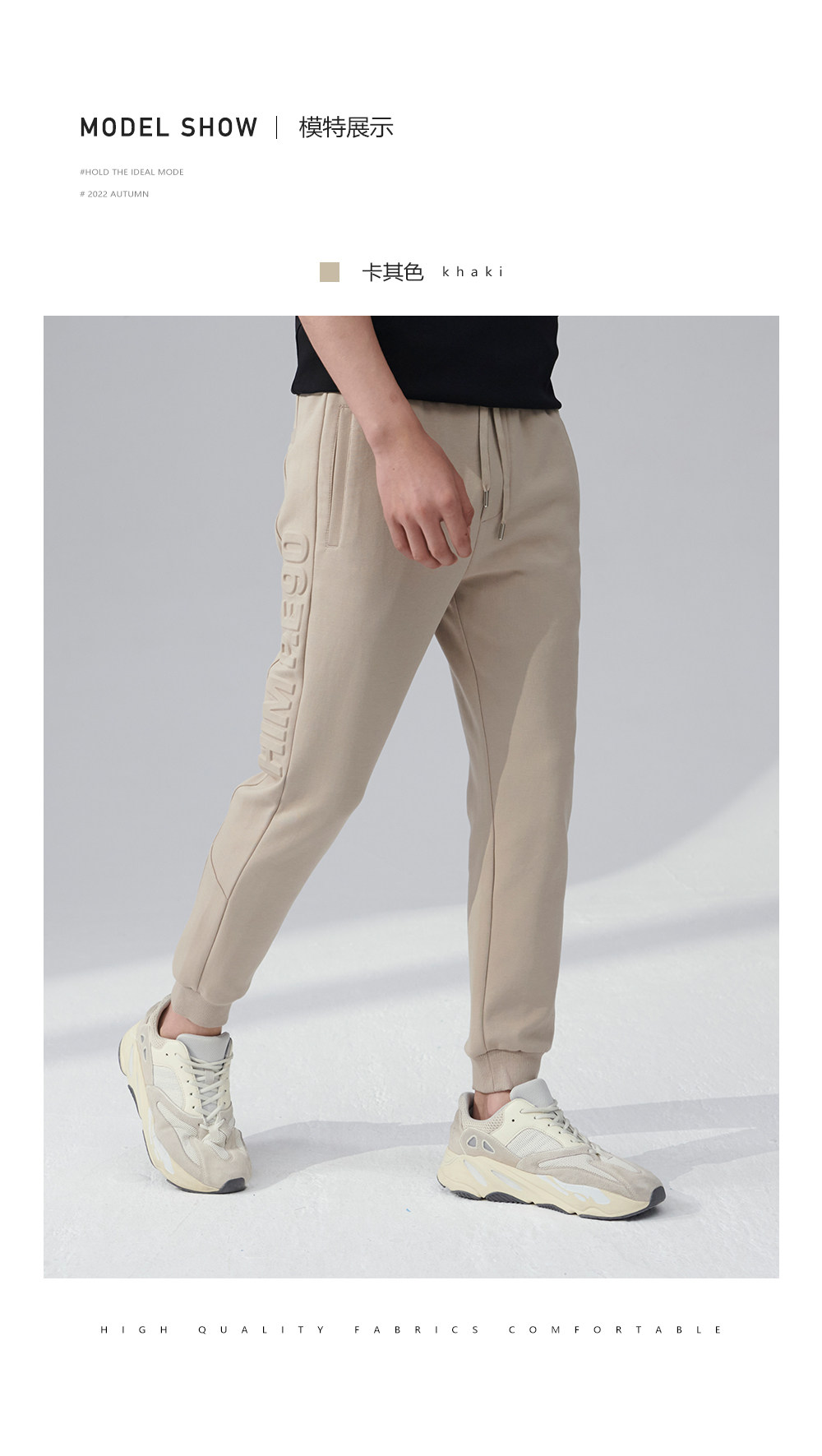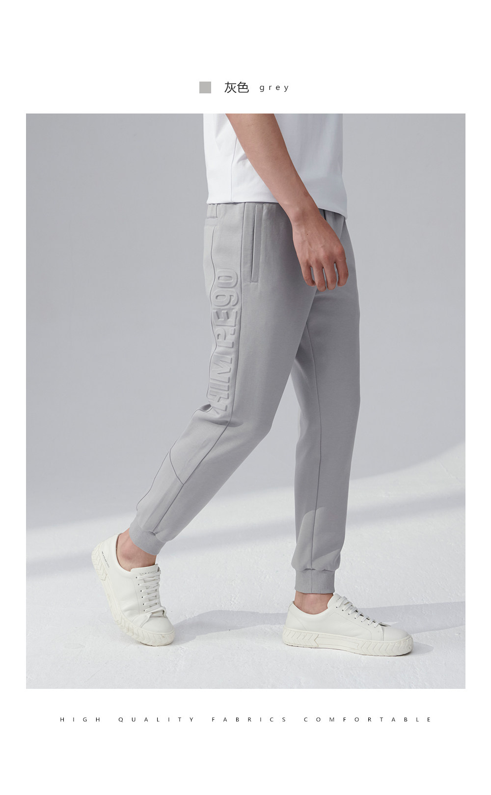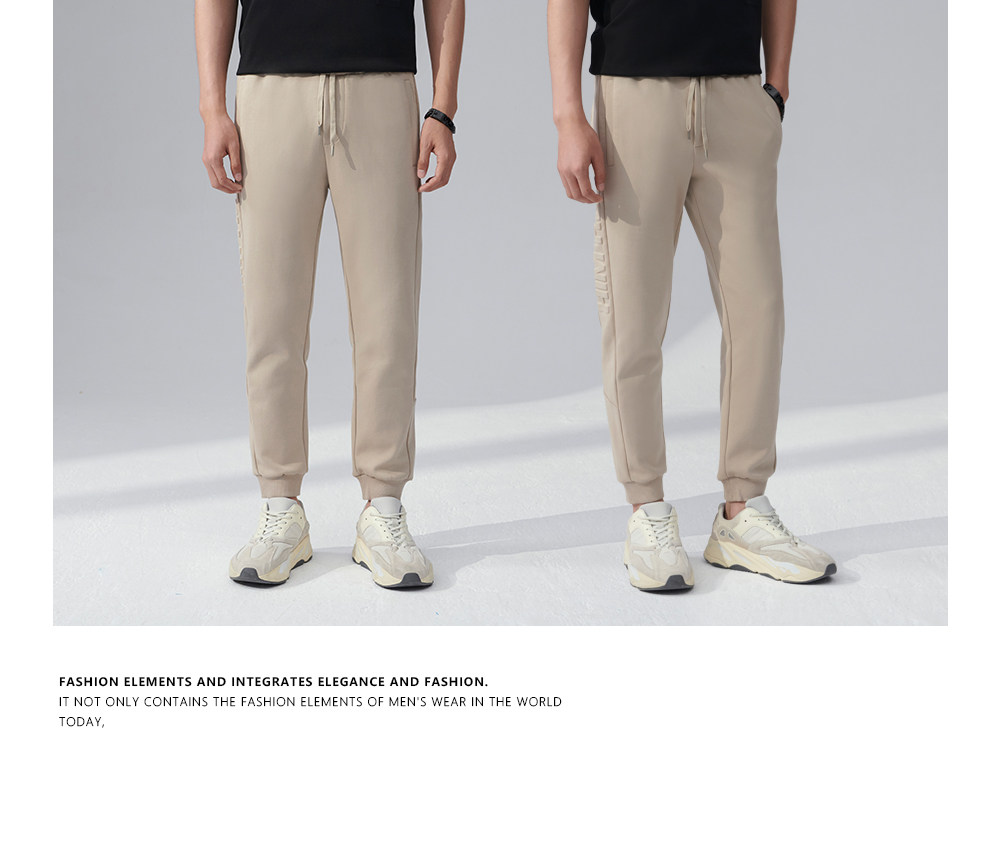 HIM漢崇 舒适透气束脚裤男字母空心压印抽绳松紧腰运动裤2026春季