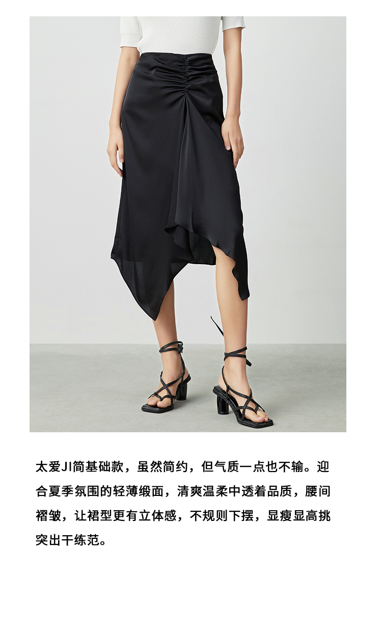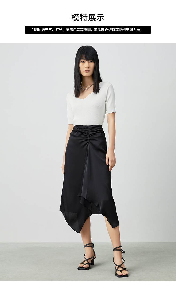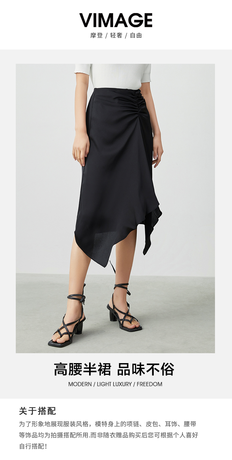 VIMAGE纬漫纪夏季新品高腰纯色显瘦设计小众褶皱半裙V1506123