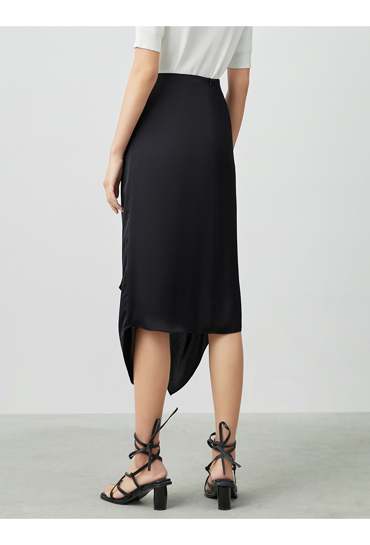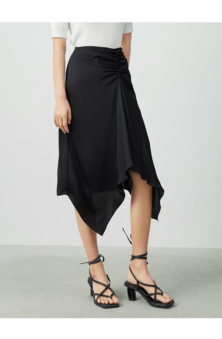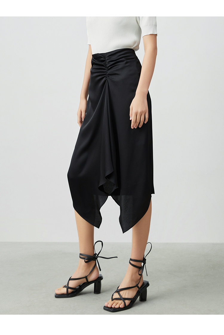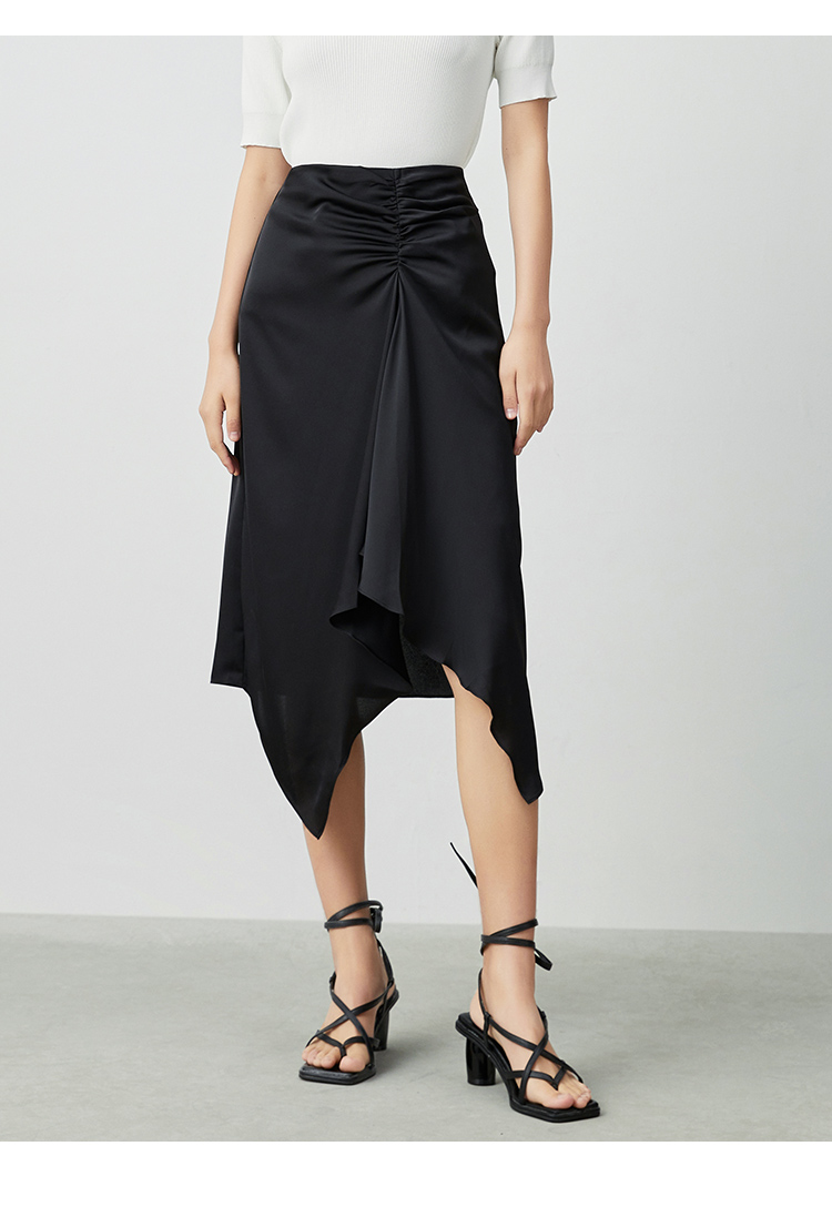 VIMAGE纬漫纪夏季新品高腰纯色显瘦设计小众褶皱半裙V1506123