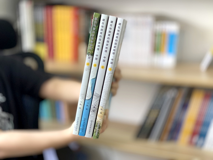 看四册书的封面,拼起来竟然是张完整的中国地形图!