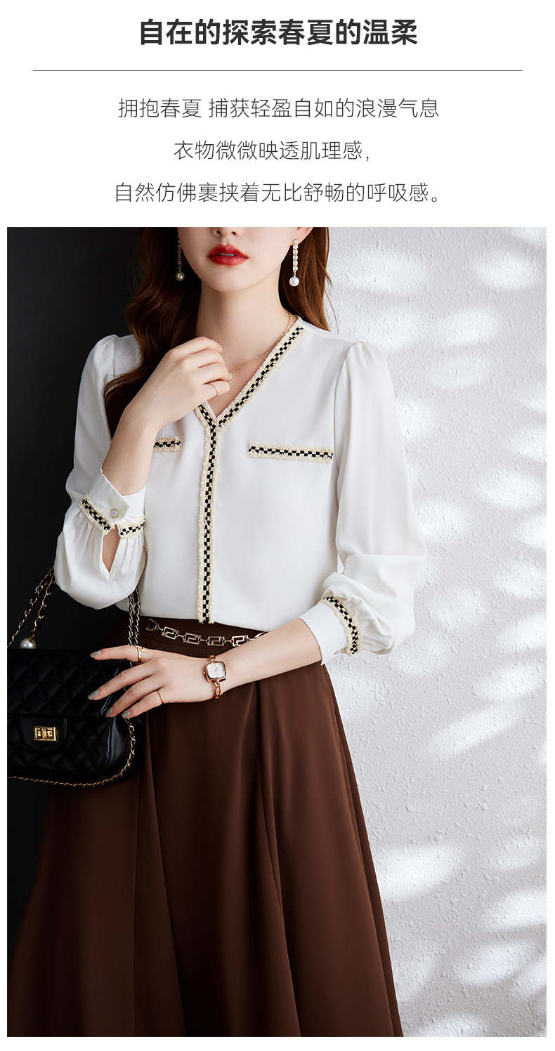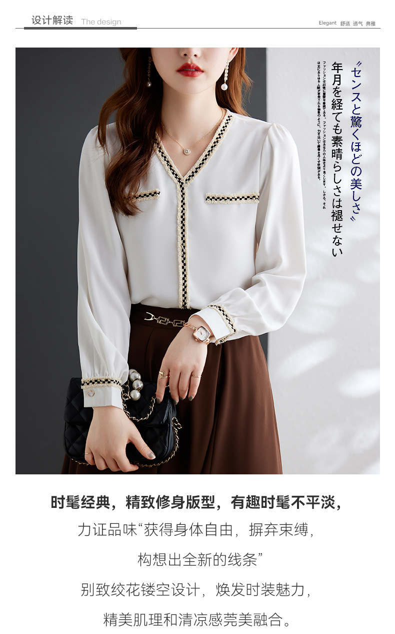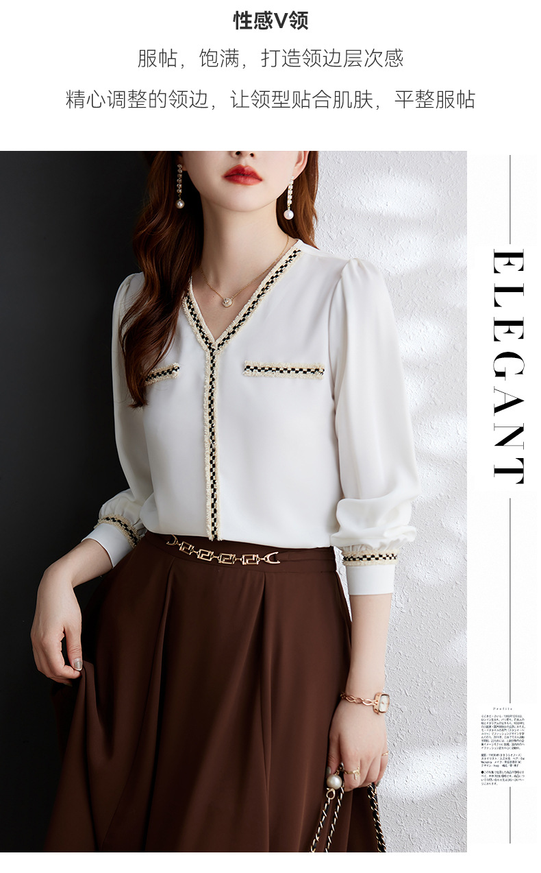 XZ-Q6675雪纺初秋T恤打底衫女百搭衬衫小香风V领时尚新潮别致显瘦