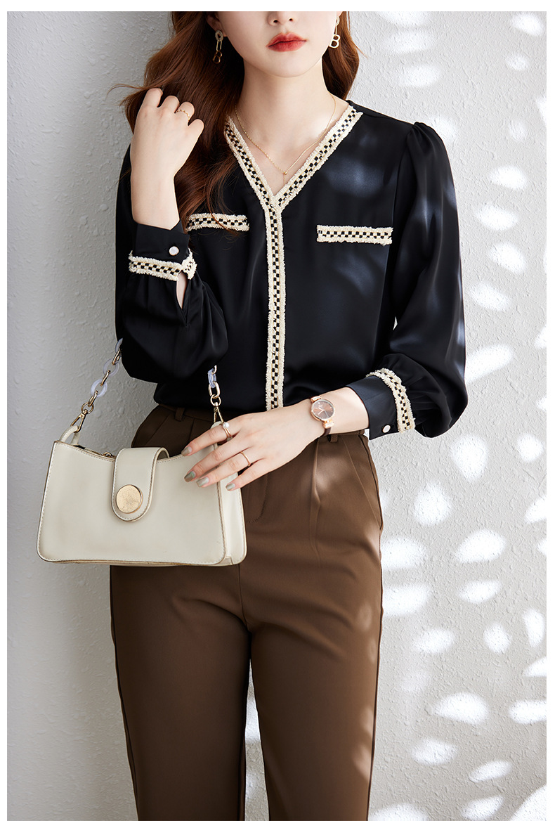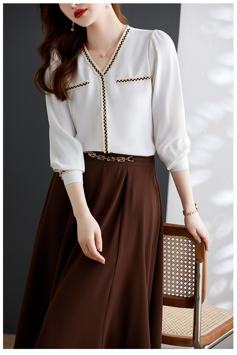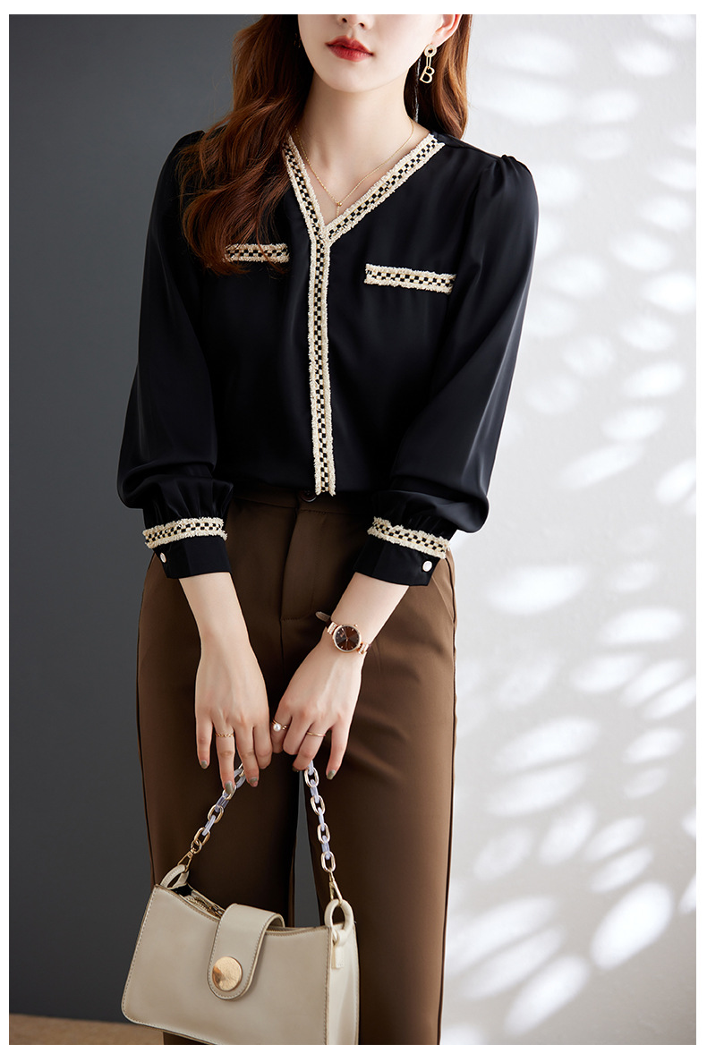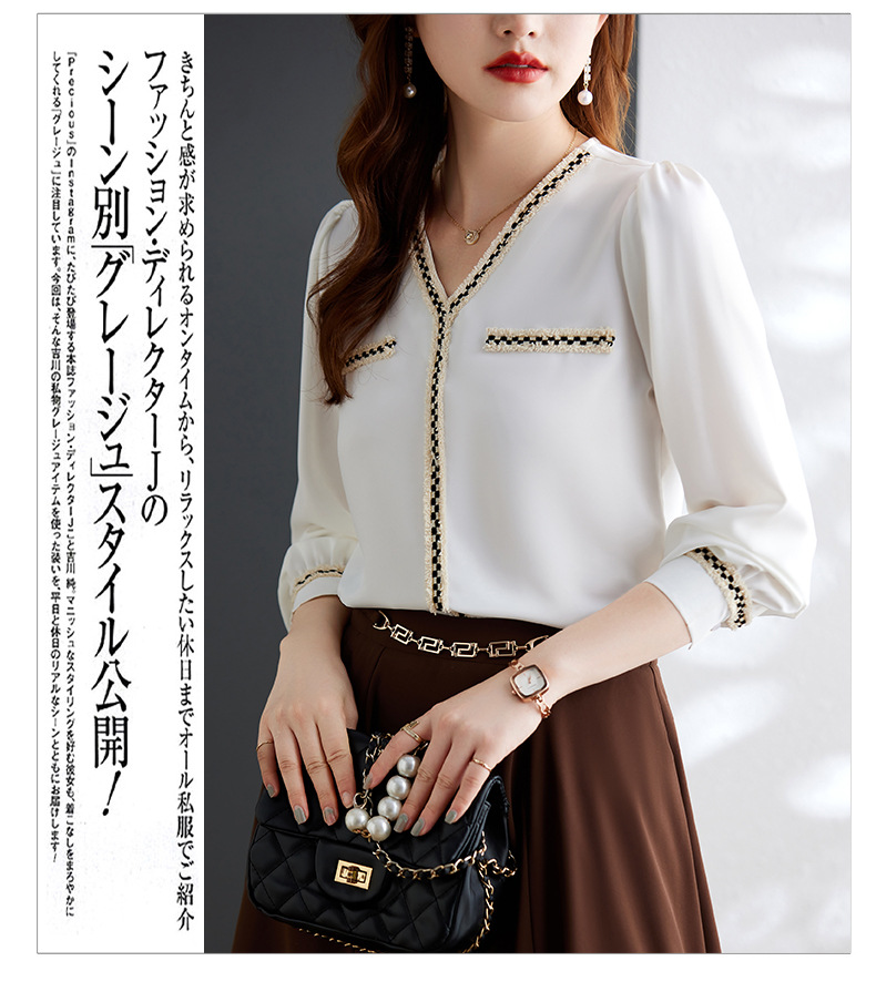 XZ-Q6675雪纺初秋T恤打底衫女百搭衬衫小香风V领时尚新潮别致显瘦