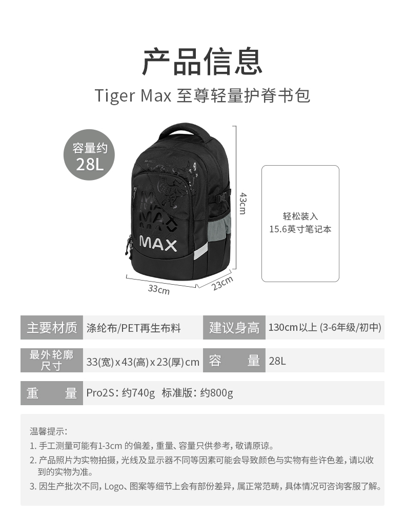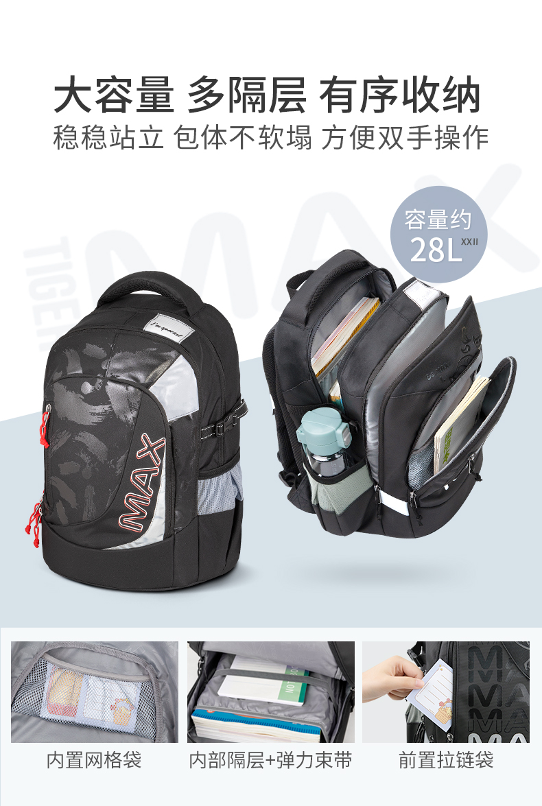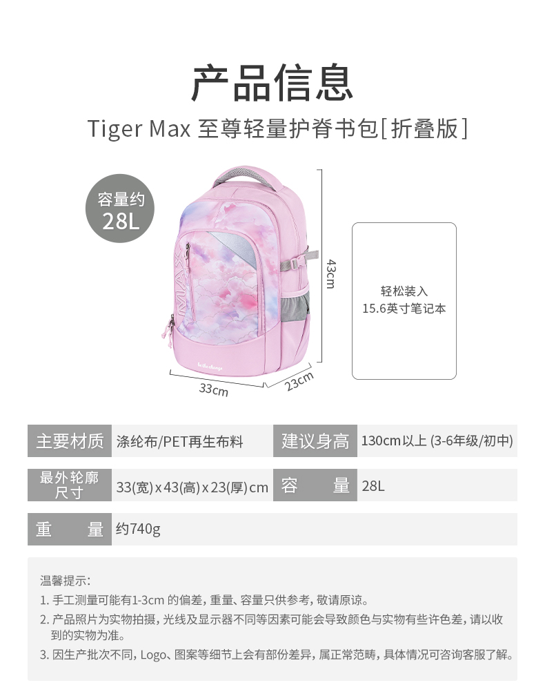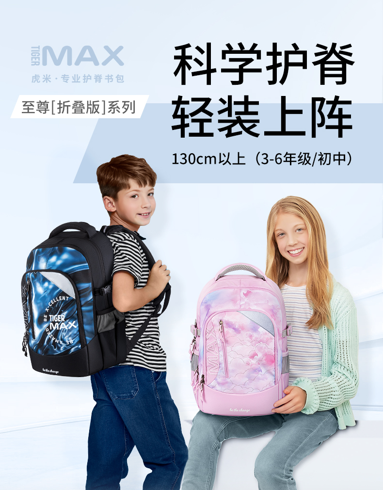 tigerfamily虎米小学生护脊书包超轻便3-6年级初中减负双肩包至尊折叠版