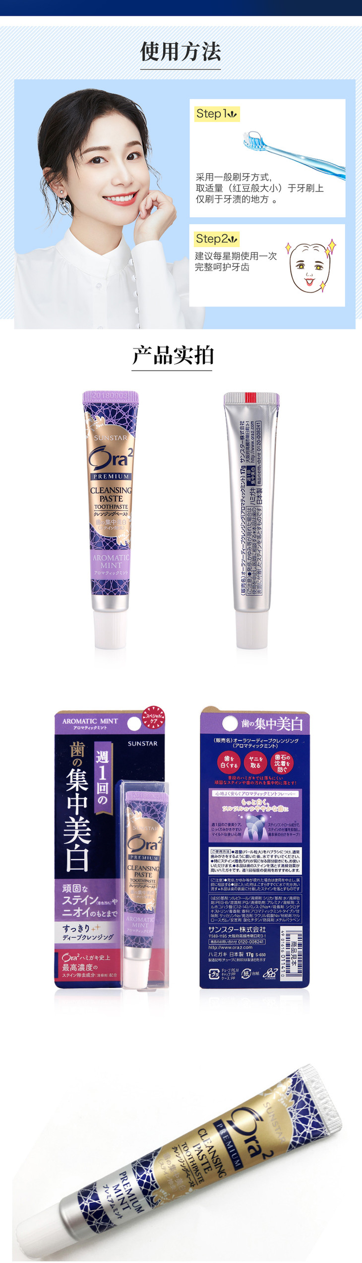 ora2皓乐齿集中美白牙膏礼盒清新口气去烟渍17g