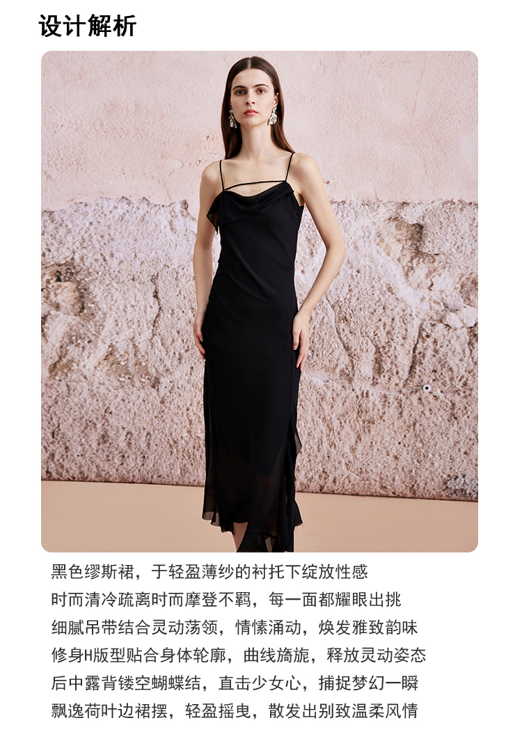 VIMAGE纬漫纪夏新款气质高级感露背吊带修身性感连衣裙V2177709