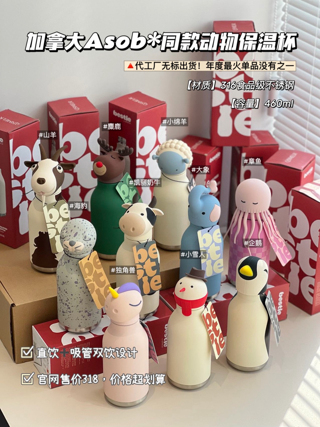 加拿大🇨🇦Asob同款动物保温杯……11款动物造型任选,闭眼入不踩雷!