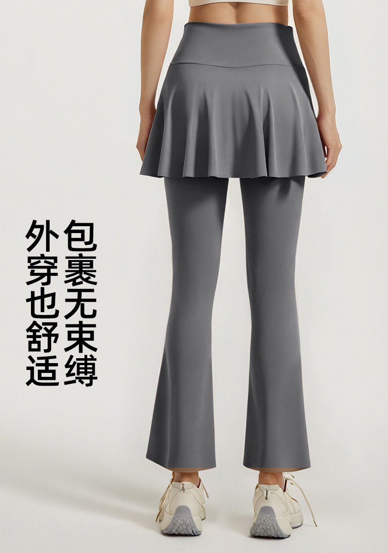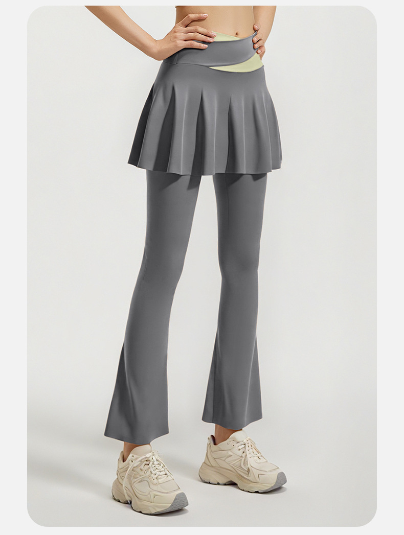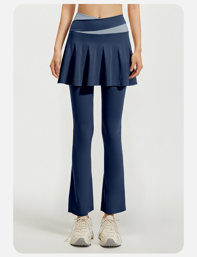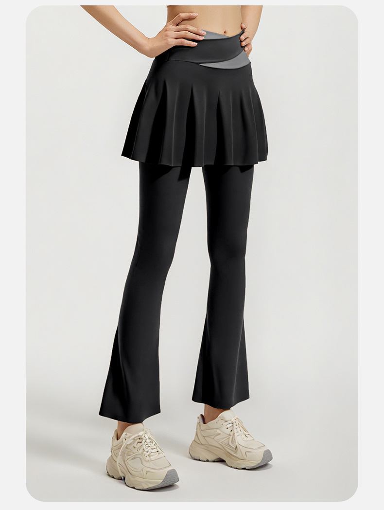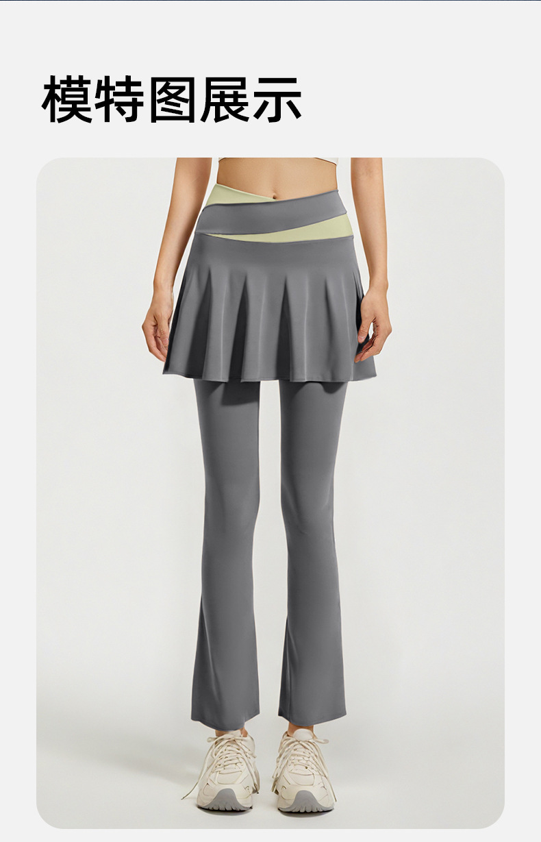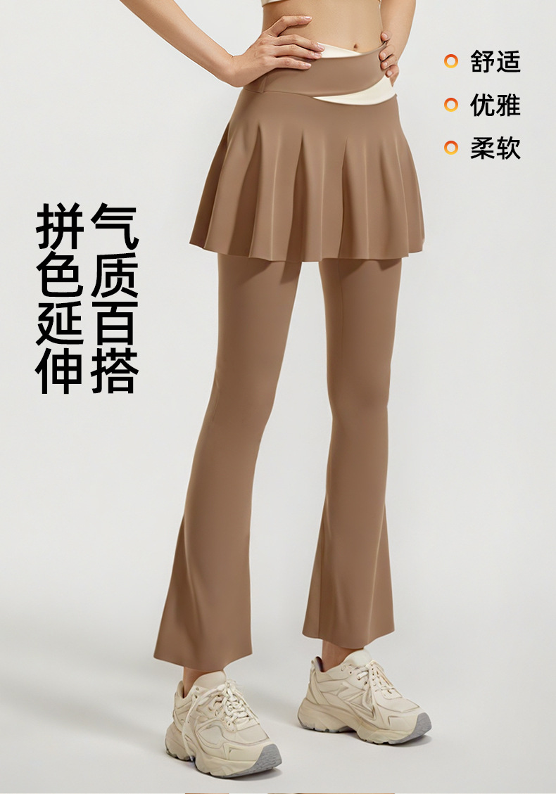 跃牌【瑜堂系列】新款拼色喇叭裙裤高弹显瘦假两件高腰跑步健身瑜伽裤JYMK137