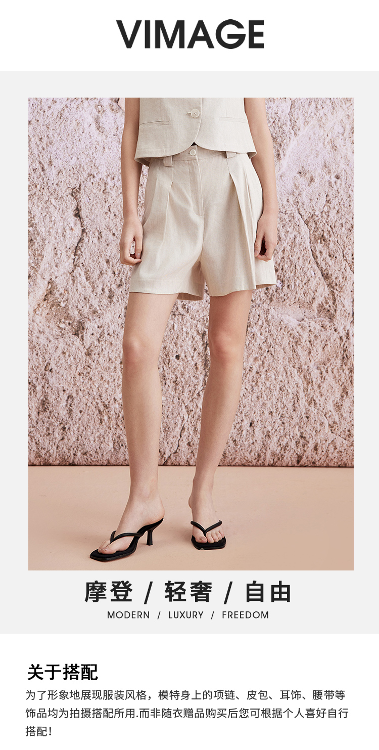 VIMAGE纬漫纪夏季新款时尚休闲高腰显瘦通勤阔腿短裤V2105734