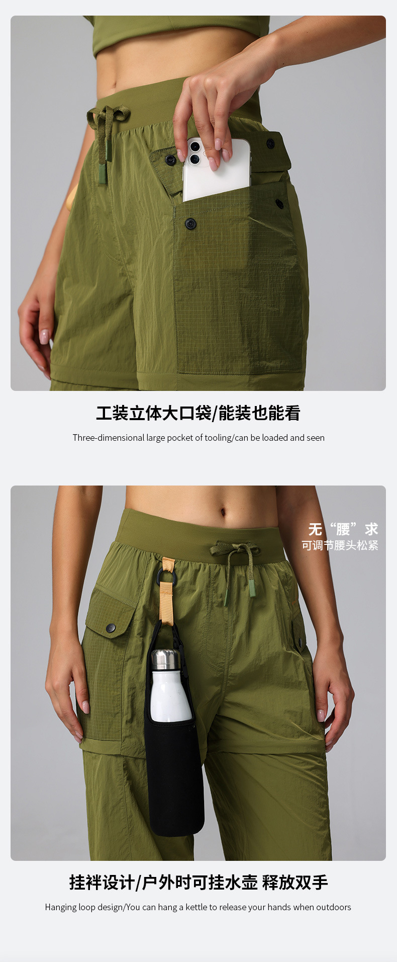 跃牌【瑞幸系列】高腰宽松抽绳徒步防风女显瘦休闲户外Convertible束脚运动长裤HCK024