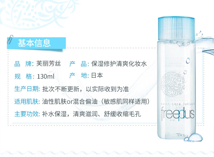 日本freeplus芙丽芳丝保湿修护清爽化妆水130ml