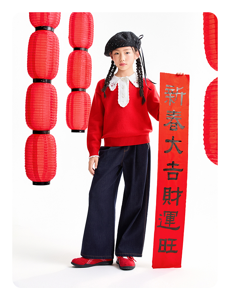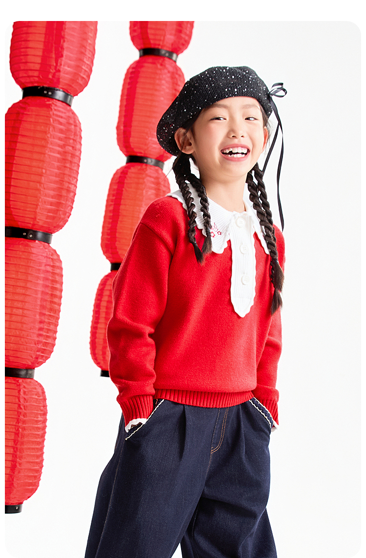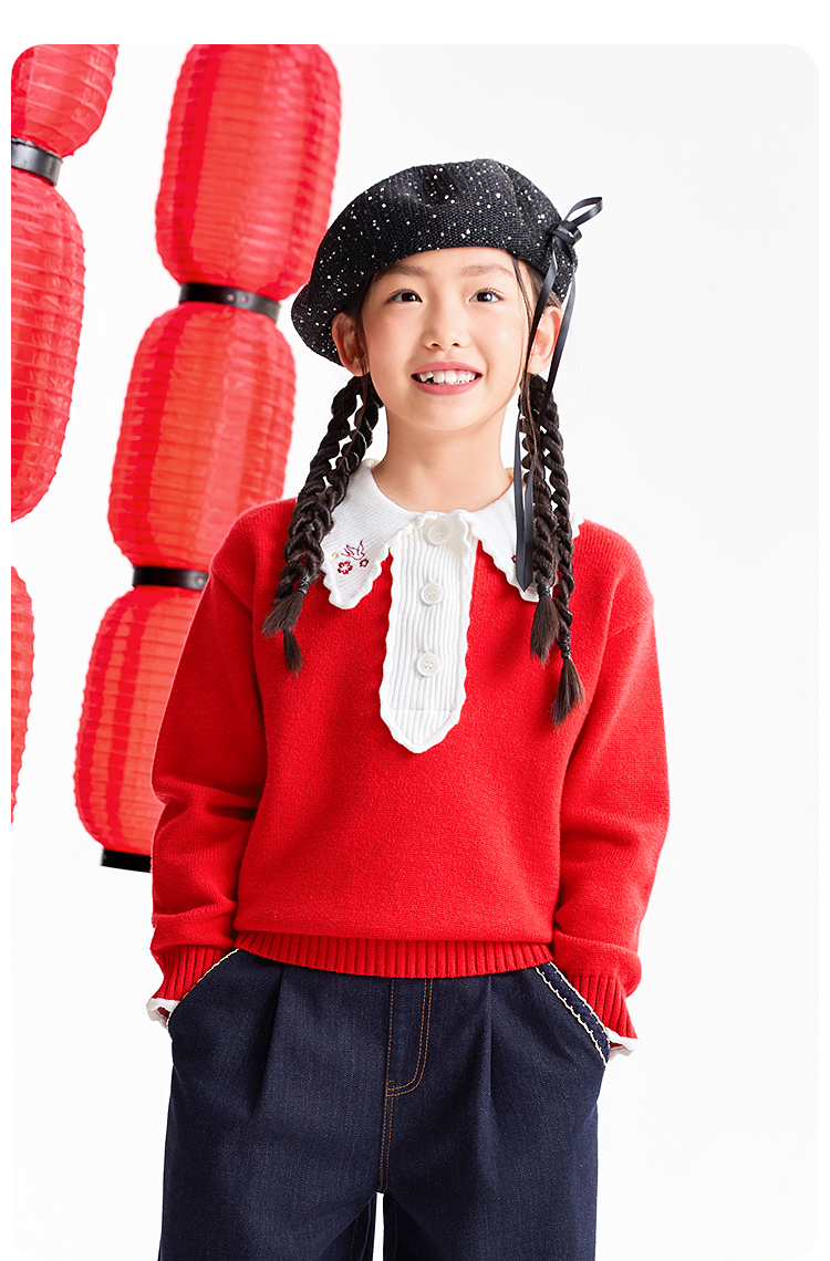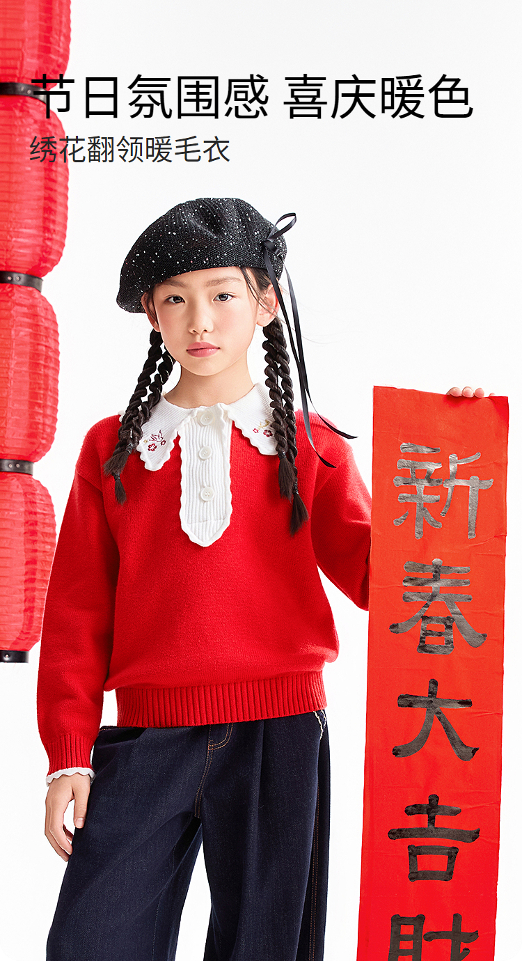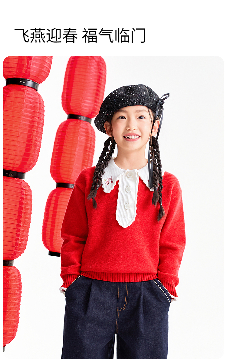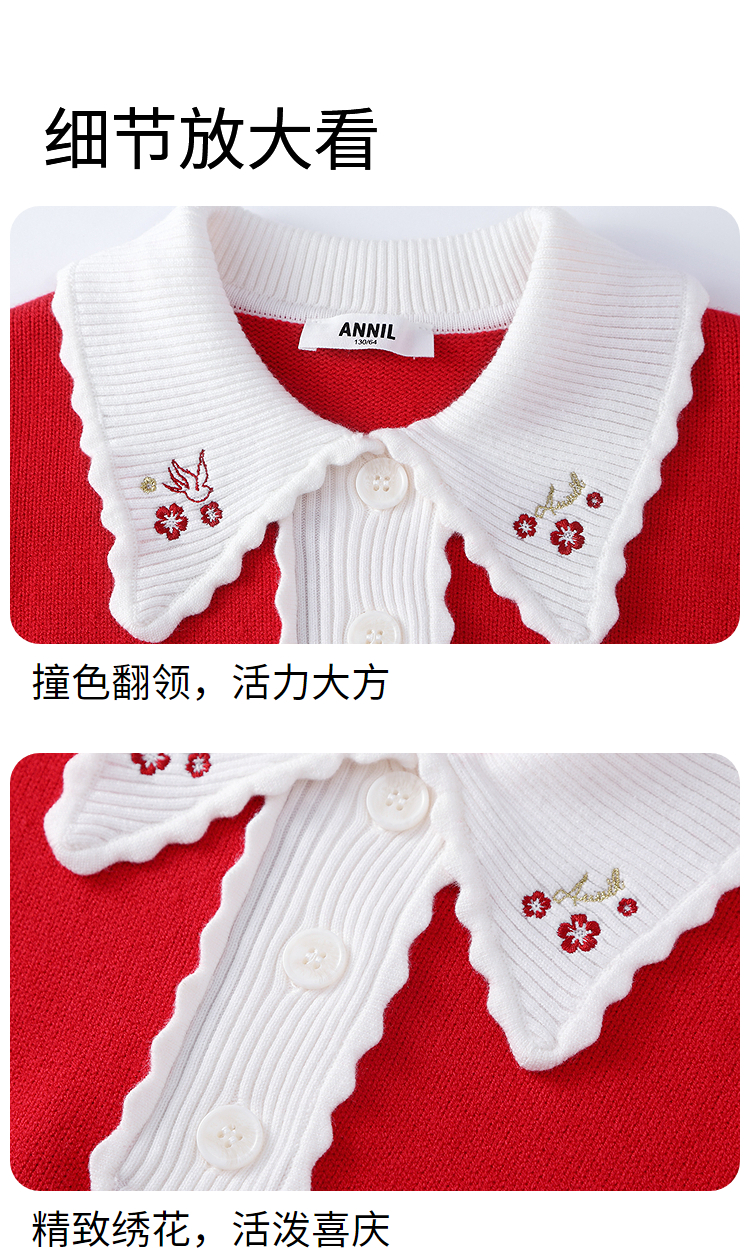 【实体店同款】女童翻领针织衫春季新款安奈儿童装AG614016