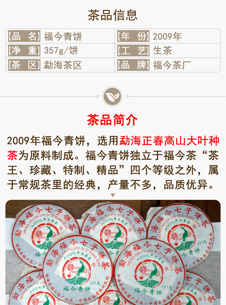 2009年福今青饼正春茶 生茶饼 高性价比老福今经典好仓储好口感