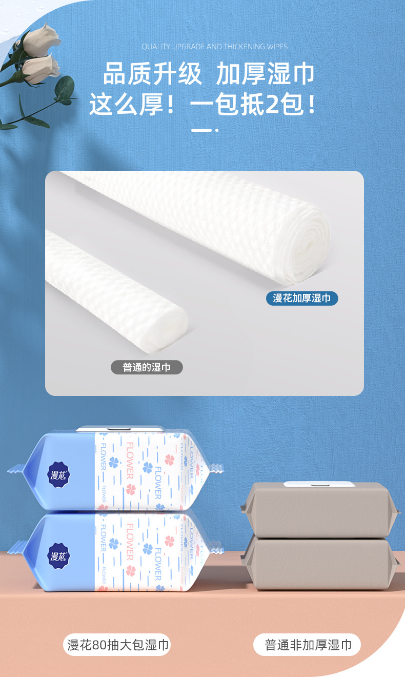 【漫花纸品】漫花婴儿湿巾80抽_20大包家庭装湿纸巾小孩口手清洁湿巾