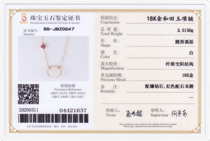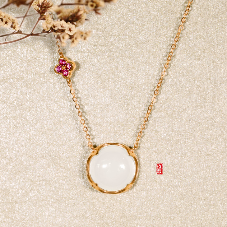 18K玫瑰金和田玉(白玉)镶钻项链