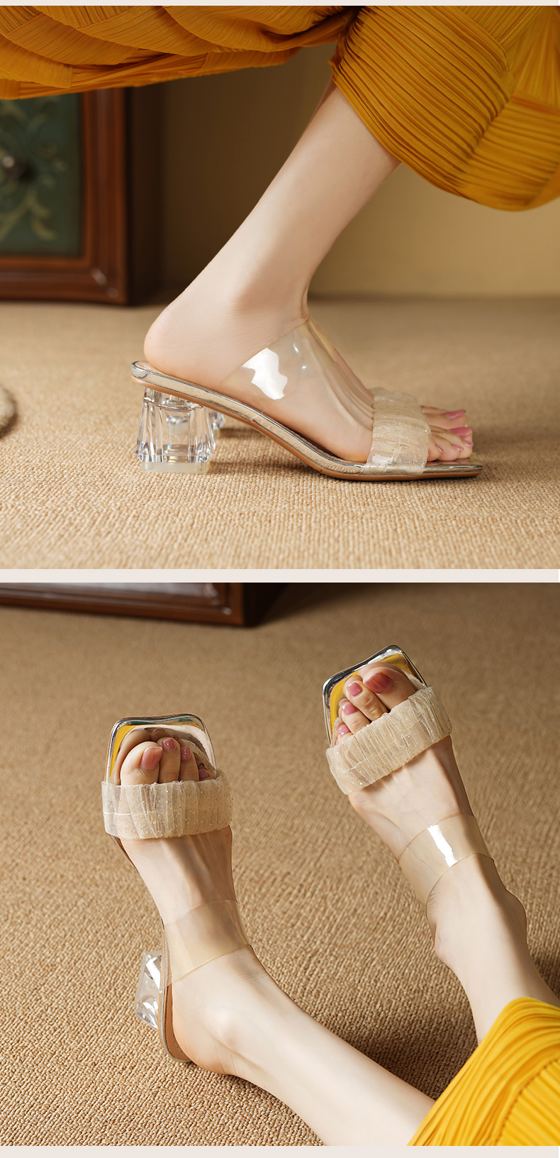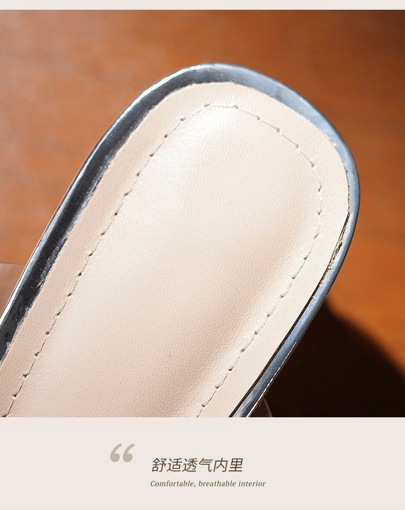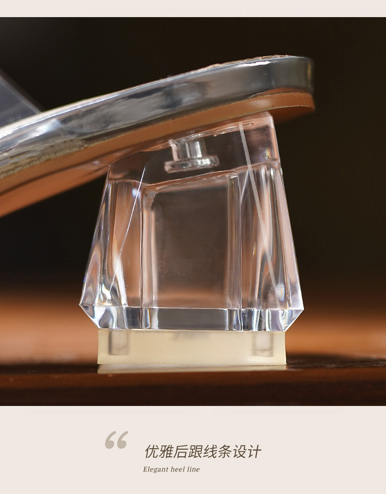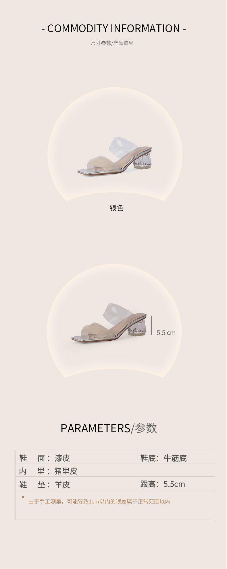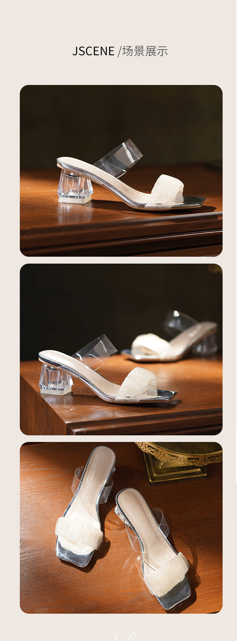 夏季清凉拖鞋,亮片水晶跟粗跟凉拖YD-1150