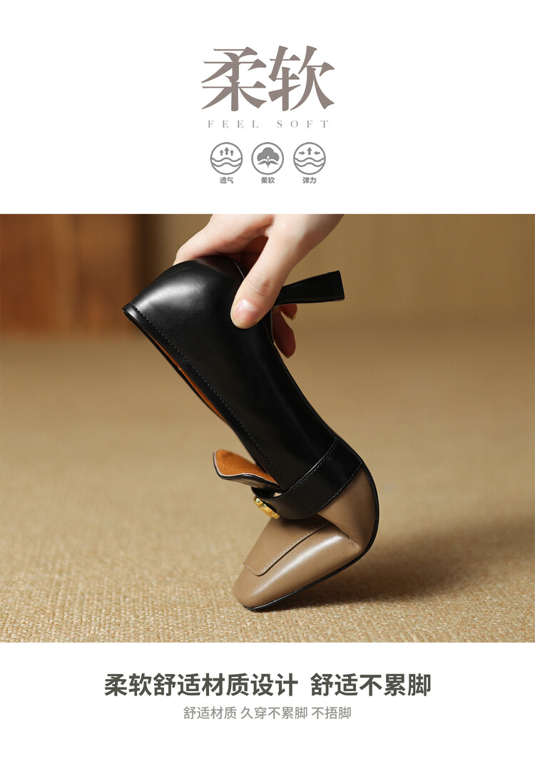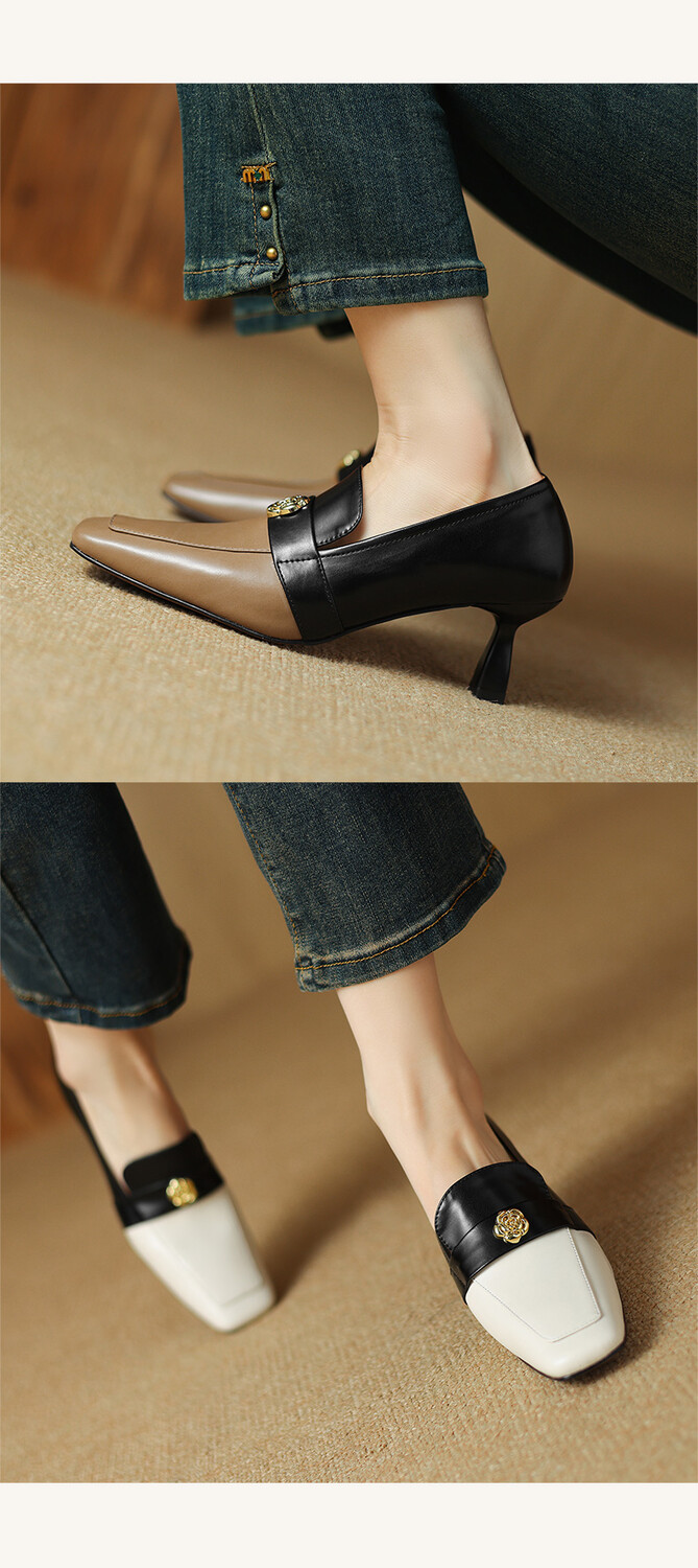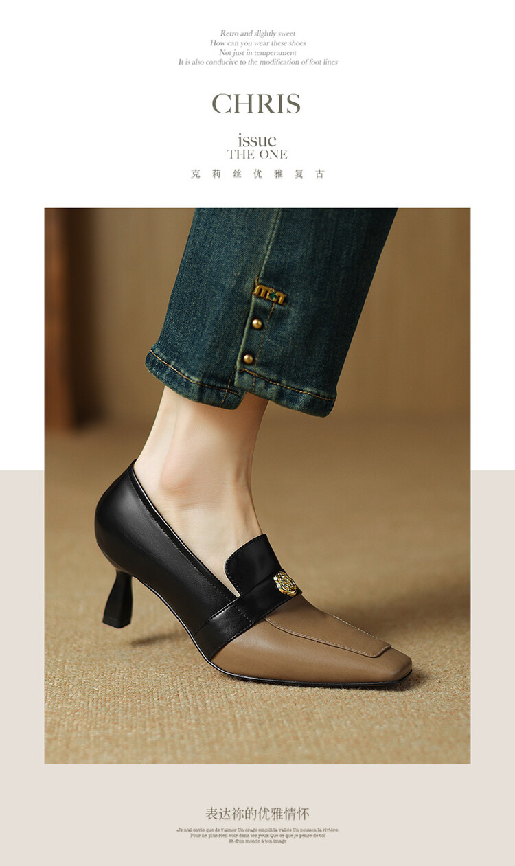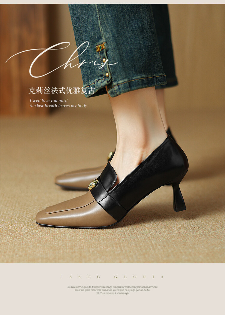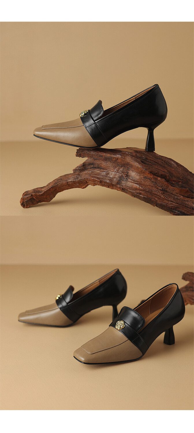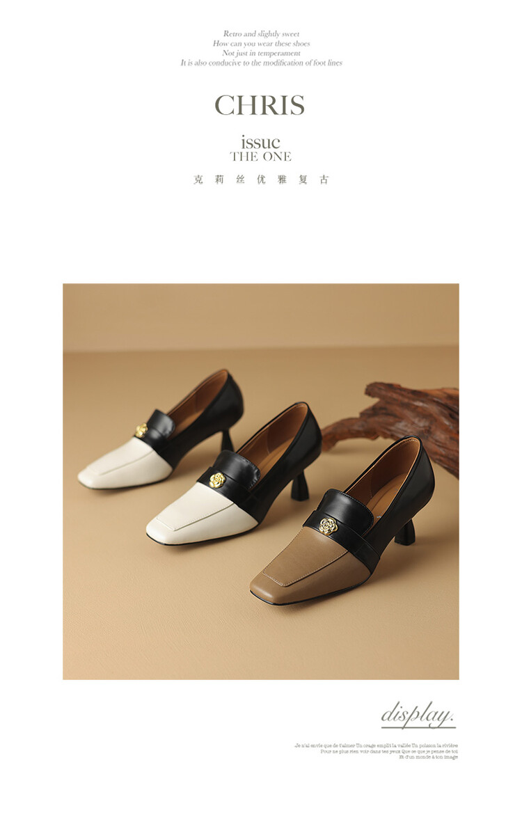 【预售5天】复古小皮鞋,牛皮方头拼色时尚一脚蹬高跟单鞋HCYYHD&5176