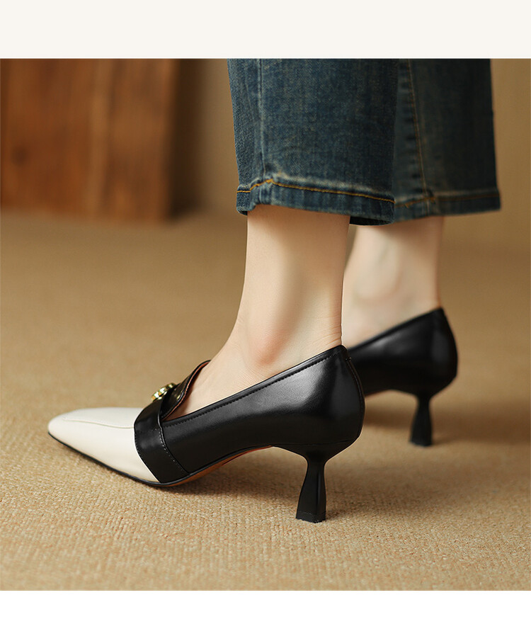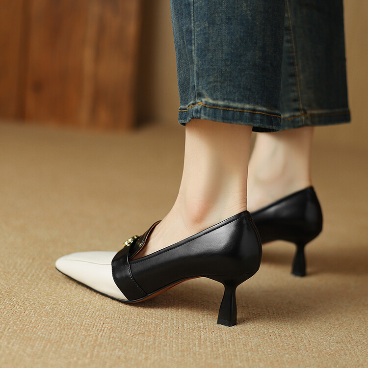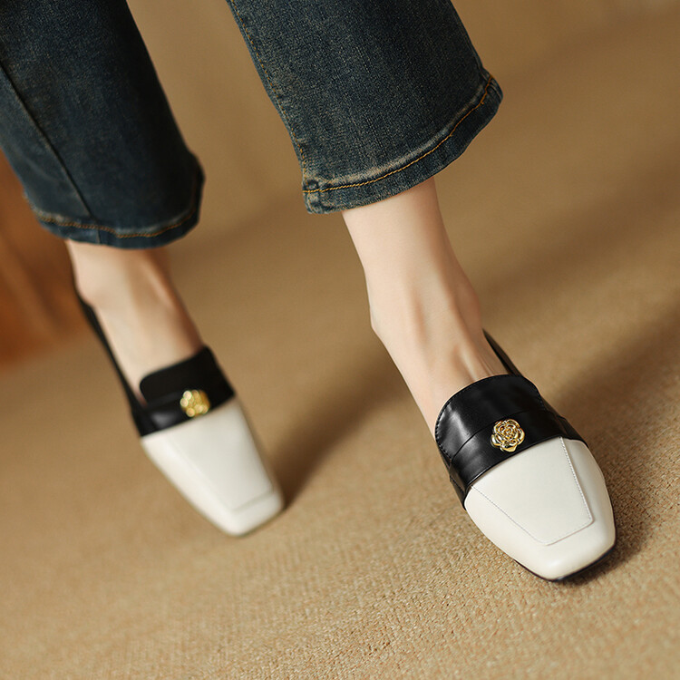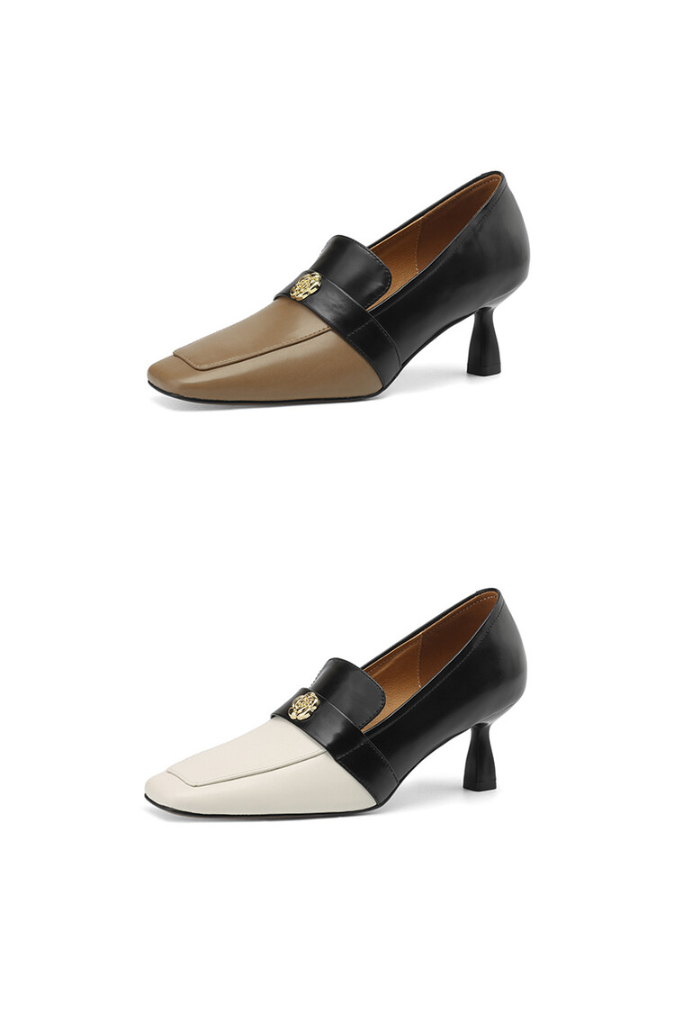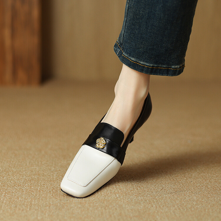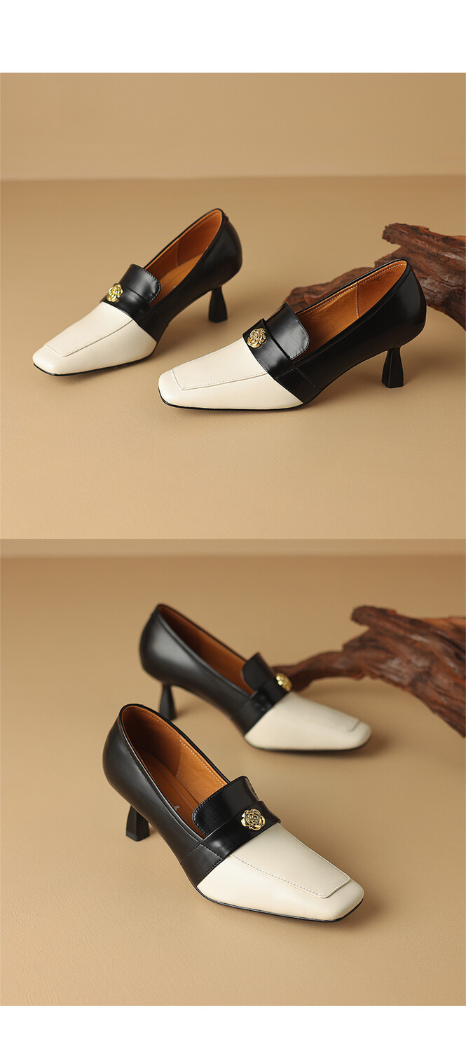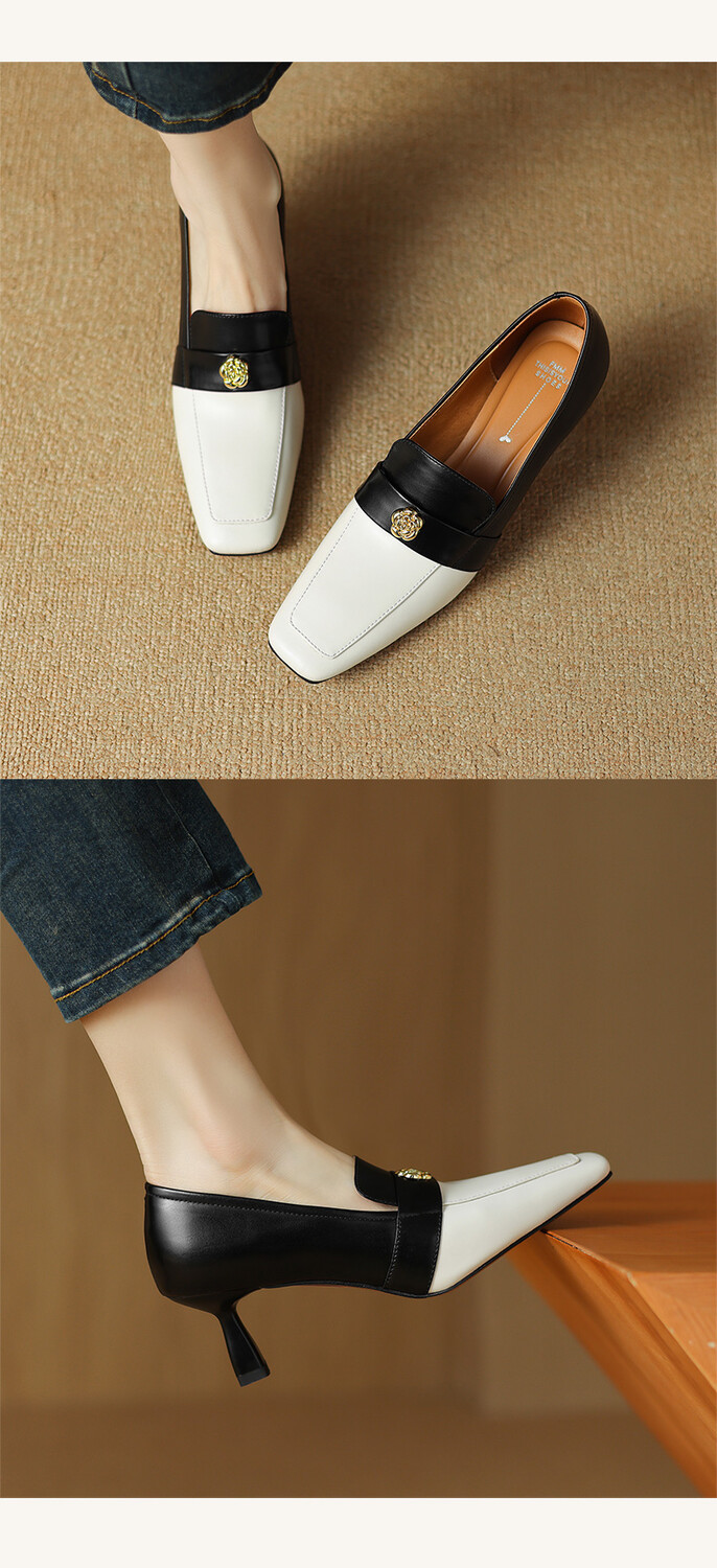 【预售5天】复古小皮鞋,牛皮方头拼色时尚一脚蹬高跟单鞋HCYYHD&5176