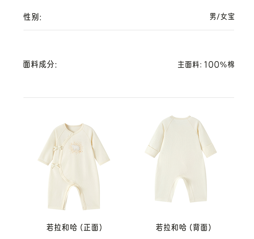 【商场同款】英氏婴儿衣服长袖四季男女宝连身衣纯棉新生儿爬爬服