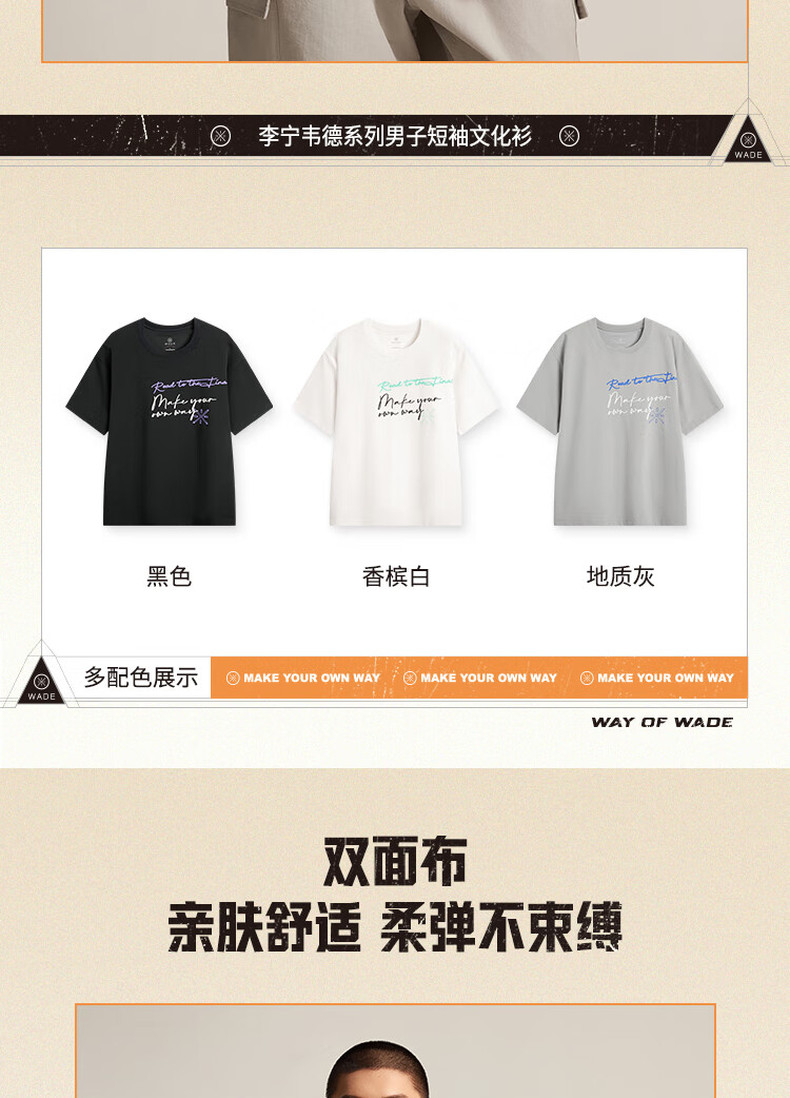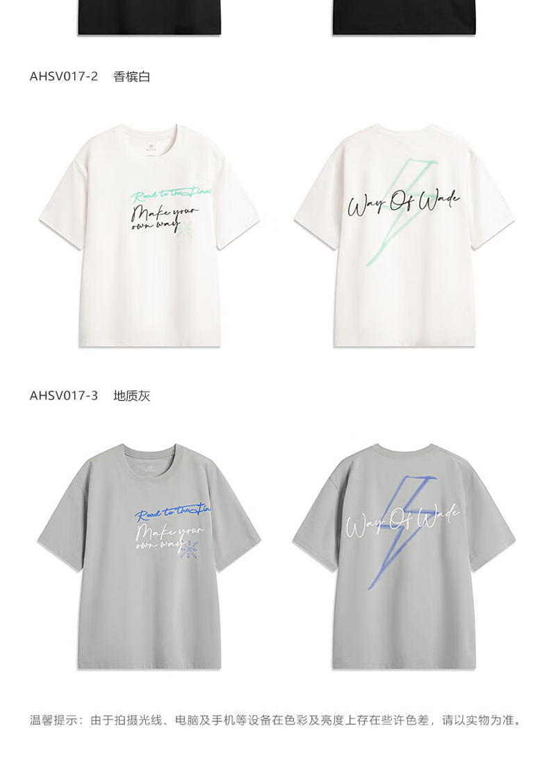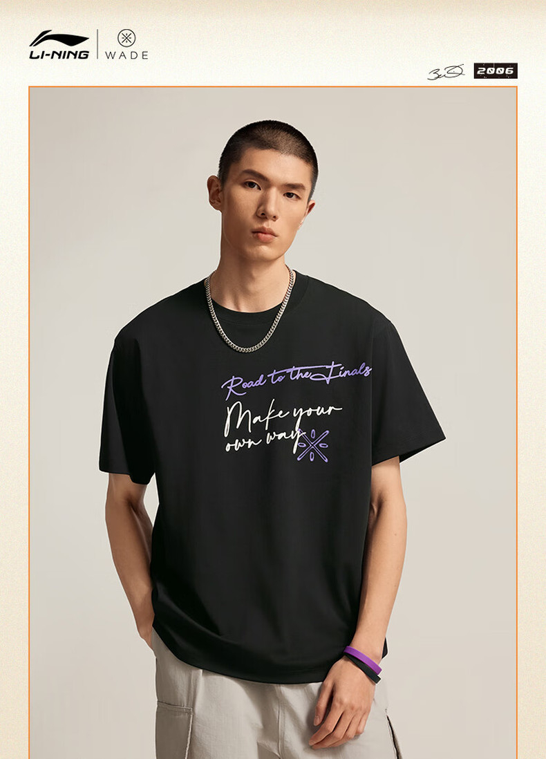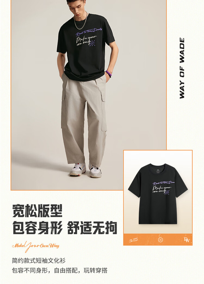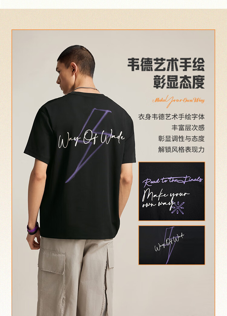 李宁韦德系列男子宽松短袖文化衫AHSV017