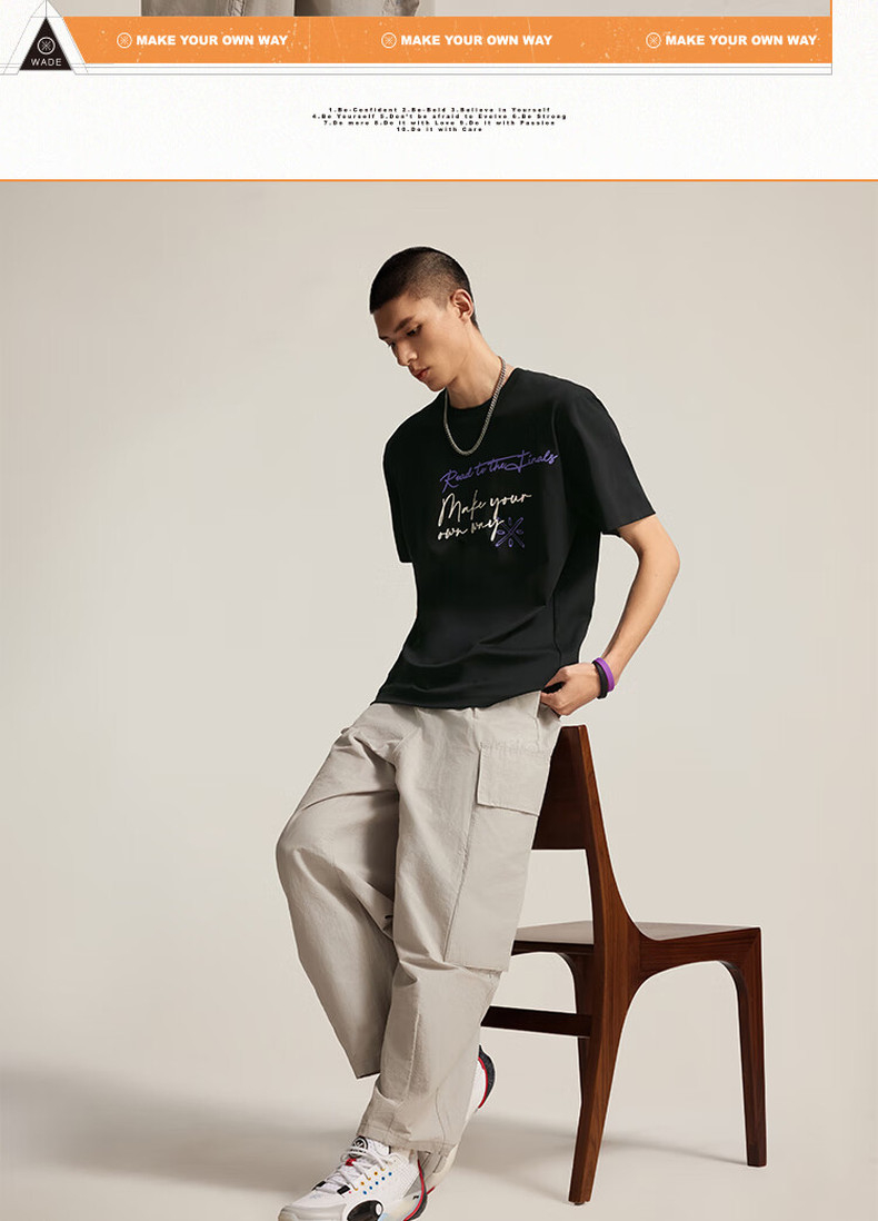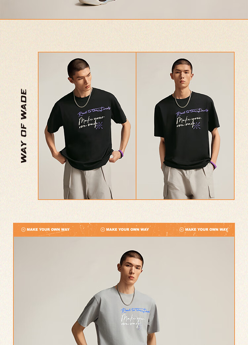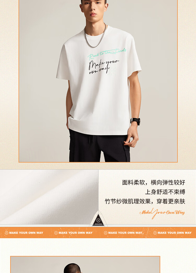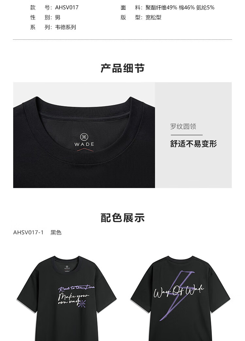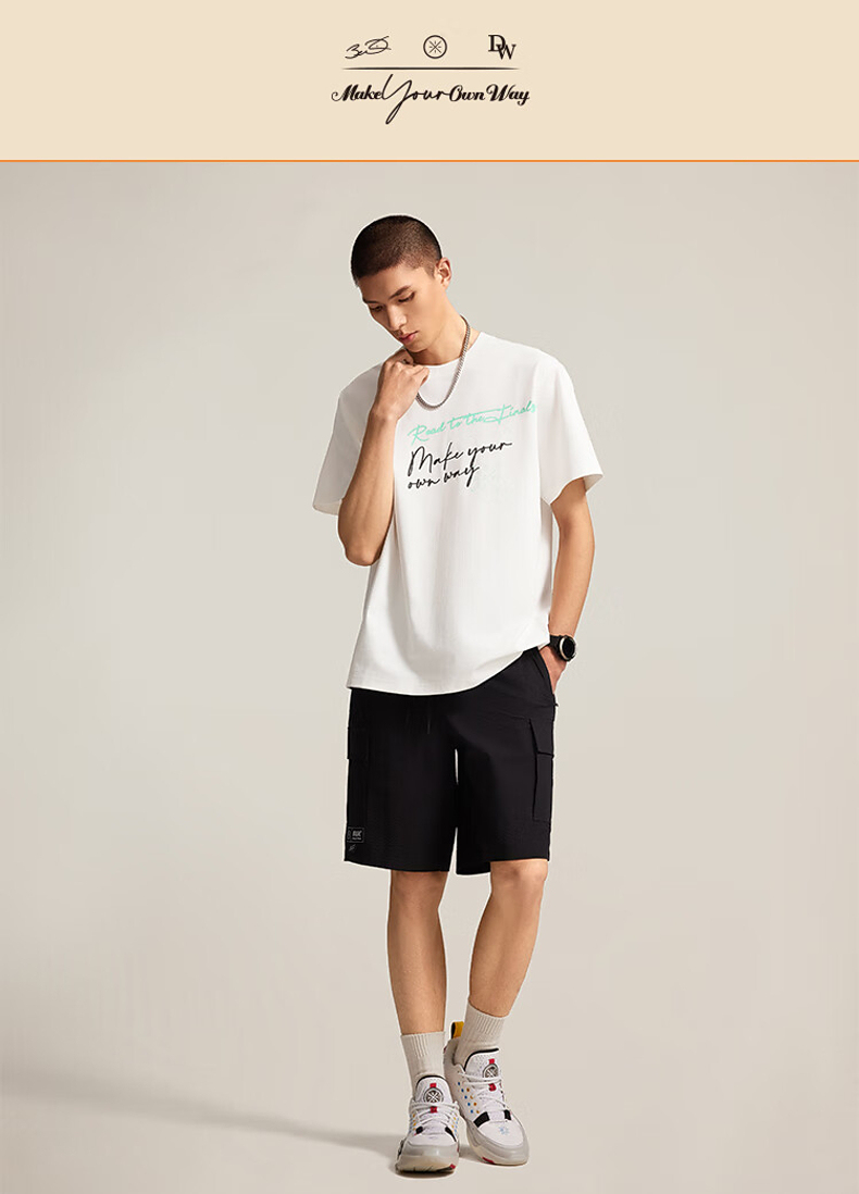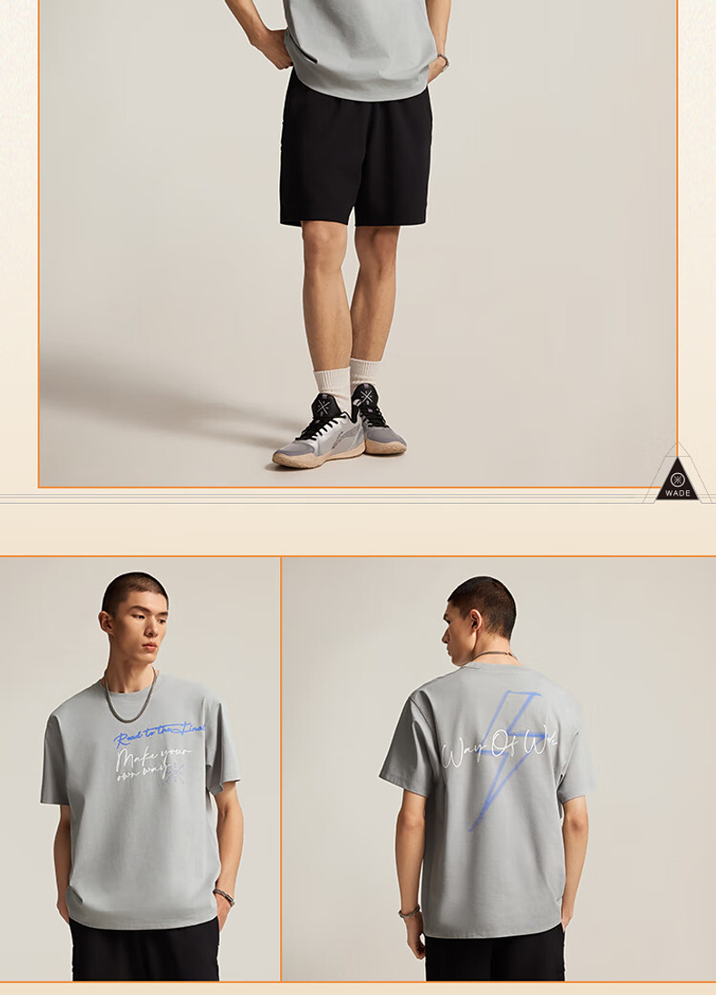 李宁韦德系列男子宽松短袖文化衫AHSV017