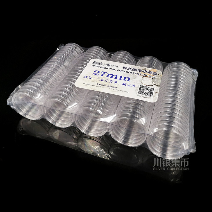 适用于羊币、猴币、鸡币、建军币、航天币等内径为27mm的纪念币。盒子表面光滑细腻,高度透明,密封性好,有效的防止硬币碰撞。