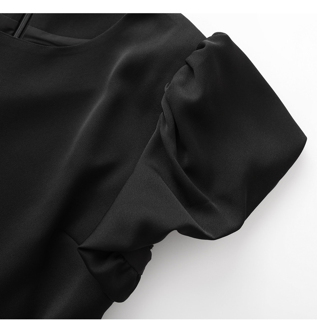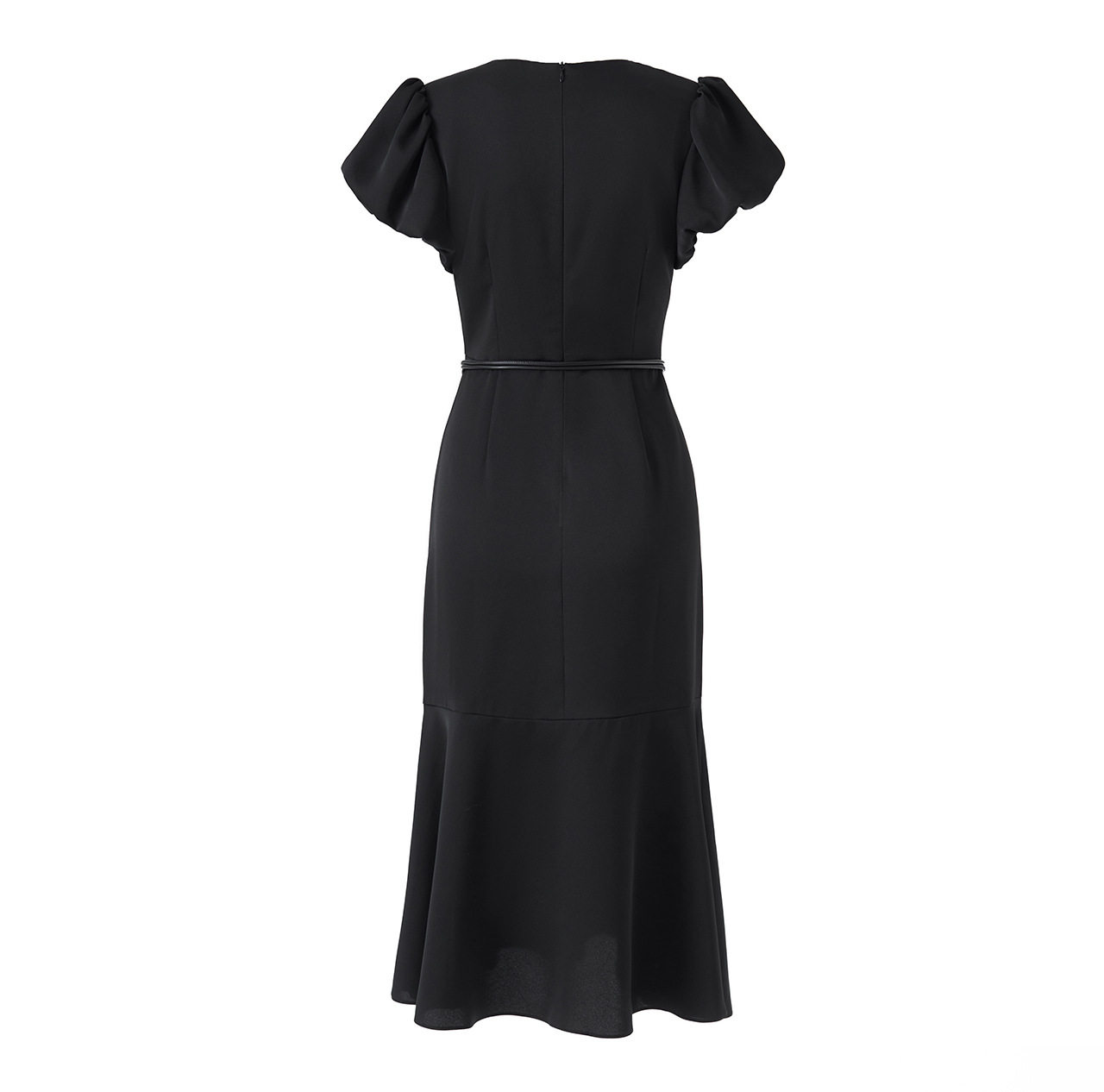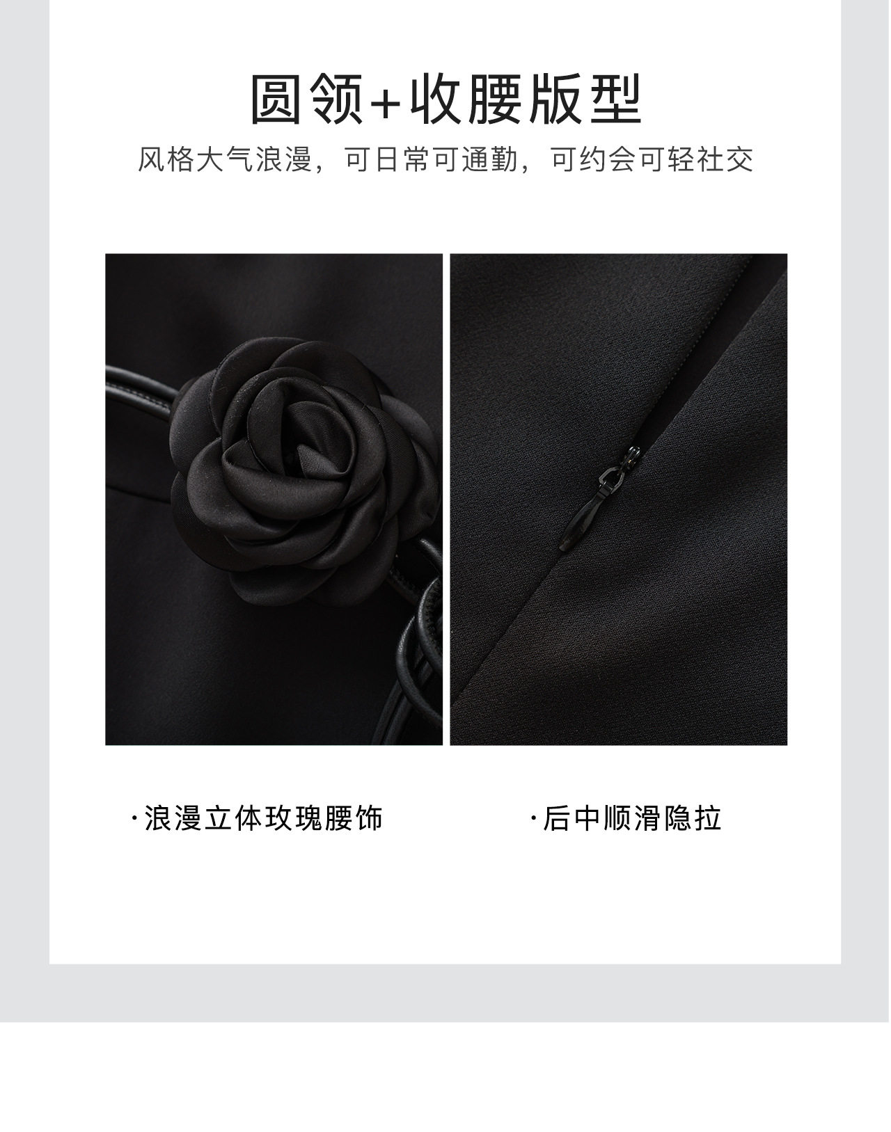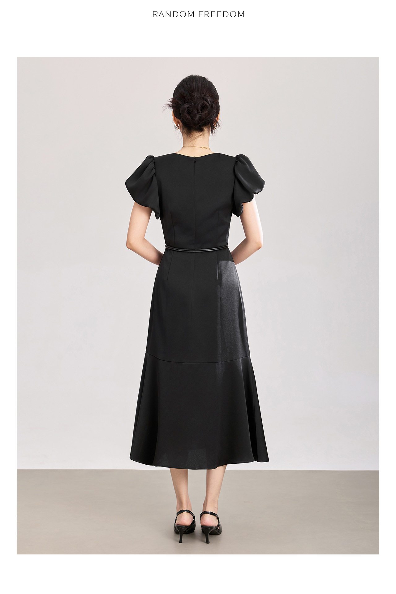 「高货wl」全新升级【铂金会员367/天猫489/差价122】(21403)洛诗琳2026新款气质泡泡袖山茶花腰带鱼尾摆修身连衣裙女